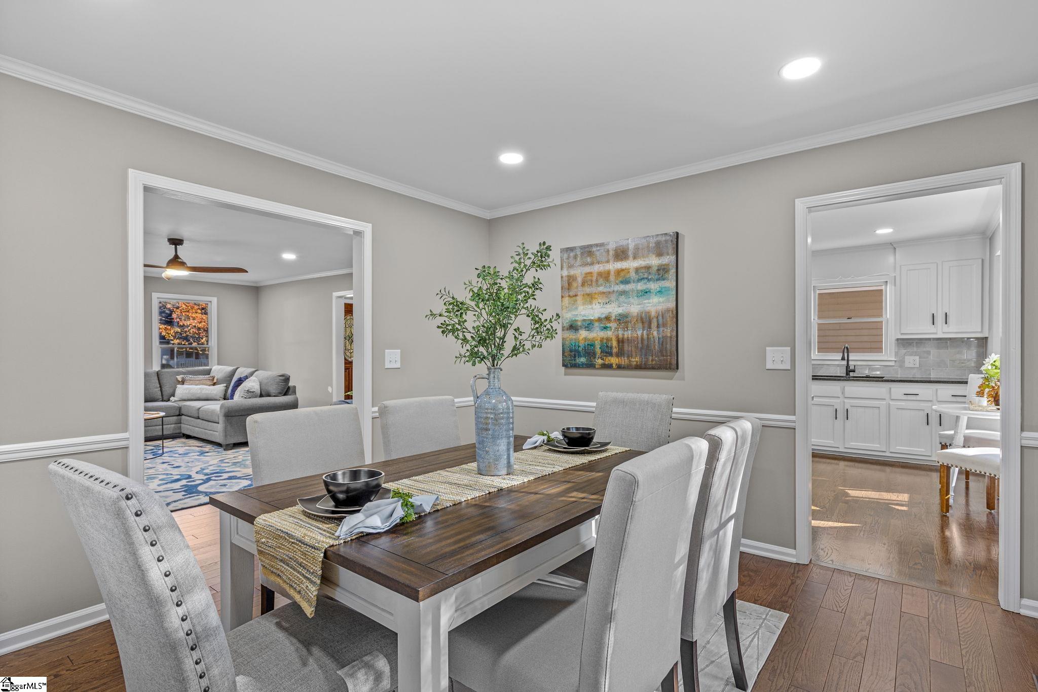 Fashionable Southern charm meets convenience and comfort in this timeless traditional style home in a prime location! A 15-minute drive to Main Street Easley, 20 minutes from Greenville's vibrant downtown, and 20-minutes to Clemson. plus the I-85 Interstate is just down hwy 86 a short easy drive. An established neighborhood with NO HOA! Perfectly situated on a cul-de-sac lot within the coveted Wren School District, this home offers both privacy and accessibility. Features two-stories, a clean brick fireplace for woodburning or gas logs and shiny new and refinished hardwood flooring on the main level. Upstairs you'll find the Primary bedroom suite plus two spacious guest bedrooms accompanied by a full bathroom. Recent upgrades and improvements include new ceiling fans, and updated light fixtures, roof, new paint, kitchen appliances, flooring, ceramic tile shower, kitchen tile backsplash, door hardware and more . Enjoy the welcoming front porch, or indulge in quiet moments on the new back deck this home offers the perfect setting for relaxation. With over half an acre of land ,to create a a lush garden retreat or an entertainment haven, you have the opportunity to truly make it your own!