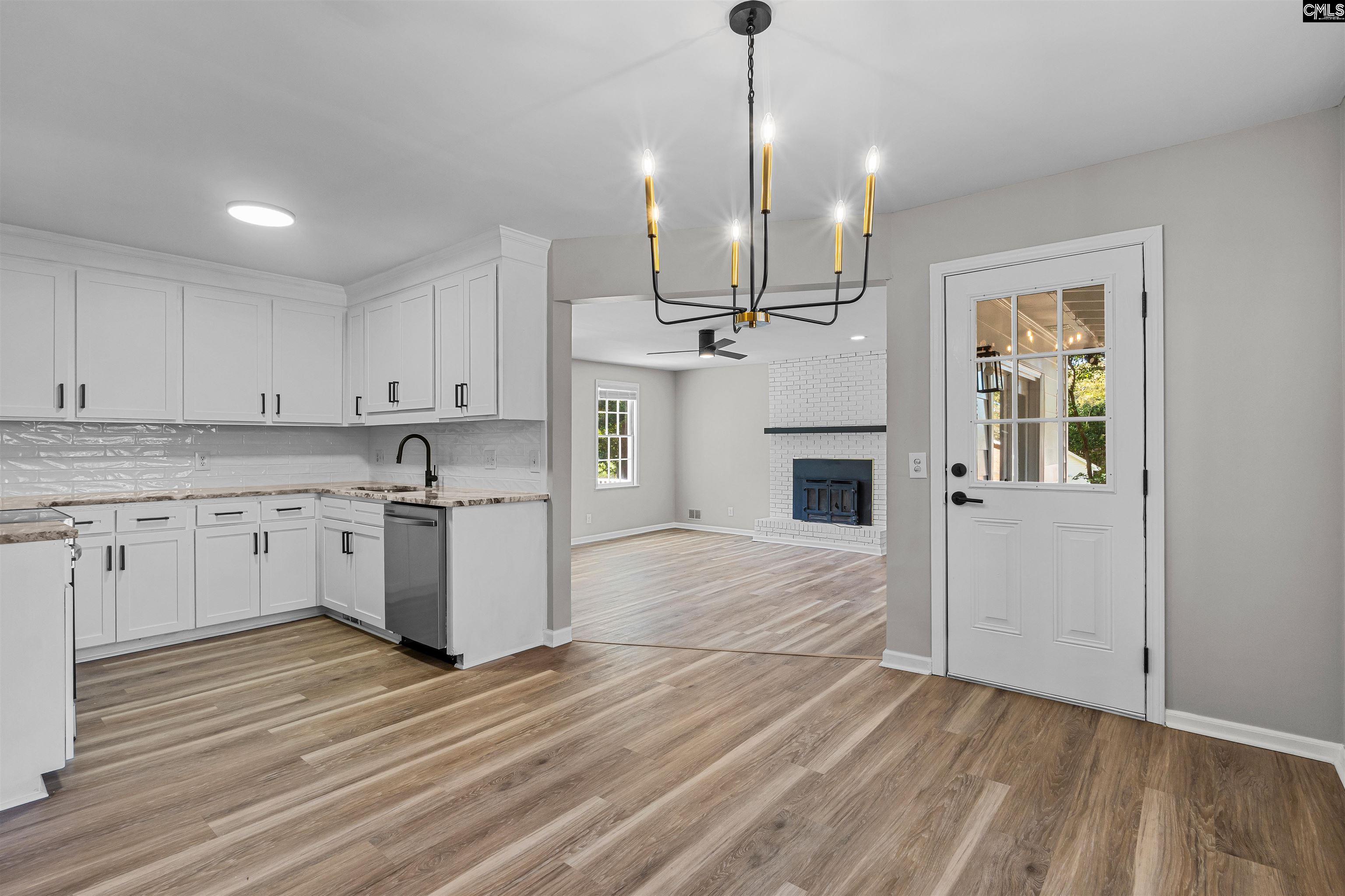 Beautifully updated and renovated 3-bedroom, 2 bathroom home in a culdesac on large 0.38 acre lot in Spring Lake, zoned for Meadow Glen and River Bluff! With a whole home update to include fully painted exterior and interior, new LVP flooring throughout, and updated kitchens and bathrooms, this home is move-in ready and packed with desirable features. Covered front porch with room for sitting, large great room with wood burning fireplace. Updated kitchen boasts marble countertops, a tiled backsplash, shaker door cabinets, and stainless appliances including a dishwasher, range hood, and smooth-surface range, as well as sink and faucet. Kitchen also opens to a large eat-in area with new chandelier and room for a dining set. The master bedroom, conveniently located on the main floor, features walk-in closet and a private closet, as well as updated bathroom with new vanity, tiled walk in shower, and LVT flooring. Two additional bedrooms share a full bathroom with a new vanity and new tub-shower combo with a fully tiled surround. A large covered deck overlooks the spacious fenced-in backyard of the home, perfect for pets or enjoying the outdoors. Wooded and shaded as well, and in a quiet cul-de-sac while being close to everywhere you want to be! Minutes from I-20, Lexington, West Columbia, downtown columbia, shopping and dining options, and many other local amenities. Come and see why this could be your next home! Disclaimer: CMLS has not reviewed and, therefore, does not endorse vendors who may appear in listings.