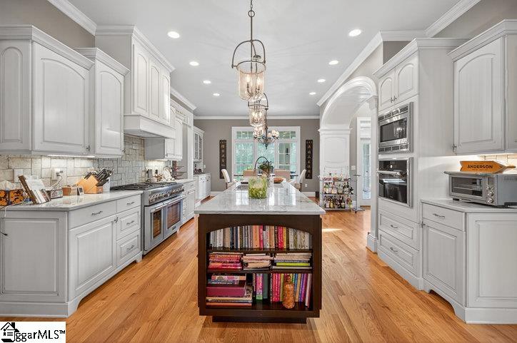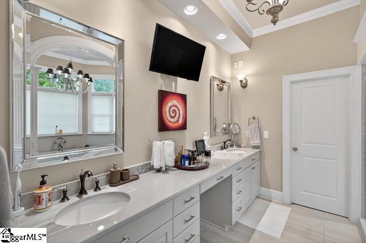 Stunning custom home offering luxury finishes without the hassle of new construction. Grand foyer opens to formal living room/library with fireplace and a spacious dining room. Expansive living room with fireplace flows into a chef’s kitchen featuring Sub-Zero refrigerator, Thermador 48” gas range, wall steam oven & microwave, freezer drawers, ice machine, walk-in pantry, wet bar, and large breakfast nook seating 8–10. Next, a light-filled sunroom with mini split and “easy-breeze” stackable windows for year-round comfort. The perfect place to curl up and read, nap or just enjoy the day. Main-floor primary suite includes tray ceilings, fireplace, large walk-in closet, and spa-like bath with freestanding tub, walk-in shower, and private water closet. Additional main-floor bedroom, full bath, and laundry room. Upstairs offers 3 more bedrooms, 2 full baths, second laundry, exercise room, rec room, and media room. Located in a desirable neighborhood with a great school district and easy access to shopping and interstate. Major updates: roof (2022), HVAC (2022), sunroom (2018), hardwoods refinished (2016), full kitchen renovation (2016), primary suite renovation (2016), new gutters (2022), mini split (2025). Move-in ready—just unpack and enjoy the pool.