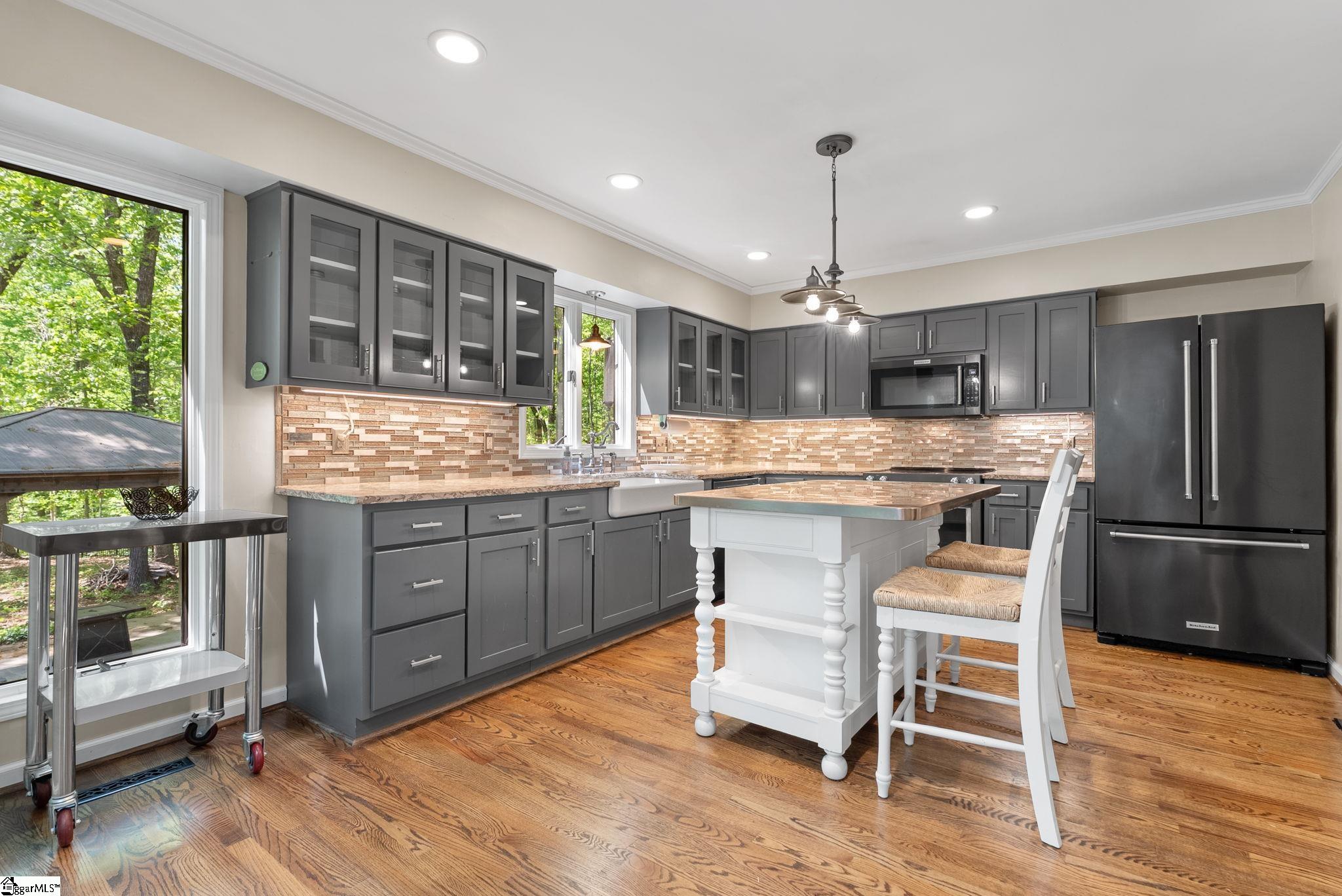 Nestled within the prestigious gated community of Chickasaw Point, 105 Spoon Ct. is a captivating two-story lake house that perfectly balances rustic charm with modern elegance. The heart of the home features a stunning living room, anchored by a two-story brick fireplace with a rustic wood mantle and matching stone hearth, all set beneath soaring vaulted wood-tongue-and-groove ceilings and gleaming hardwood floors. Culinary enthusiasts will adore the large kitchen, which boasts granite countertops, a tile backsplash, premium black stainless steel KitchenAid appliances, a separate island, and a formal dining room situated just off the main cooking area. The expansive primary suite on the main level offers a private retreat, featuring French doors that lead directly to an intimate outdoor area with a step-down hot tub. The main floor is completed by a functional laundry room and a flexible utility space, while the upper level provides a large, private bedroom with its own full bathroom. The exterior of the property is just as inviting, offering a charming iron-fenced yard and a picturesque gazebo perfect for quiet afternoons. Living in Chickasaw Point means embracing an active lifestyle with unparalleled amenities, including lake access, a marina, golf, tennis courts, a pool, walking trails, a playground, and more! Whether you are spending the day on lake Hartwell or enjoying a meal at the Overlook Restaurant with breathtaking water views, this home offers a unique opportunity to live where you play.