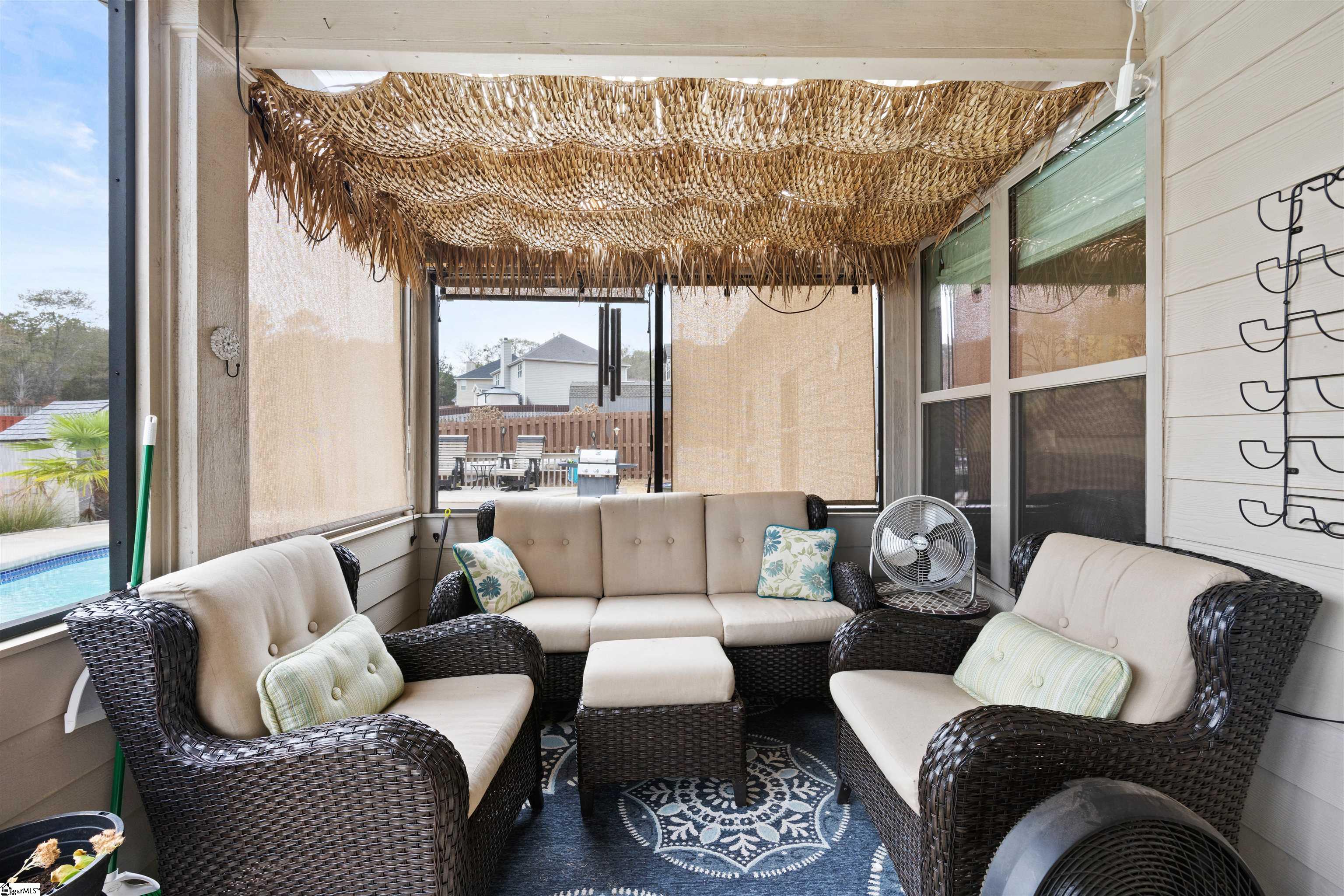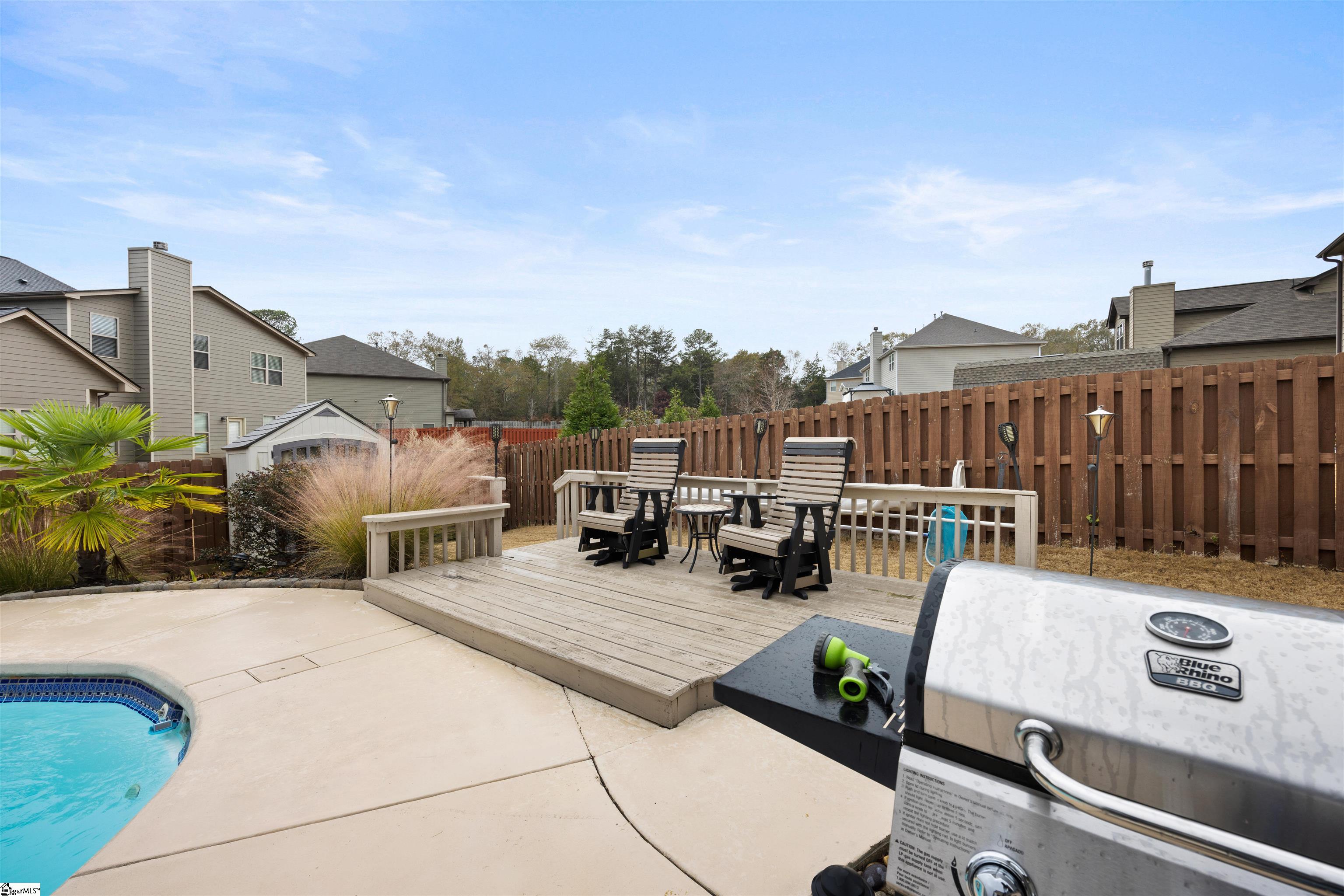 Welcome to this spacious and well-appointed home located in the desirable Morning Mist subdivision. This 4-bedroom, 3-bathroom property offers an ideal blend of comfort, functionality, and upscale features. The primary suite is conveniently located on the main level, featuring a generous ensuite bathroom with double sinks, double walk-in closets, a large walk-in shower, and a luxurious Kohler walk-in tub. Two additional bedrooms and a full bathroom are also situated on the main floor, providing excellent convenience and flexibility. The fourth bedroom upstairs includes its own private bathroom, perfect for guests or a private retreat. Designed for the home chef, the gourmet kitchen boasts double ovens, a gas cooktop, granite countertops, stainless steel GE appliances, and a large center island with extra storage. The kitchen opens to a spacious great room with a gas fireplace, creating a warm and inviting living space. The main floor also offers a formal dining room and a walk-in laundry room. Step outside to enjoy the expansive screened-in porch overlooking a stunning in-ground saltwater pool, perfect for relaxing or entertaining. Morning Mist community amenities include a playground, clubhouse, pool, and sidewalks, adding to the appeal of this wonderful neighborhood. This home is convenient to shopping and a short drive to downtown Greenville! You will love all that this home has to offer!