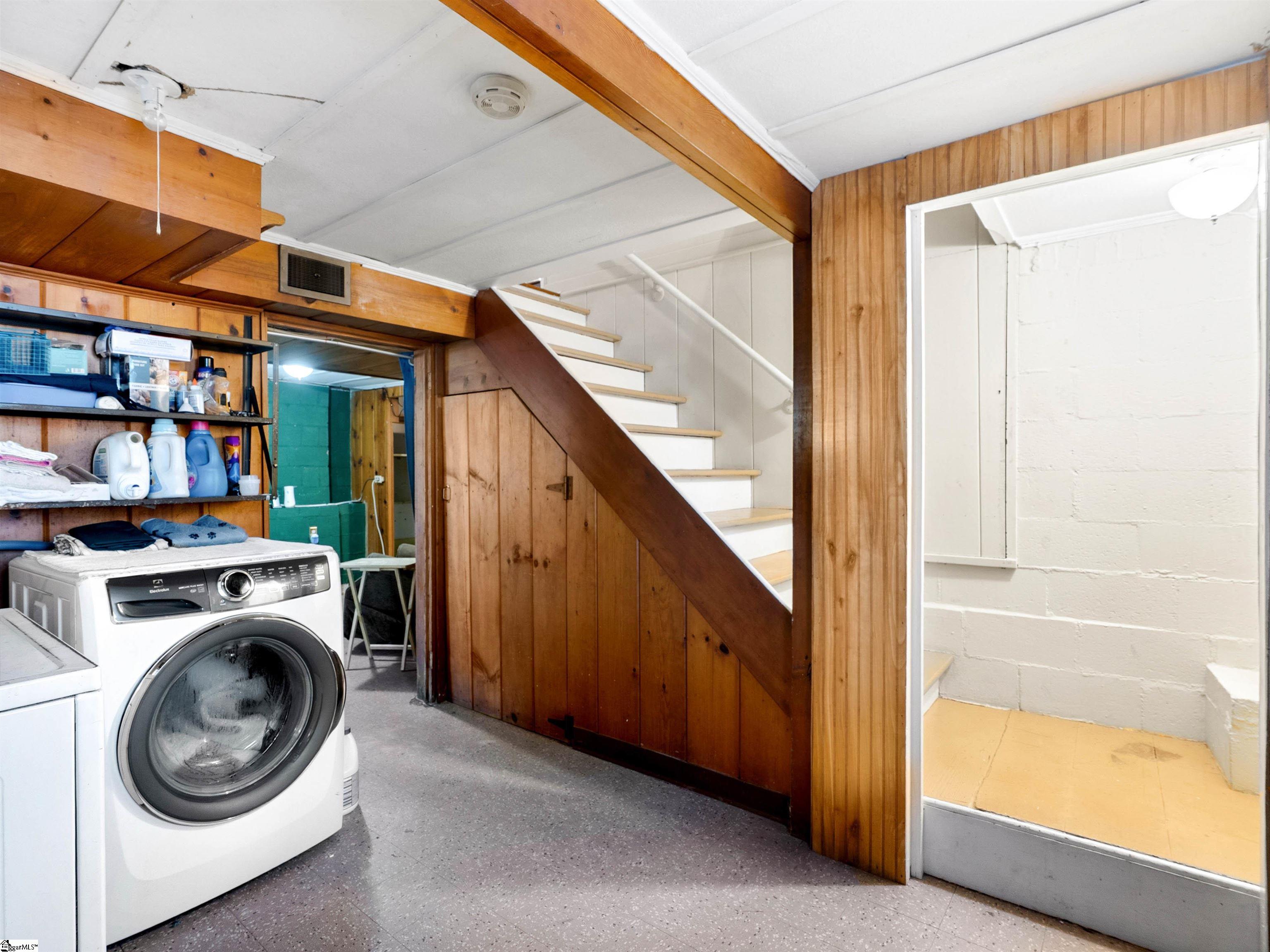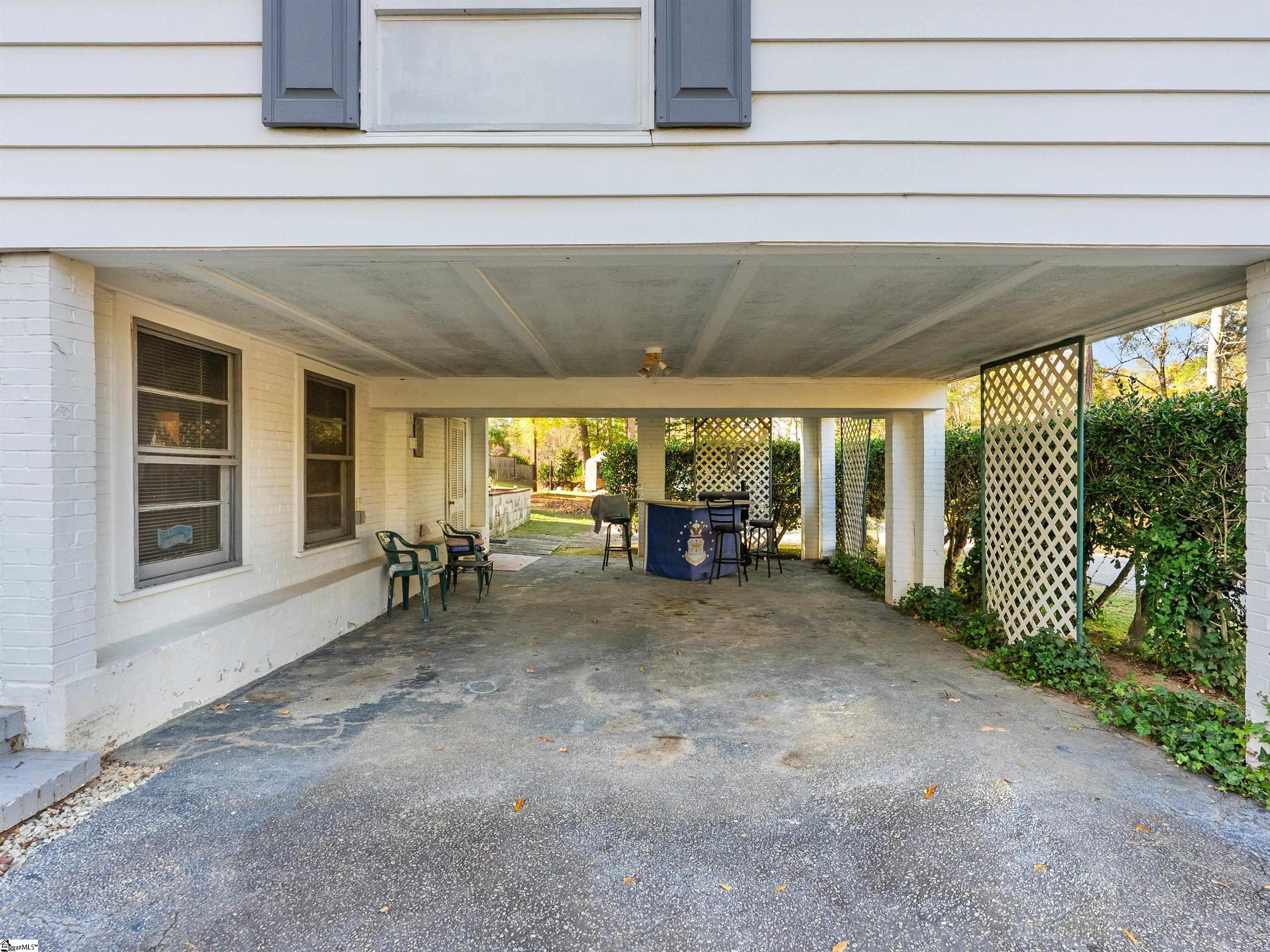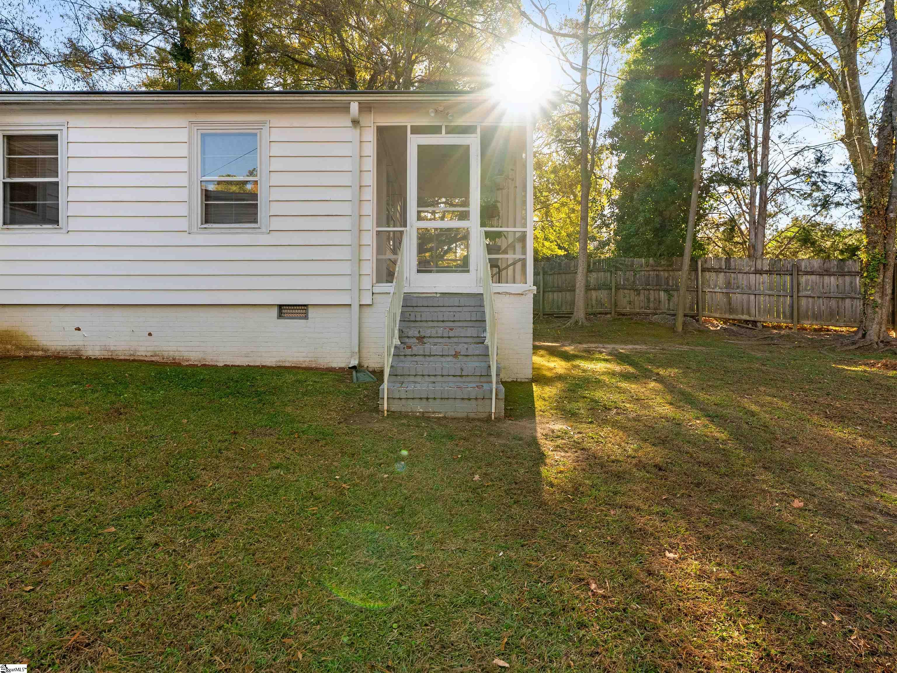 Welcome to this beautifully maintained 1956 ranch-style home just moments from downtown Laurens and local parks. Sitting on nearly an acre, this 3-bedroom, 2.5-bath charmer offers over 2,400 square feet of living space — including a finished basement area perfect for hobbies, a playroom, or a quiet retreat. Step inside and you’ll immediately appreciate the pride of ownership. The original hardwood floors have been freshly refinished, and the inviting living room features new tile flooring for durability and style. The cozy office at the back of the home provides the ideal work-from-home setup and flows directly onto a screened-in porch overlooking the tree-lined backyard — the perfect spot for morning coffee or quiet evenings. Two beautifully updated bathrooms on the main level offer fresh finishes, including a new tub/shower combo in one and a walk-in tiled shower in the primary suite. The kitchen embraces its 1950s character with original cabinetry enhanced by glass inserts and the home's unique, vintage locking hardware — a charming detail you won’t find anywhere else. Downstairs, the partial basement adds incredible flexibility with a recreational room, laundry area, and a convenient half bathroom. Outside, enjoy a spacious yard dotted with mature trees, a storage shed, a carport for covered parking, and a second exterior access point from the kitchen for easy in-and-out living. With a 5-year-old roof, city water and sewer, no HOA, and a location where you can stroll to downtown Laurens or nearby parks, this home blends timeless style with modern comfort — a rare find with room to grow