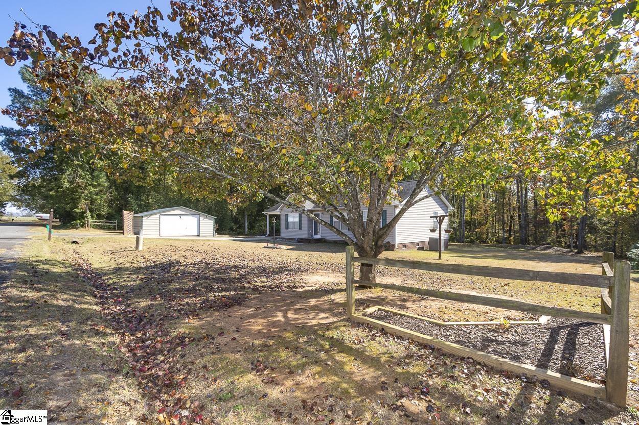 Property location qualifies for 100% USDA Rural Housing Loan financing. Single level home with no HOA nor fees and situated within a wooded and established neighborhood. Easy to maintain exerior finishes of vinyl and brick with mature landscaping. Covered parking is a combination of attached carport and detached garage. Detached building at ~600' and is finished with concrete flooring and electricity; perfect for a workshop or storage. At almost 1 acre lot the WOW is when you walk to backyard. Serene is the word with the expanse of the open grassed area, grand trees, a natural area down to the creek. Entry to the home brings you to the living room and is open to the eat in / dining area. Galley style kitchen where all appliances remain and extra storage shelved pantry. Laundry closet and side entry access door to carport complete this area. Ever popular split bedroom floorplan; with Primary featuring a walk in closet and private bathroom with newer walk in shower. Two secondary bedrooms share a hallway located full bathroom. From dining area one will access the rear covered porch; perfect for grilling and dining. Country setting property is close to south side Anderson shopping, District 3 schools and vast number of employers.
