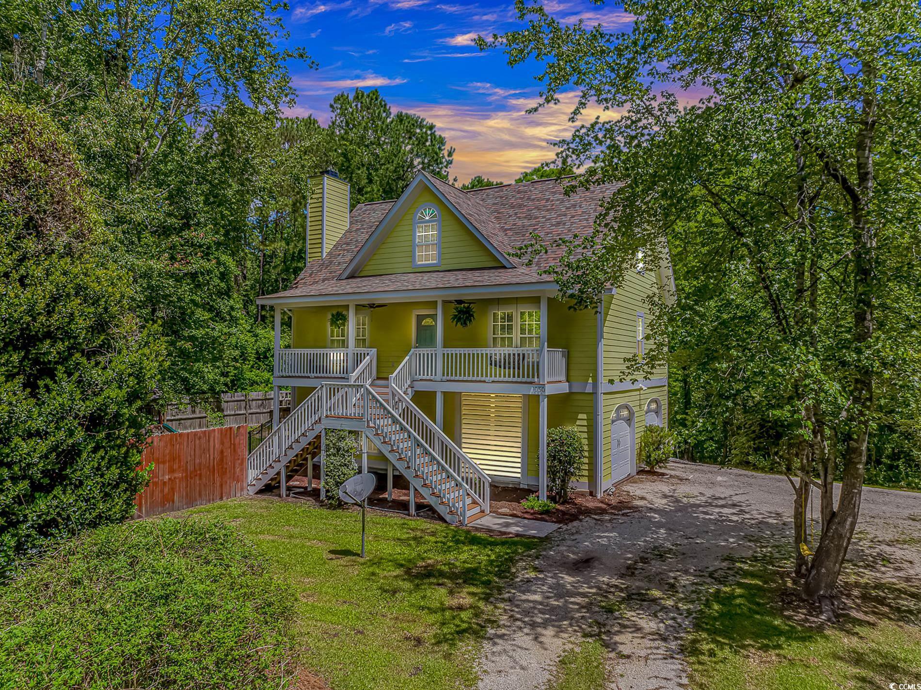 Welcome to 1050 Hagley Dr! Situated in a peaceful wooded setting and only seconds to Hagley boat landing and minutes from Pawleys Island beaches you get the best of all the Lowcountry has to offer. With 4 bedrooms, 3.5 bathrooms and double living spaces this home offers tons of optionality to meet your needs. With the bottom floor having its own bedroom, bathroom, living space , laundry area, kitchenette, and separate entrance its the perfect set up for multigenerational living, guest quarters, man/woman cave, or rental space. On the main floor you will find an open concept living space, fireplace, kitchen, 1/2 bathroom, laundry area, and master suite, that is hall marked by a fully custom walk in master shower. On the top floor you are greeted with 2 large bedrooms and full bathroom along with additional flex space that can be used for a multitude of applications. The exterior of the home has an incredible low country front porch, double back decks overlooking peaceful woods, a fenced in yard space, and extended driveway the has plenty of space to park your boat, RV, or whatever other toys your heart desires. Additionally, you can take comfort in knowing that a new roof was put on in 2024, as well as new exterior premium paint to add extra protection to the outside of the home. New upstairs HVAC 2025. With incredible space on the inside and outside of this home, along with a special location; 1050 Hagley Dr needs to be on your list to see.