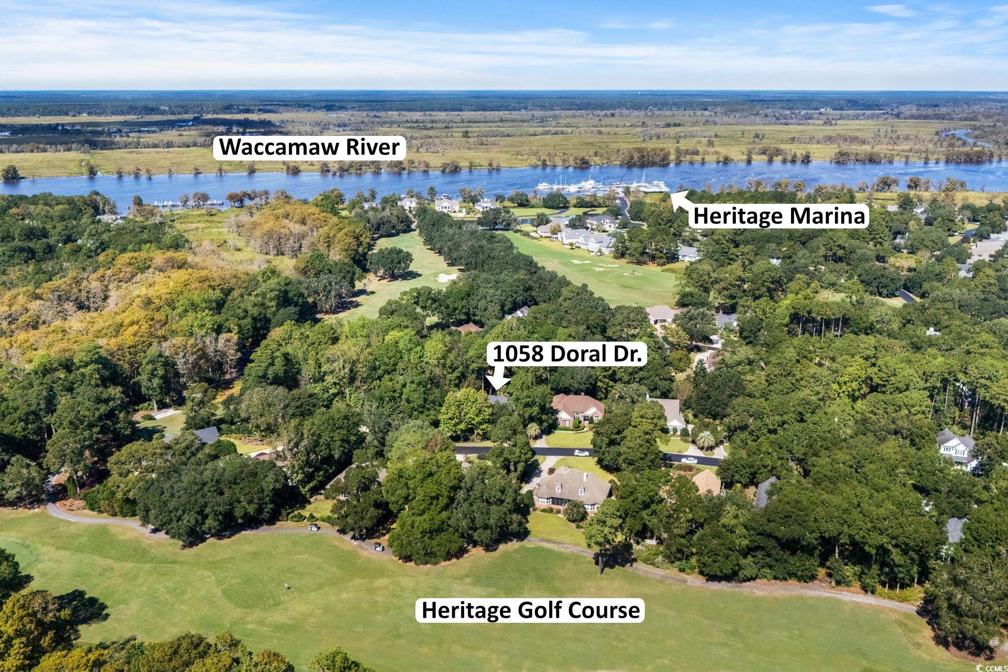 Welcome to 1058 Doral Drive — a home graced by its very own 100-year-old live oak tree draped in Spanish moss, providing captivating curb appeal and a true sense of Southern charm. Here, timeless Lowcountry elegance meets relaxed coastal living in the prestigious, gated Heritage Plantation Community. From the moment you pass through the grand entrance beneath the canopy of century-old oaks, you’ll feel the natural beauty and coastal serenity that make this riverfront community so uniquely extraordinary. Perfectly tucked away at the end of a peaceful cul-de-sac, this custom-built all-brick home offers 4 bedrooms, 3.5 baths, and a thoughtfully designed open floor plan ideal for both everyday comfort and effortless entertaining. Recent updates enhance its appeal, including brand-new LVP flooring (2025), new carpeting in guest bedrooms (2023), and a heated & cooled saltwater pool with tranquil waterfall (2024) the centerpiece of your own private backyard oasis. Inside, natural light fills the inviting living spaces. The Living Room features a classic brick wood-burning fireplace with a custom built-in and opens to a charming 3-Season Room wrapped in knotty pine, where floor-to-ceiling windows frame lush backyard views and invite the outdoors in. The Kitchen is beautifully appointed with granite countertops, stainless steel appliances, tile backsplash, two pantries, and a generous work island with breakfast nook — flowing easily to the Dining Room and Family Room, perfect for gatherings large or small. The Primary Suite is a peaceful retreat offering a tray ceiling, walk-in closet, and spa-style bath with whirlpool tub, marble-tiled shower, and dual granite vanities. Two guest bedrooms share a Jack-and-Jill bath, while a conveniently located half bath and spacious laundry room add everyday functionality. The side-load 2 car attached garage provides convenience along with direct access to additional storage and large private suite (25’x21’) with full bath providing flexible space for guests, a home office or media room. Outdoors, your backyard retreat feels like a private coastal sanctuary — featuring the sparkling heated saltwater pool, shaded pergola, and lush landscaping that create a tranquil setting for morning coffee, afternoon swims, and evening cocktails under the stars. Residents of Heritage Plantation enjoy 24-hour gated security and resort-style amenities including a community pool, Har-Tru clay tennis courts, pickleball, croquet, children’s playground, and a stately owners’ clubhouse with fitness center, party room and cardroom. The community marina on the Intracoastal Waterway offers a party deck where residents gather to socialize and enjoy breathtaking views of the Intracoastal Waterway. Additionally, there is a dock house operated by a full-time dock master, 40 boat slips, a boat ramp and dry dock storage. Golf lovers will appreciate the award-winning Heritage Plantation golf course, designed by Dan Maples and ranked among the “50 Best Public Courses in America” by Golf Digest. Located just minutes from the sparkling Atlantic Ocean, the Heritage Plantation Community’s location offers easy access to an abundance of legendary golf courses, delightful family-owned restaurants, unique boutique shops, and a wide range of water/leisure activities to enjoy. 1058 Doral Drive invites you to experience a graceful blend of Southern elegance and laid-back coastal living — the perfect place to call home!
