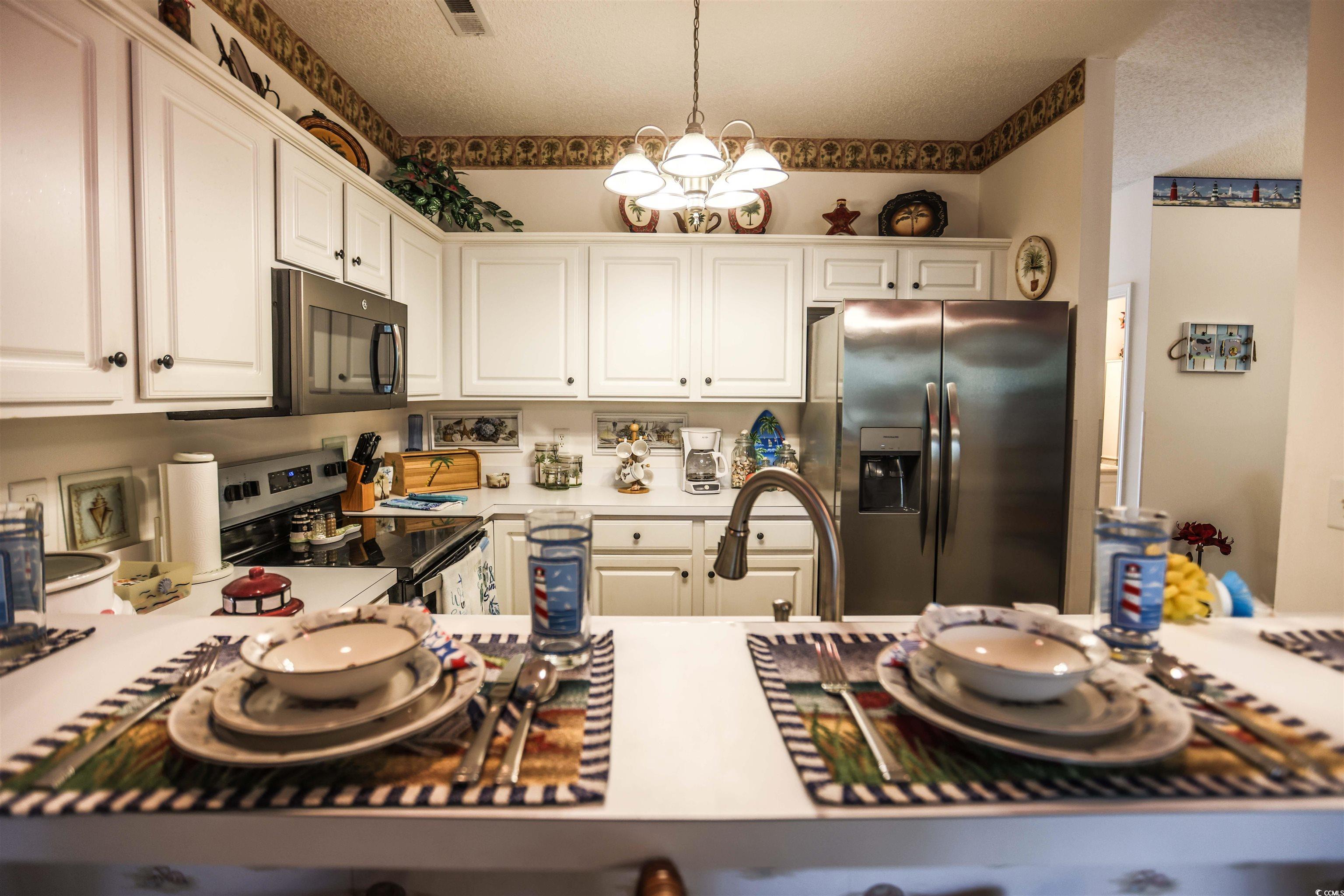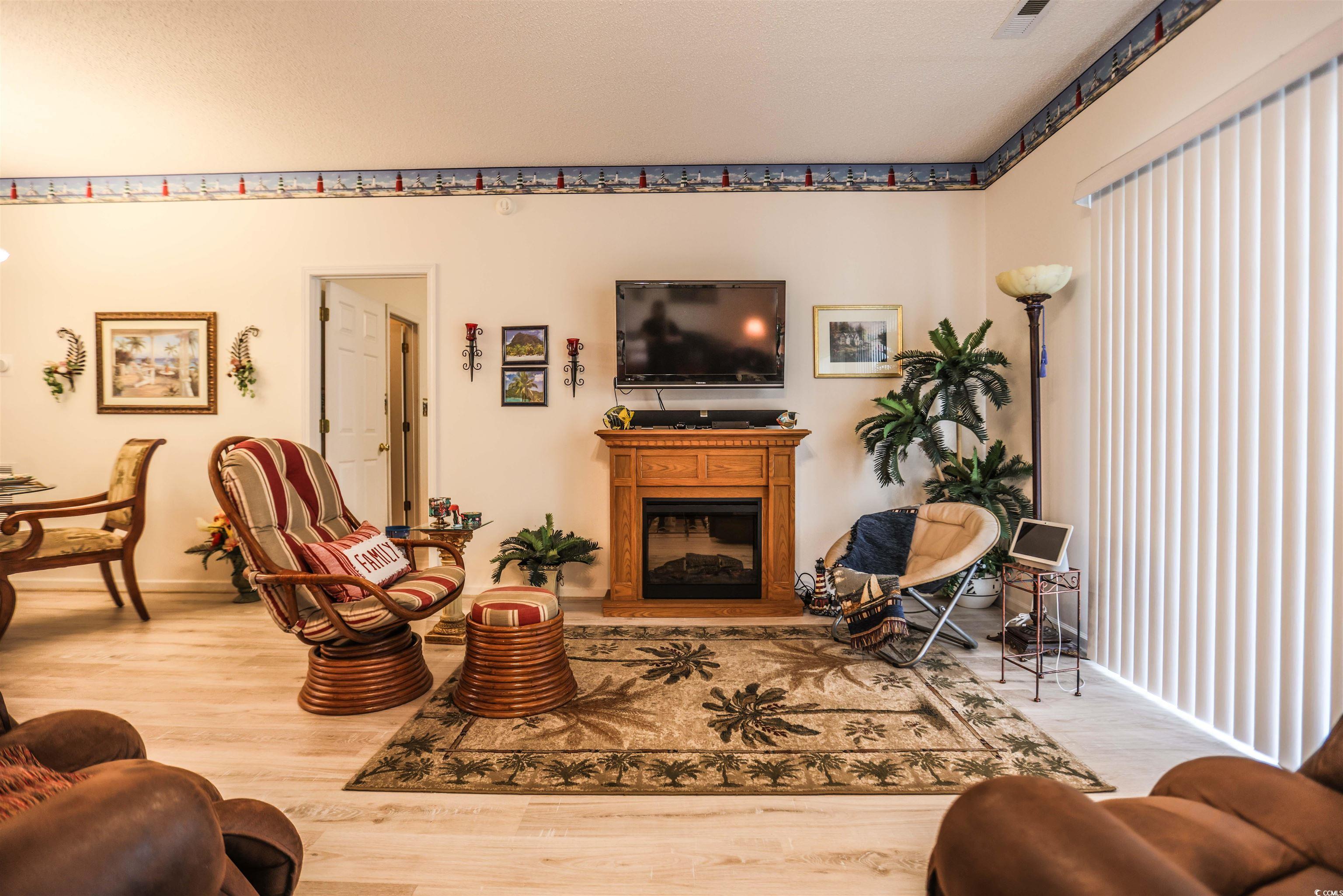 You have found it! This fully furnished, turnkey ready, 3 bedroom, 2 bath condo and it's only a short golf cart ride or walk to the beach in Cherry Grove! Only one owner and it has never been rented and only used as a family getaway since it was built. The interior has many recent upgrades including luxury vinyl plank flooring (February 2025), new kitchen appliances (April 2025), and high chair toilets installed 2025! In 2023 there was an air filtration, on the new HVAC. The living room holds a sleeper sofa and two beautiful recliners for extra comfort. The 31' x 5' screened porch includes a spacious outdoor storage for personal or beach items. Within the community you may enjoy an outdoor pool, a pond with a fountain, grilling stations, and assigned golf cart parking. Unfortunately, there is a fee to have a golf cart and currently a waiting list.