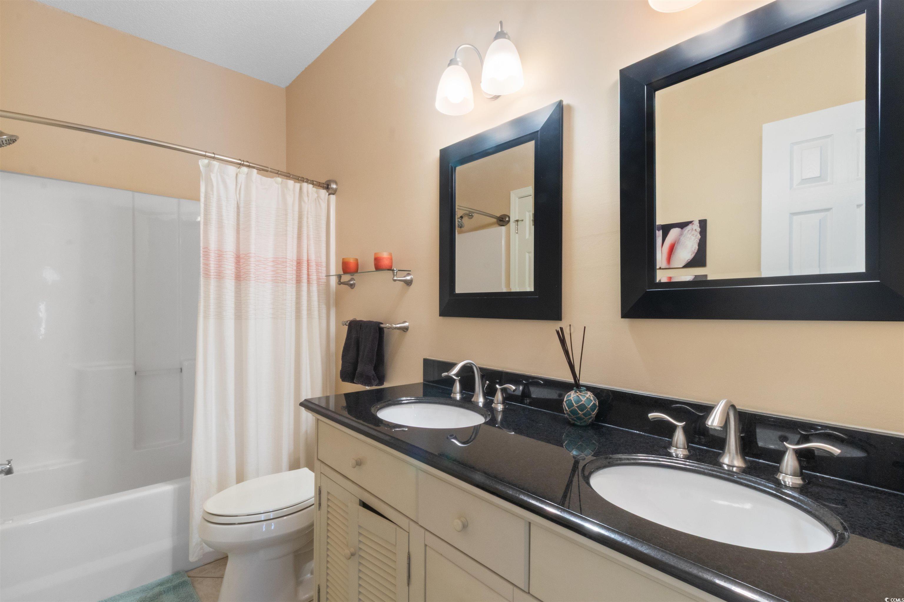 Welcome to your fully furnished three-bedroom, two-bathroom condo in the heart of Cherry Grove in NMB! This top-floor end unit offers both privacy and comfort with diagonal tile flooring in the main living areas, adding a touch of elegance and durability. The spacious kitchen features solid surface countertops and comes fully equipped with all appliances, including the washer and dryer, making this a true turnkey property. The primary suite is a relaxing retreat, complete with a dual sink vanity and ample closet space. Wainscotting was added in the front bedroom and entry area. Step out onto your fully screened porch with Cooloroo Shades, perfect for enjoying your morning coffee or evening beverage while overlooking the community pool. Brand new patio and storm doors. With its ideal location, this condo allows you to enjoy all that Cherry Grove has to offer. From dining, shopping golf, beaches and so much more. Whether as a primary residence, vacation getaway, or income-producing investment. Schedule your showing today to make this beautiful condo yours!
