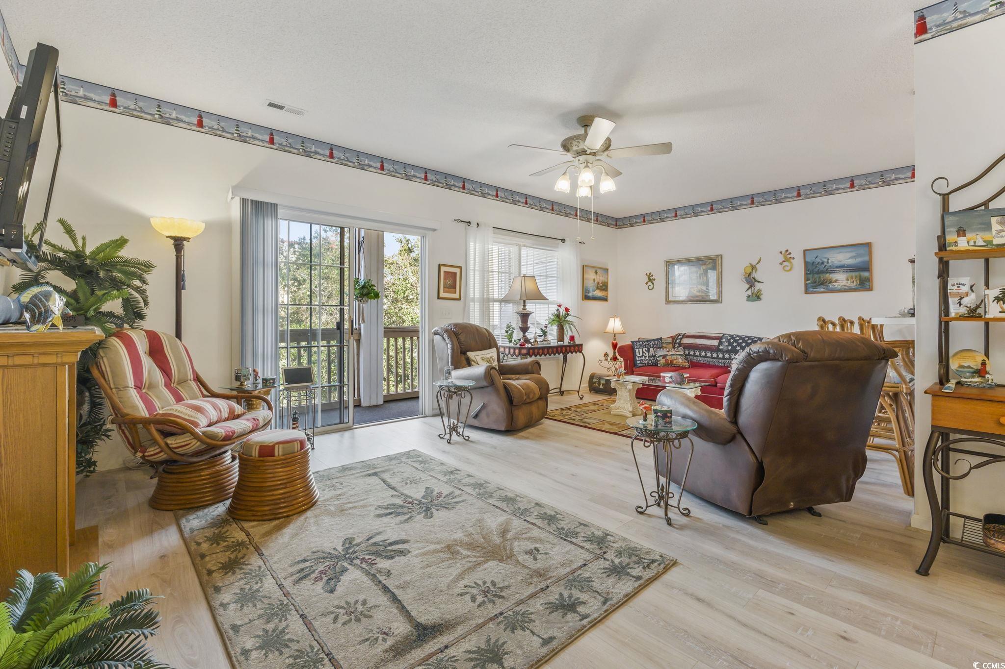 OPEN HOUSE: March 28th from 12-3PM. Welcome to your new coastal retreat where comfort, convenience, and the Cherry Grove lifestyle come together beautifully. This stunning 3-bedroom, 2-bath condo is less than one mile from the beach and just a short walk or golf cart ride away, making beach days, sunset strolls, and spontaneous ice cream runs part of everyday life. With only one owner, never rented, and meticulously maintained, the pride of ownership is evident throughout. Offered fully furnished and truly turnkey, this home includes everything you need to start enjoying it immediately—all furniture, beds, linens, dishes, cookware, all flat-screen TVs (including two Roku devices), and even fun extras like an air hockey table and foosball table neatly stored in the guest room closet, perfect for entertaining kids and guests. The fully equipped kitchen is ideal for both casual meals and gourmet cooking, featuring new stainless steel appliances (2025) and all-new faucets, while recent upgrades include luxury vinyl plank flooring throughout (2024), comfort-height toilets in both bathrooms (2024), a hot water heater (2021), a new HVAC system (2023) with added air filtration, and a Google Nest smart thermostat for modern comfort and efficiency. The inviting living room offers a sleeper sofa, two plush recliners, an electric fireplace, and a flat-screen TV—perfect for relaxing after a day in the sun. Step out onto the expansive 30’ x 5’ screened-in porch with new ceiling fans, patio furniture that conveys, and additional outdoor storage ideal for beach gear and personal items. The spacious primary suite features a queen-size bed, walk-in closet, private ensuite bath, and direct porch access, while a dedicated laundry room with washer and dryer adds everyday convenience. Community amenities include an outdoor pool, pond with fountain, grilling stations, and optional assigned golf cart parking for a fee. Short- and long-term rentals are allowed, pets are welcome for owners, internet is included in the HOA, and the HOA covers nearly everything except interior electric and the owner’s HO-6 policy. Ideally located along Sea Mountain Highway, you’re minutes from all that Cherry Grove has to offer, Cherry Grove Beach, the iconic Cherry Grove Pier, waterfront dining, shopping, golf courses, marinas, live entertainment, and everything North Myrtle Beach has to offer—making this an exceptional opportunity for a primary residence, vacation getaway, or income-producing investment in one of the area’s most sought-after coastal communities.