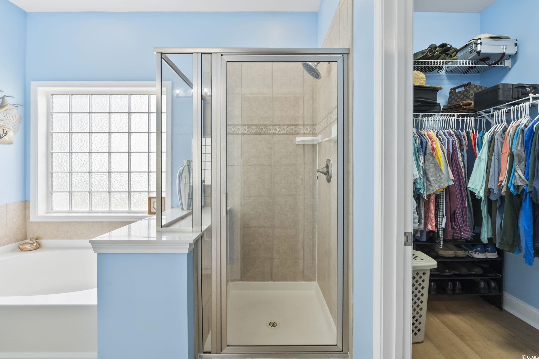 Stunning, spacious, and completely move-in ready! Welcome to this beautiful and meticulously maintained home in the highly desirable Linksbrook at Prince Creek. From the moment you arrive, the lush landscaping and inviting curb appeal set the tone for everything this beautiful property offers. Inside, you'll find soaring ceilings, fresh paint, and new luxury vinyl plank flooring throughout the main living areas. The open concept floor plan creates a seamless flow from the spacious living room to the dining area, into the updated kitchen and the sun-filled Carolina room. The kitchen features newer stainless steel appliances, a stylish backsplash, and plenty of counter and cabinet space for all your cooking and entertaining needs. This home is truly built for both everyday comfort and entertaining. Off the Carolina room, step outside to a private patio that overlooks a wooded backdrop, offering a peaceful retreat for your morning coffee or relaxing evenings. The backyard is fully fenced, offering a private outdoor space perfect for pets, entertaining, or simply unwinding in peace. A dedicated study sits just off the dining room, perfect for a home office, there is a spacious bonus room over the garage that easily serves as a fourth bedroom or can be used as a large flex space to suit your lifestyle. All main bedrooms are located on the first floor, making this home perfect for easy living. The owner’s suite is generously sized with a walk-in closet and a well-appointed en-suite bathroom. Additional features include a roof replaced in 2021 and a new HVAC system in 2019, giving you peace of mind for years to come. The Linksbrook community offers incredible amenities including a clubhouse, swimming pool, tennis courts, and social events, all with low HOA fees. Located just minutes from the beach, Huntington Beach State Park, Brookgreen Gardens, top-notch golf courses, fantastic restaurants, and shopping, this home combines luxury, location, and lifestyle. You will not find another one like it. Come see why this home stands out and schedule your private tour today.