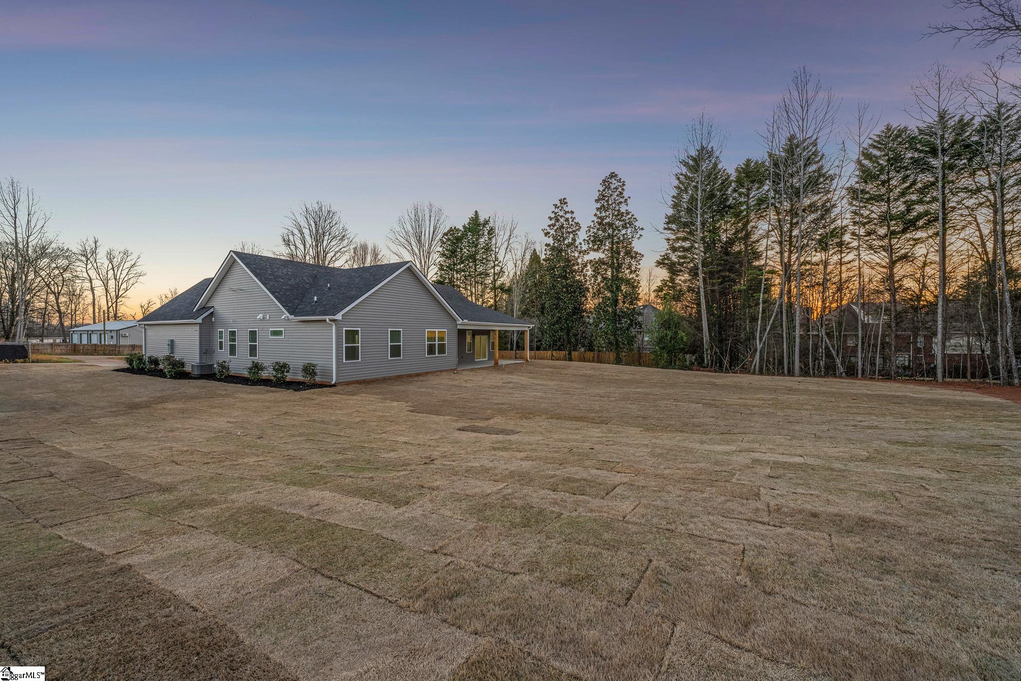 Comfort without sacrificing elegance… and without an HOA! Set in the highly desirable Powdersville area, 106 Ellison Dr is a newly built home that offers the perfect blend of modern design and everyday ease, with the rare advantage of no HOA restrictions and a spacious property that gives you the freedom to truly make it your own. Located within the award-winning Powdersville school district, this home combines lifestyle, flexibility, and top-tier education in one exceptional setting. The fully sodded property is framed by attractive board-and-batten gables with decorative wooden accents and a charming covered entry, giving the exterior a dynamic and welcoming presence. The large, level backyard is a standout feature that’s fully usable and incredibly functional. Whether you envision a future pool, garden, play space, or sports area, the flat layout provides the ideal canvas for your dream backyard retreat. Perfect for entertaining, the home features a bright, open layout with a crisp, contemporary interior. Luxury vinyl plank flooring runs throughout, complemented by vaulted ceilings and recessed lighting in the main living areas. The Family Room centers around a gas fireplace with a quartz surround. The chef’s Kitchen is designed to impress, showcasing quartz countertops and a matching backsplash, along with premium stainless-steel appliances, including a gas cooktop. An adjacent Dining Area showcases a modern candelabra chandelier and offers picturesque views of the expansive backyard. Just off the main living space, you’ll find a dedicated Office/Study and a convenient Half Bath. The home’s split floor plan ensures privacy for the luxurious Owner’s Suite, which features a trey ceiling and private outdoor access. The spa-inspired ensuite Bath includes dual vanities, a tiled shower, a standalone soaking tub, and a huge walk-in closet with custom built-ins. On the opposite side of the home, three spacious Bedrooms with generous closets share a well-appointed Hall Bath. A large Laundry Room adds everyday convenience. Out back, the covered rear patio is a great space for outdoor dining, relaxing, or planning the outdoor oasis you’ve always wanted. With a flat, highly functional yard, plenty of space, and no HOA limitations, the possibilities are wide open. For added peace of mind, the home also includes a builder’s home warranty and an active termite bond, providing valuable protection and reassurance for the new homeowner as they settle into this beautiful new construction property in one of the Upstate’s most sought-after school zones. Don’t delay to see this one!