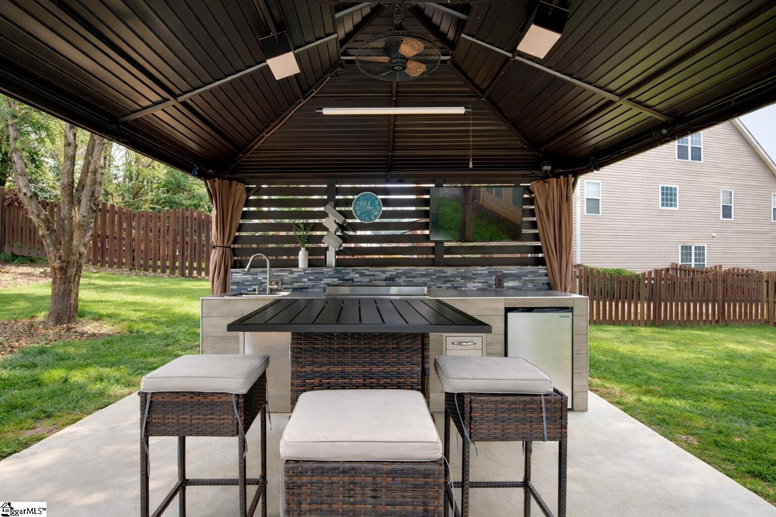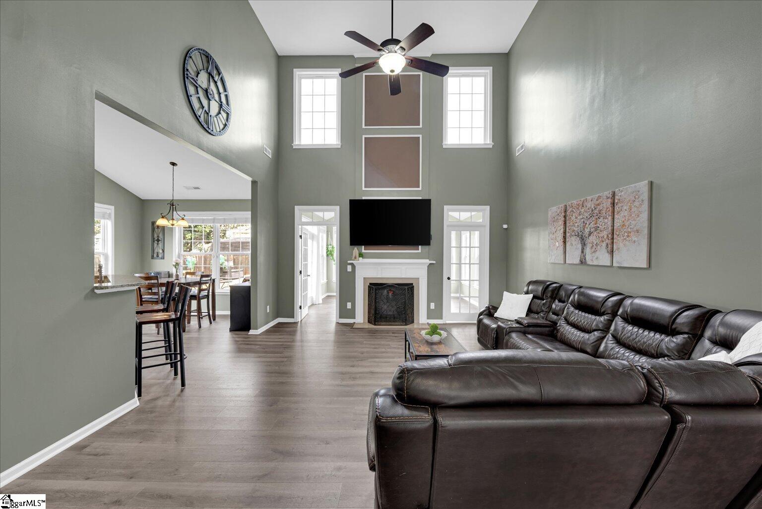 Springtime Poolside Living in Gilder Creek Farms Welcome to 106 Honey Crisp Way, where indoor-outdoor living, generous space, and a private backyard retreat come together just in time for the warmer seasons ahead, with room ready for your personal touch. Inside, generous living spaces and an open layout invite connection, from the soaring living room with dramatic staircase to the kitchen featuring double ovens and abundant prep space. A bright sunroom extends the living area, creating a relaxing place to enjoy morning coffee or unwind at the end of the day. The home features 4 bedrooms and 3.5 baths, including a primary suite on the main level and a private secondary suite upstairs, along with a spacious flex room that can function as a bedroom, guest suite, office, gym, or media room. Step outside to your private backyard retreat, ready for the spring and summer season. The outdoor living space was designed for entertaining, featuring a sparkling salt water in-ground pool, upgraded pool system with digital controls and lighting, along with a fully equipped outdoor kitchen with built-in grill, sink, refrigerator, and TV. The outdoor living area is well positioned within the lot, creating a comfortable sense of space and privacy while still enjoying the neighborhood setting. Recent improvements include modern flooring and fixtures throughout, a brand-new roof installed in late 2025, and an updated HVAC system. Located in the highly desirable Gilder Creek Farms community, residents enjoy sidewalks, a clubhouse, community pool, kiddie pool, and access to highly regarded schools. This home blends comfort, space, and outdoor living in one of Simpsonville’s most loved neighborhoods, and homes with this combination of features rarely come available.