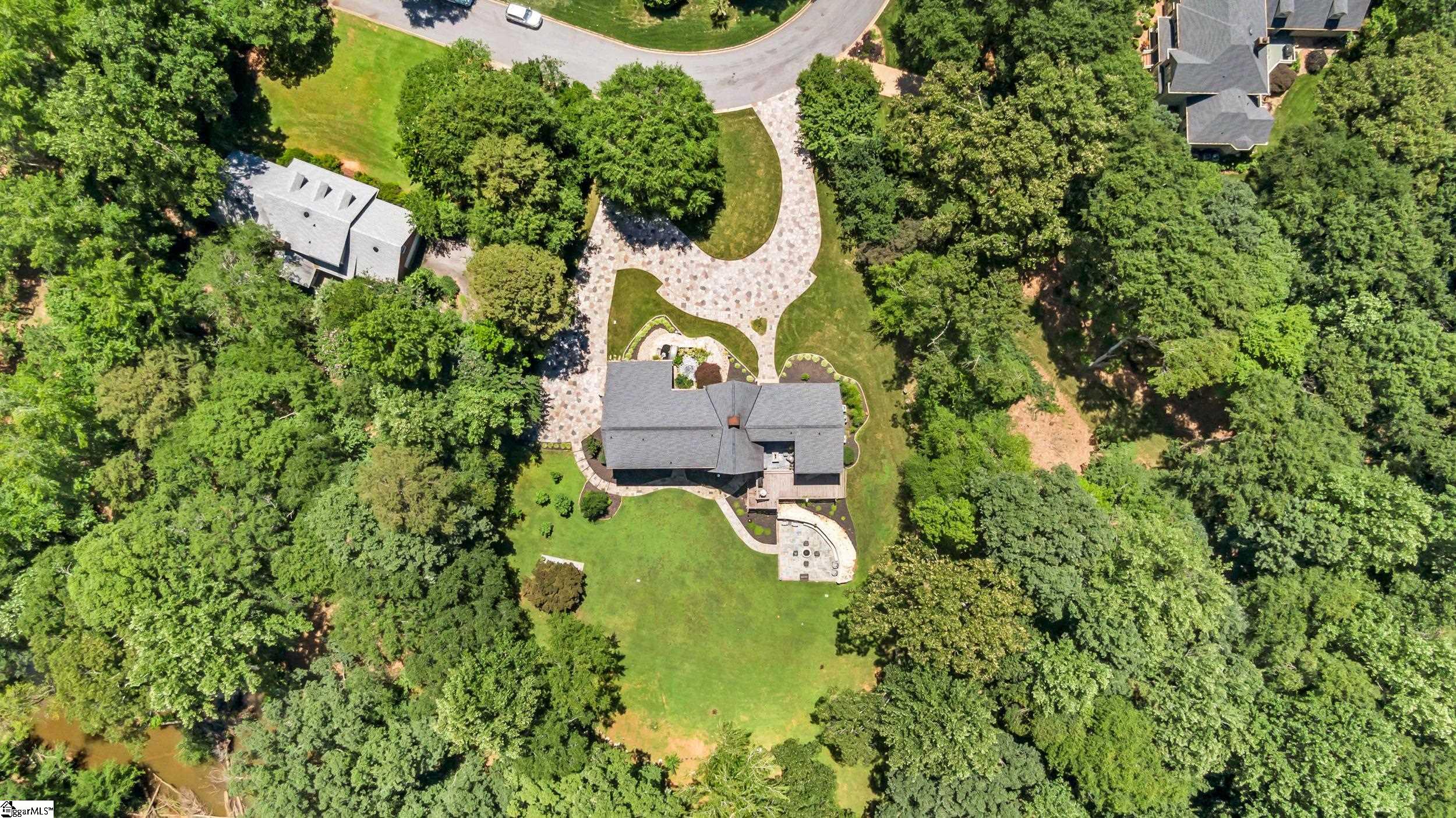 Luxurious 6-Bedroom Home in a Highly Sought-After Community – Welcome Home! Nestled in a beautiful, well-maintained community known for its scenic lakes and recreational tennis and pickleball courts, this 6-bedroom residence represents refined living with over 5,000 square feet of thoughtfully designed space on a landscaped 1-acre lot. A Grand Entrance: A peaceful koi pond and sweeping circular driveway welcome you home. The entry provides ample parking for you and your guests and leads to an elegant interior. Elegant Interior: The open and bright layout includes high ceilings and floor-to-ceiling windows that fill the home with natural light. The kitchen serves as a central gathering area, containing high-quality appliances, custom cabinetry, and a generous center island suitable for both daily use and entertaining. Inviting Outdoor Escape: Enjoy the expansive porch and deck overlooking a manicured backyard. A built-in fire pit creates a comfortable setting for evenings outdoors. The property includes direct river access and a detached shed equipped with heating, cooling, water access, and an epoxy floor—usable as a workshop, studio, or additional storage. Exceptional Features: A 7-zone irrigation system maintains lush, vibrant landscaping year-round. Residents have access to community amenities such as scenic lakes and tennis and pickleball courts, containing both recreational and relaxing spaces. Prime Location: Located just minutes from I-85, shopping, and dining, this home provides convenient access to nearby amenities while maintaining the privacy of a natural setting. Experience a balance of elegance, comfort, and functionality. Showings available by appointment.