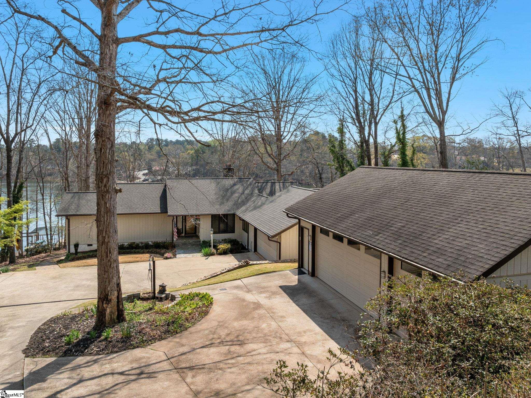 Come experience the true meaning of Lake Living at its best, located down a long private driveway! This beautiful solid built home provides stunning lake views and a gently sloped lot with a paved pathway to a brick paver patio that overlooks your private dock. 139feet of water frontage on the lake. Don’t miss Jeffery the Giraffe that keeps watch over the picturesque landscape and the sparkling water. He has become a staple on Lake Blalock and would love to stay. This 4-bedroom 3 bath home has been extremely well cared for. The expansive great room has a rock fireplace, built-ins, cathedral ceiling with exposed beams with a full view of the lake and access toa huge deck that’s a great spot for entertaining. Private dining room, kitchen with granite, stainless appliances and breakfast area. A private sauna and shower room is a treasure on the main level. Owners’ suite with 3 walk-in closets, a balcony, and private bath that has a huge walk-in shower and large jetted tub. Beautiful real hardwood floors in most of the upstairs that also includes 2 guest bedrooms and another full bath. The basement with kitchenette, living room with fireplace, full bath and the 4th bedroom could easily be used for a2nd living quarters. Don’t miss the man cave that can be used as storage, workshop, wine cellar, many possibilities! Did I mention the home has a double garage but also a 3-car detached garage! This is unheard of for a lake home to offer all this extra storage and workspace. Tons of walk-in closets for storage! Don’t miss this gem, call for a private tour.