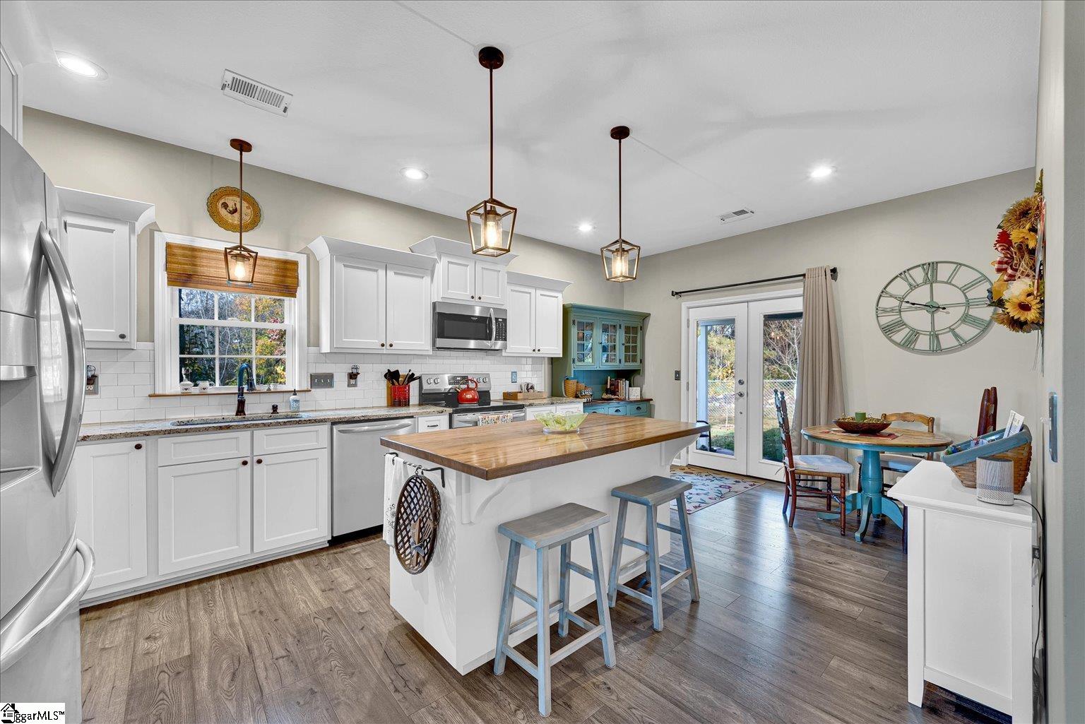 Welcome to Golden Springs! This beautifully maintained 3-bedroom, 2-bath home in the heart of Liberty is truly better than new construction. Featuring an open floor plan and a spacious eat-in kitchen, recent upgrades include a kitchen island, granite countertops, stylish backsplash, and updated lighting. Enjoy outdoor living with a fenced backyard, extended patio with roof, and an outbuilding with newer siding and electric. Additional improvements include newer windows, front and back doors, gas heat and air, and updated window treatments. Pride of ownership shines throughout—this one is not a drive-by! Schedule your showing today.