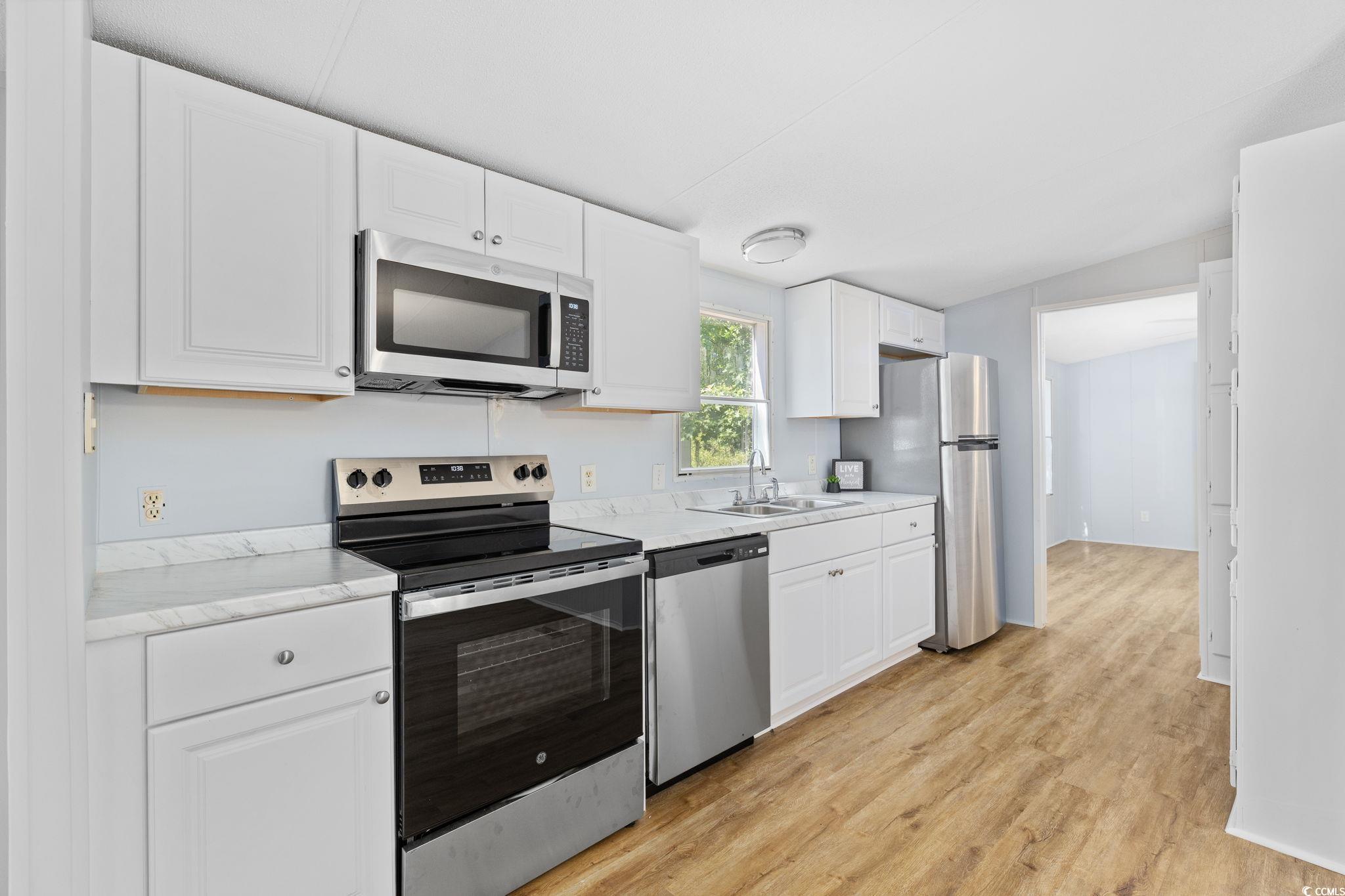 BIG PRICE REDUCTION!!!!! Great Location & Newly Renovated!!! Spacious 3 Bedroom/2 Full Bath manufactured home in the very popular 55+ Inlet Oaks Village with additional Carolina Room and shed. Updated kitchen with new stainless-steel appliances (2025), shaker-style cabinets, countertops and fresh paint throughout. NEW LVP flooring just installed as well. Brand NEW water heater (2025) PLUS roof is 2022 and HVAC condenser is 2023. This property is in great condition. Add your own touches to the primary bath and install your preferred washer & dryer and you are good to go. Tucked away at the end of the street, enjoy peace and quiet. If you want some excitement visit the community center and pool where you can enjoy reading a book, swimming and meeting new friends. The location is wonderful, less then 10 minutes from shopping, medical, restaurants, the beach and both the Marsh Walk & Brookgreen Gardens. Don't miss this opportunity to own a great little house at the beach! Request your showing today. Listing information and square footage are deemed reliable but not guaranteed. Buyer and buyer's agent are responsible for verification of measurements and mobile home park info prior to closing.