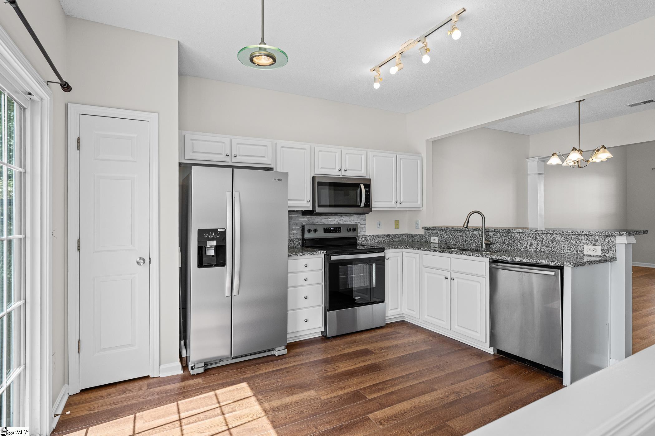 Big-ticket updates and low-maintenance living come built in… new HVAC in place, new Kitchen appliances, and lawn care handled by the HOA! Set on the Eastside near Pelham Road, I-85, and the GSP International airport, this townhome pairs everyday convenience with a layout that works. The charming front entry with its arched transom and covered porch gives a hint of character as you drive up. Inside, the freshly painted, open layout lends to easy entertaining. The Sitting Room flows into a formal Dining area defined by decorative columns and wainscoting. Just beyond, you will love the Kitchen that showcases granite counters, new stainless appliances, an elevated snack bar, and a light-filled Breakfast Nook! For more cozy evenings, your family will retire to the Den that’s tucked in the back and boats a corner set gas log fireplace. Completing the main floor are a convenient Half Bath and Laundry already outfitted with a washer and dryer. Upstairs, the Owner’s Suite is larger than expected, with a new fan, an 11x4 walk-in closet and a private bath featuring dual sinks with extended counter space, a soaking tub, and separate shower. Two additional Bedrooms, each with their own new ceiling fans, share the centrally located Bath. Relax out back on the open Patio that overlooks a grassy common space. Whether you’re looking for a primary residence or a smart addition to a portfolio, this home checks the boxes that matter: major system updates, low exterior upkeep, functional layout, and a location that keeps everything within reach. Call now before it’s gone!