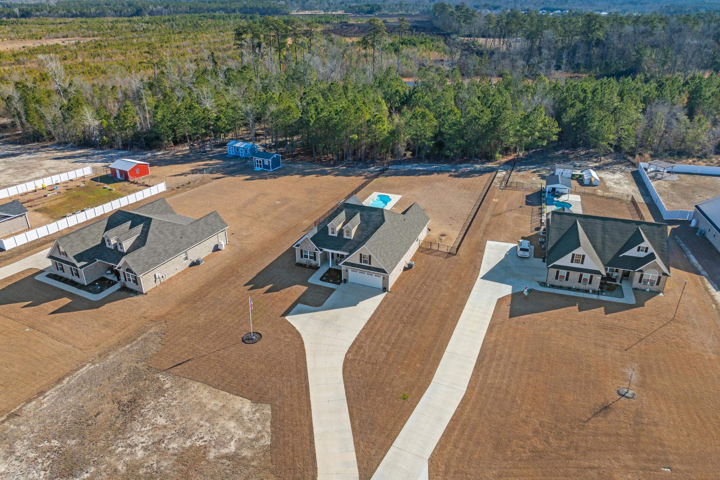 Welcome home to 1061 Busy Corner Rd! This beautiful custom brick residence sits on a spacious 1.2-acre lot and offers the perfect blend of elegant design and functional living. Boasting 4 generous bedrooms and 3 full baths, the floor plan features a large primary suite with luxurious bath and ample closet space. The heart of the home is the open living area, ideal for entertaining, with seamless flow between the living room, dining space, and kitchen. Step outside to enjoy your private outdoor oasis — a salt water pool and expansive screened-in patio create the perfect setting for relaxation and gatherings. The fenced-in backyard offers both security and serenity. This exceptional property is a rare find — combining quality craftsmanship, thoughtful layout, and expansive outdoor living and with quick and easy access to highway 22, just a 30 minute ride to the beach! Don’t miss your chance to call this remarkable home yours!