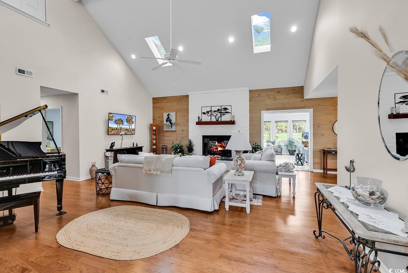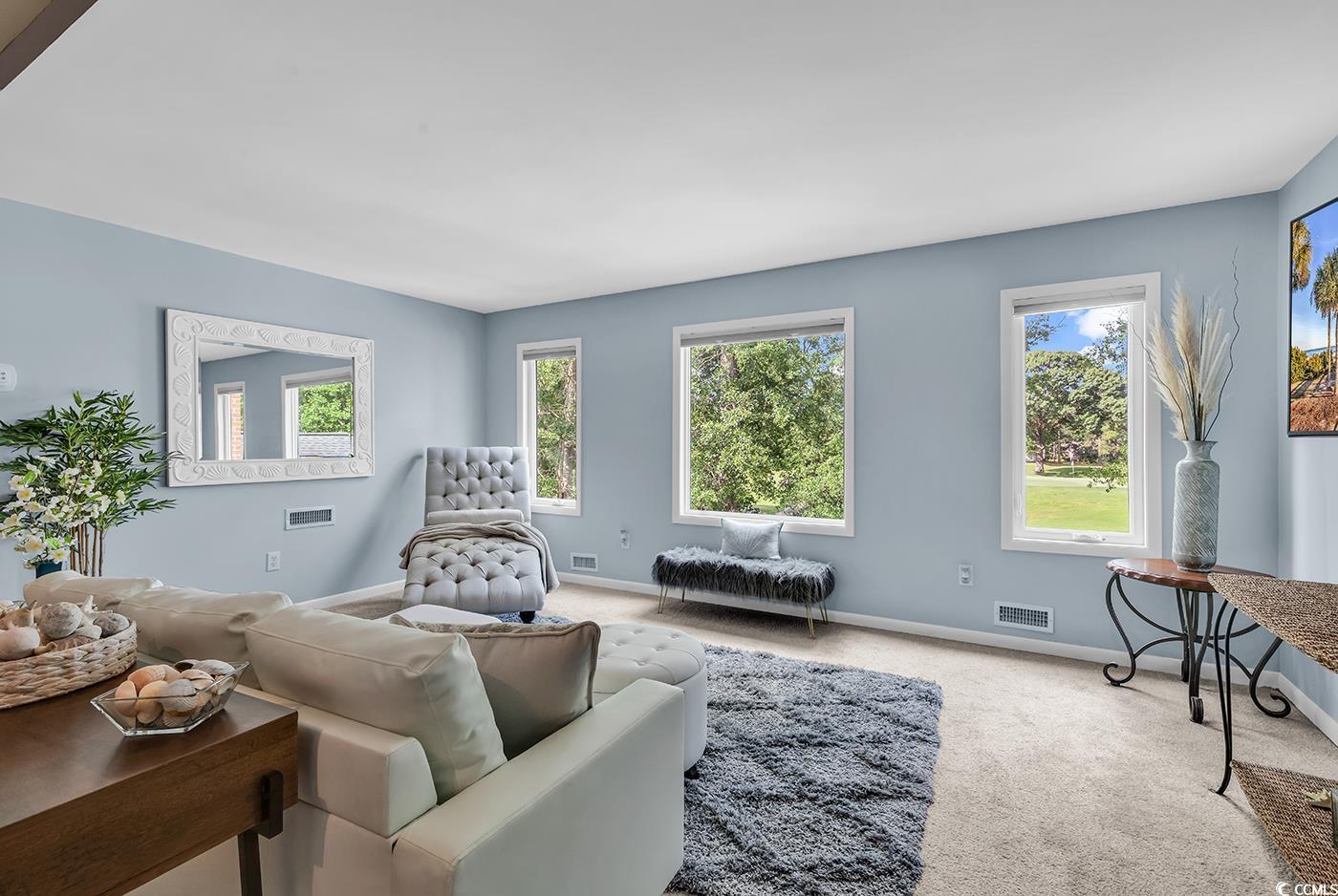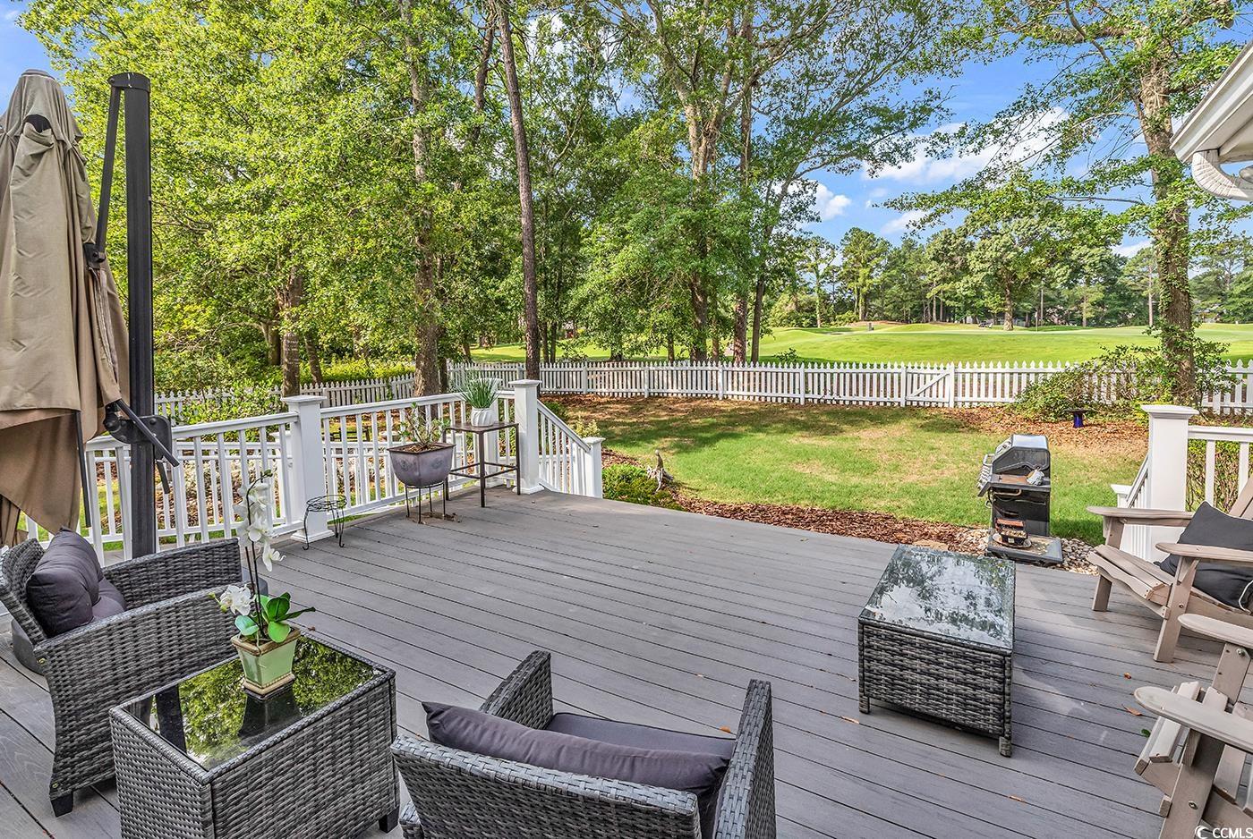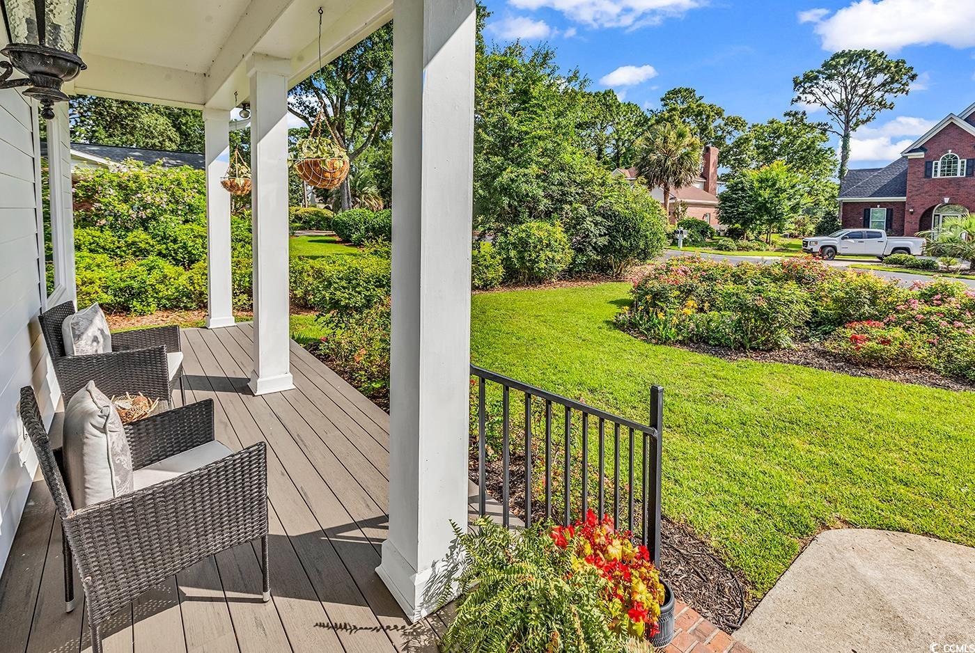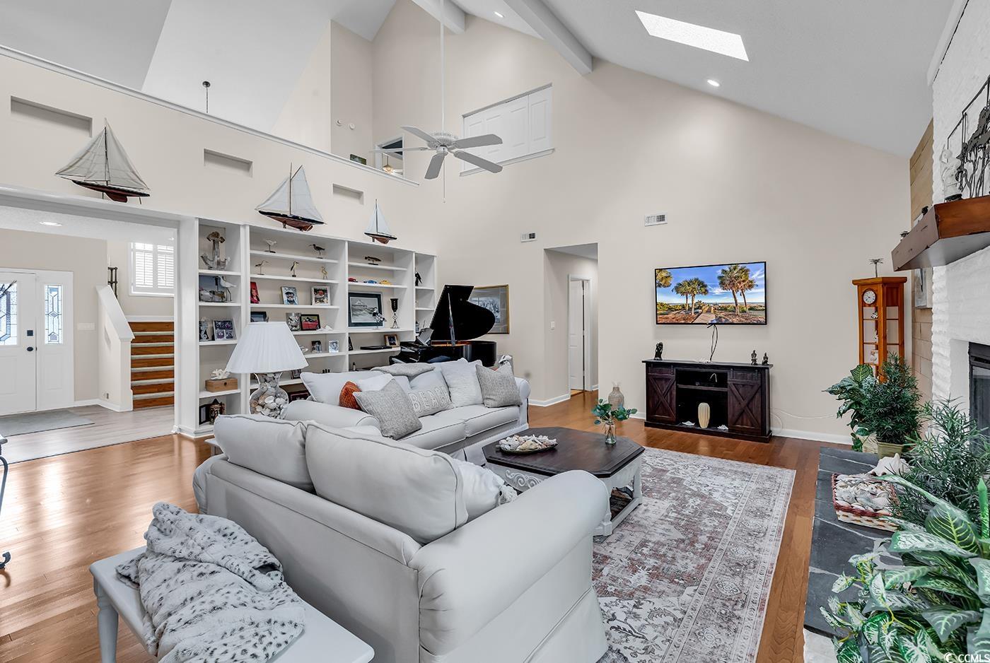 Beautiful views and spacious living in this fully furnished 4 bedroom and 3.5 bath golf course paradise in the exclusive Prestwick community. Enter through the foyer to a wide open living room with high cathedral celings, built-in shelving, and fireplace. Lots of room in the kitchen with new appliances, granite, breakfast area, and plenty of cabinet space. Breathtaking Carolina room with high ceilings and large windows offering lots of light and gorgeous views of the 11th green. Bedroom wing on first floor has 2 bedrooms and a bath. A half bath and laundry room complete the downstairs area. Upstairs is a large master bedroom with walk-in closet, master bath, vaulted ceilings and sitting area overlooking the backyard and golf course. Additional spacious second bedroom upstairs with bathroom attached. Large deck off of the back of the house with a ramp overlooks a large fenced backyard with koi pond and lots of green space. Many new updates throughout the home and completely turnkey, right down to the baby grand piano. Prestwick is a gated community with 24 hour security, swimming pools, tennis and pickleball courts, clubhouse, and home to the famous Prestwick Country and Tennis Clubs. Peaceful serene neighborhood, and yet still just a few miles to the beach and the Myrtle Beach State Park, with quick access to shopping, dining, airport, nightlife, local attractions and much more. Book your showing today!