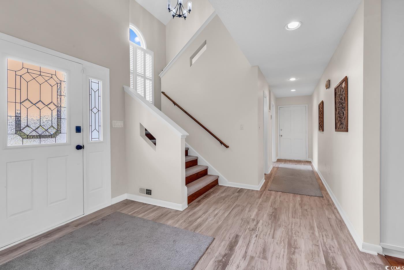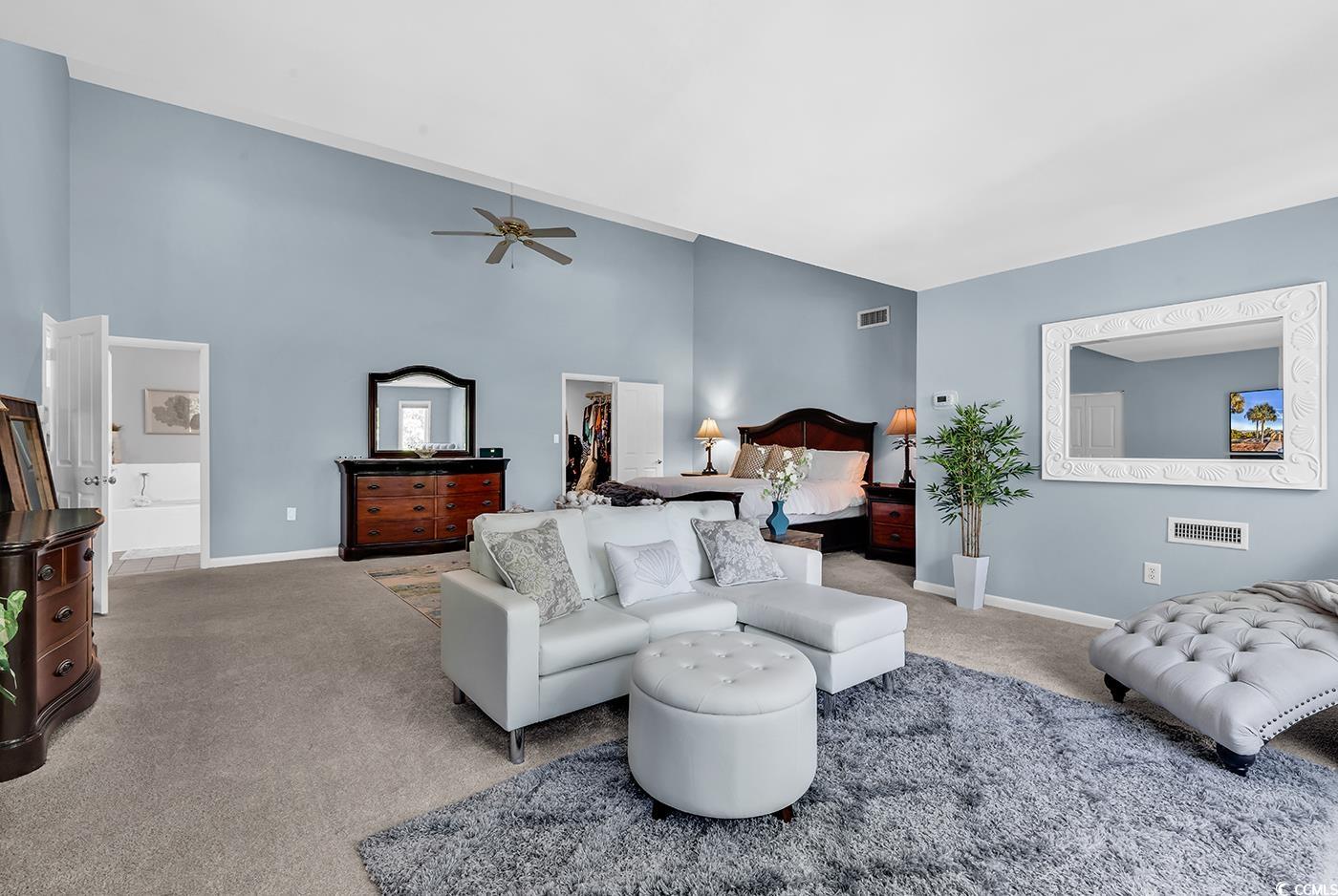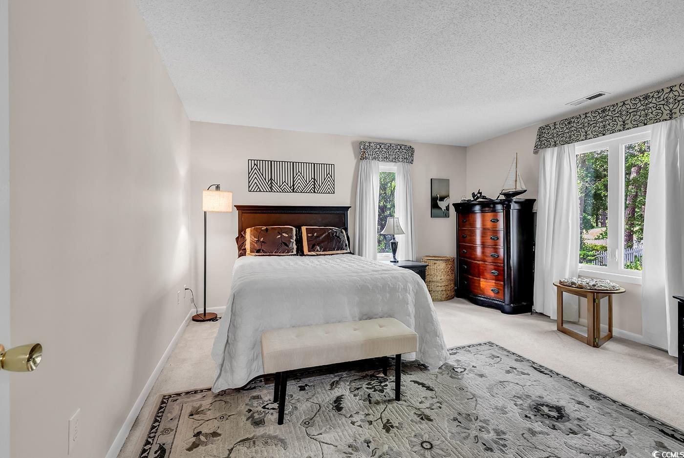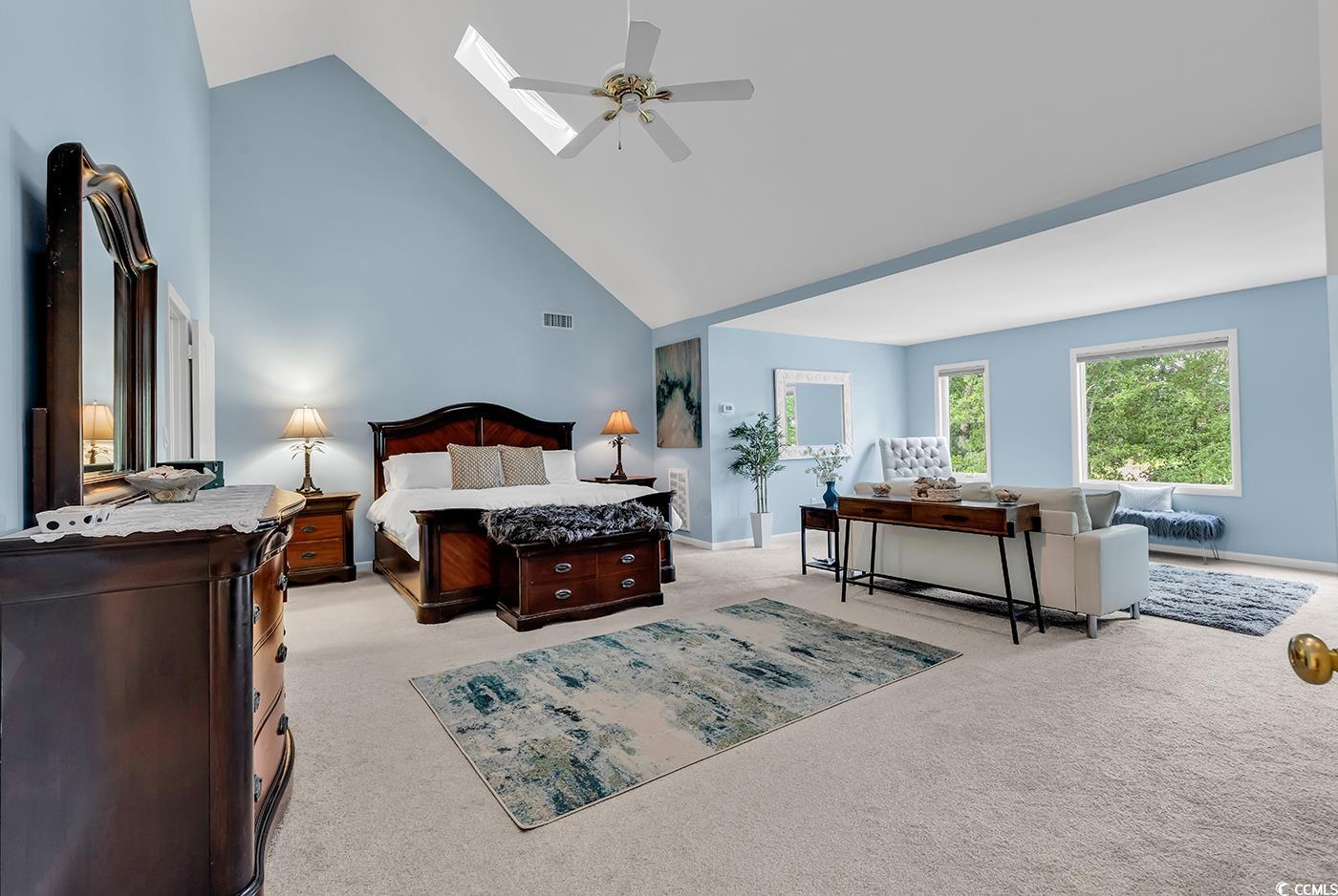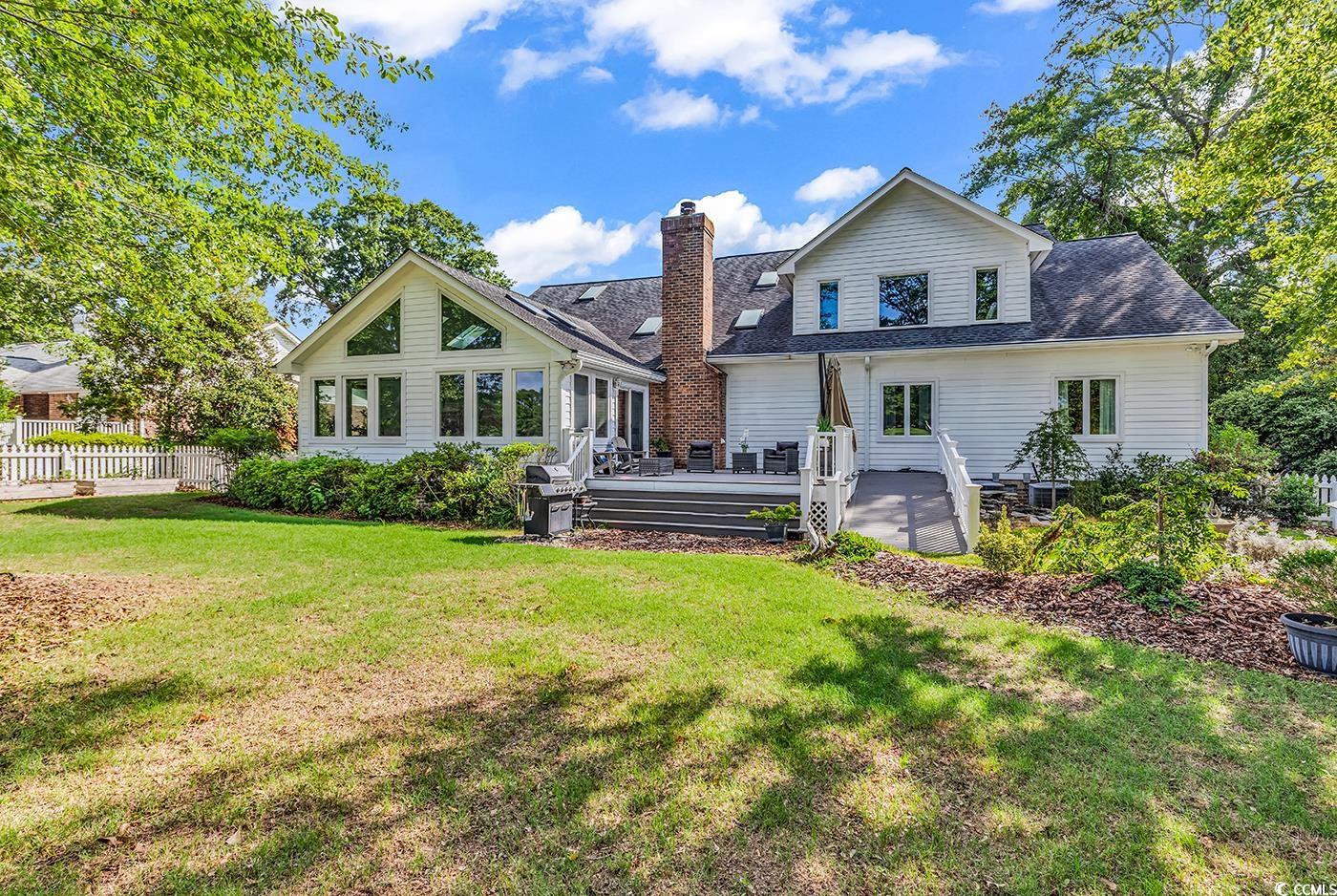 Beautiful views and spacious living in this fully furnished 4 bedroom and 3.5 bath golf course paradise in the exclusive Prestwick community. Enter through the foyer to a wide open living room with high cathedral celings, built-in shelving, and fireplace. Lots of room in the kitchen with new appliances, granite, breakfast area, and plenty of cabinet space. Breathtaking Carolina room with high ceilings and large windows offering lots of light and gorgeous views of the 11th green. Bedroom wing on first floor has 2 bedrooms and a bath. A half bath and laundry room complete the downstairs area. Upstairs is a large master bedroom with walk-in closet, master bath, vaulted ceilings and sitting area overlooking the backyard and golf course. Additional spacious second bedroom upstairs with bathroom attached. Large deck off of the back of the house with a ramp overlooks a large fenced backyard with koi pond and lots of green space. Many new updates throughout the home and completely turnkey, right down to the baby grand piano. Prestwick is a gated community with 24 hour security, swimming pools, tennis and pickleball courts, clubhouse, and home to the famous Prestwick Country and Tennis Clubs. Peaceful serene neighborhood, and yet still just a few miles to the beach and the Myrtle Beach State Park, with quick access to shopping, dining, airport, nightlife, local attractions and much more. Book your showing today!