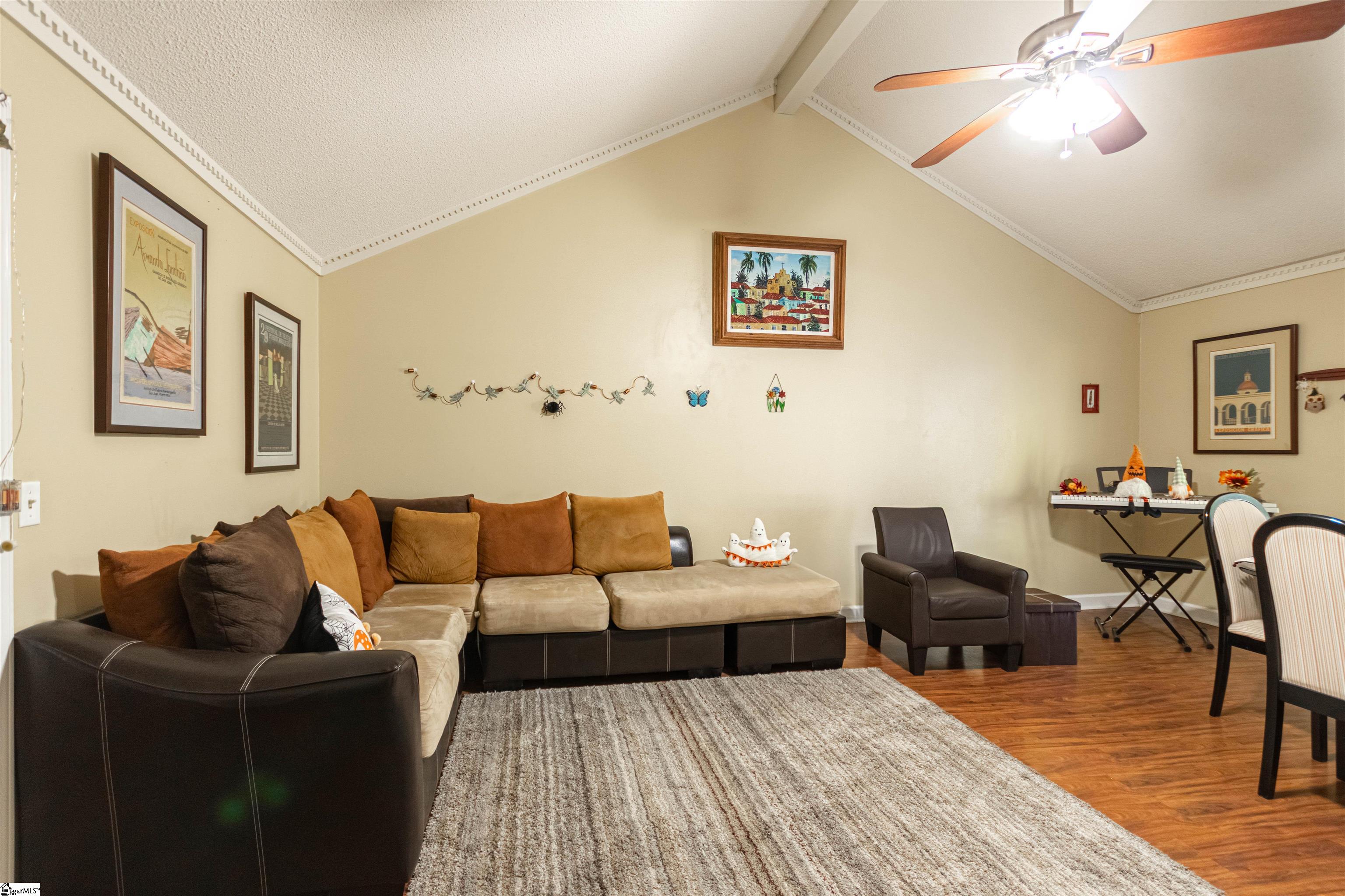 Welcome home to 107 Boulder Creek Way! Tucked away on a quiet cul-de-sac just off Wade Hampton Blvd, this charming 3 bedroom, 2 bath home offers convenience and comfort in the heart of Greer. Enjoy relaxing on the rocking chair front porch before stepping inside to a spacious, open-concept living and dining area with cathedral ceilings. The eat-in kitchen features an island and closet laundry for added functionality. The primary suite includes a walk-in closet and a full bath with tub/shower. Two additional bedrooms share a hall bath, perfect for family or guests. A rear deck provides space for outdoor entertaining, and the detached garage/workshop offers extra storage or hobby space. Ideally located near shopping, dining, and everyday conveniences, with easy access to both Greenville and Spartanburg.