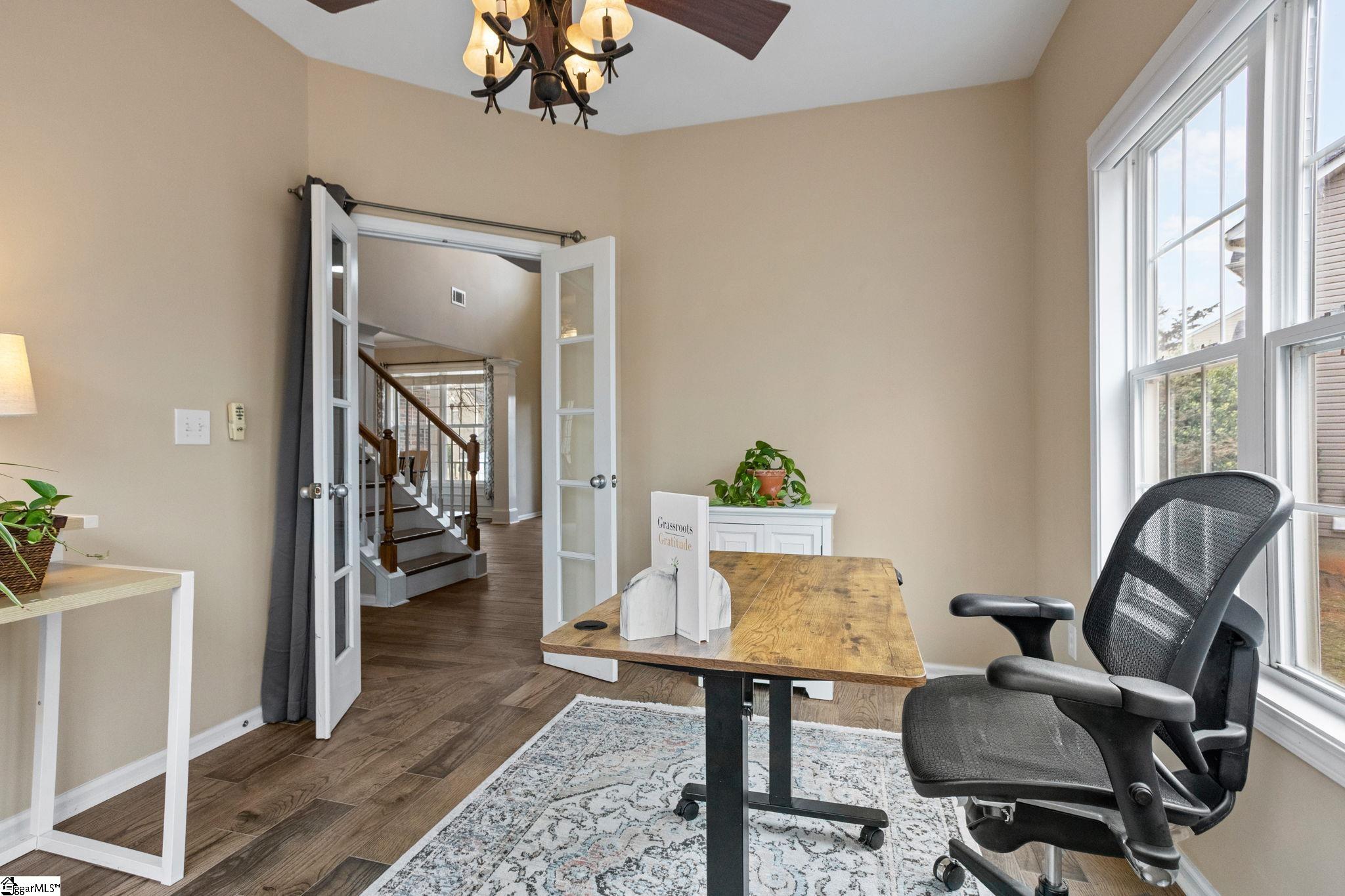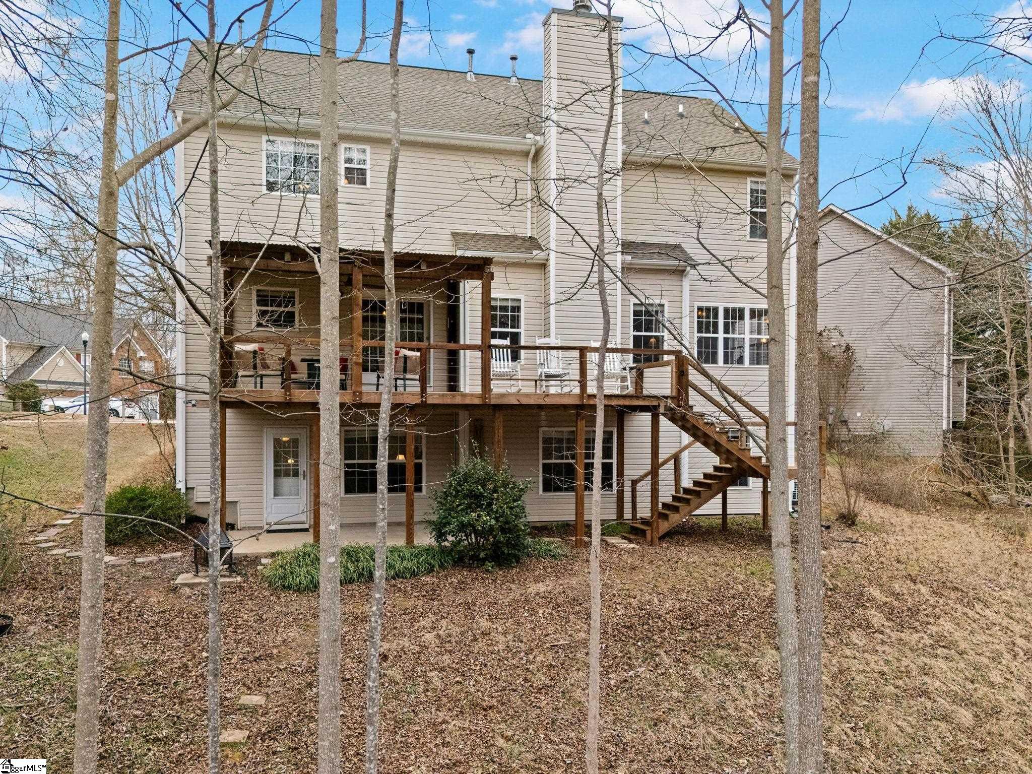 Nestled on a quiet cul-de-sac in the desirable Morning Mist community, this spacious 5-bedroom, 3.5-bath traditional home offers over 3,400 square feet of beautifully designed living space with a finished walkout basement and thoughtful upgrades throughout. Step inside to a dramatic two-story foyer and an inviting open floor plan featuring hardwood floors, smooth and vaulted ceilings, and abundant natural light. The main living area is anchored by a warm gas log fireplace, creating the perfect setting for everyday living and entertaining. The chef’s kitchen features granite countertops, built-in microwave, gas oven, pantry closet, and generous prep space, flowing seamlessly into both the breakfast room and formal dining area. Upstairs, the expansive primary suite serves as a private retreat with a garden tub, separate shower, double vanity, and walk-in closet. Four additional bedrooms provide ample space for family, guests, or flexible use. The finished walkout basement offers incredible versatility with second living quarters, a bonus/rec room, office or study space, and a sunroom — ideal for multi-generational living, work-from-home needs, or entertaining. Outside, enjoy multiple outdoor living spaces, including a front porch, deck, and patio, all overlooking a peaceful setting with trees and a nearby creek. Located in the Morning Mist neighborhood, residents enjoy access to resort-style amenities including a clubhouse, pool, playground, dog park, walking paths, neighborhood lake/pond, and landscaped common areas. Conveniently located in Greenville County, this home is a rare combination of space, flexibility, and community lifestyle all in one exceptional home.