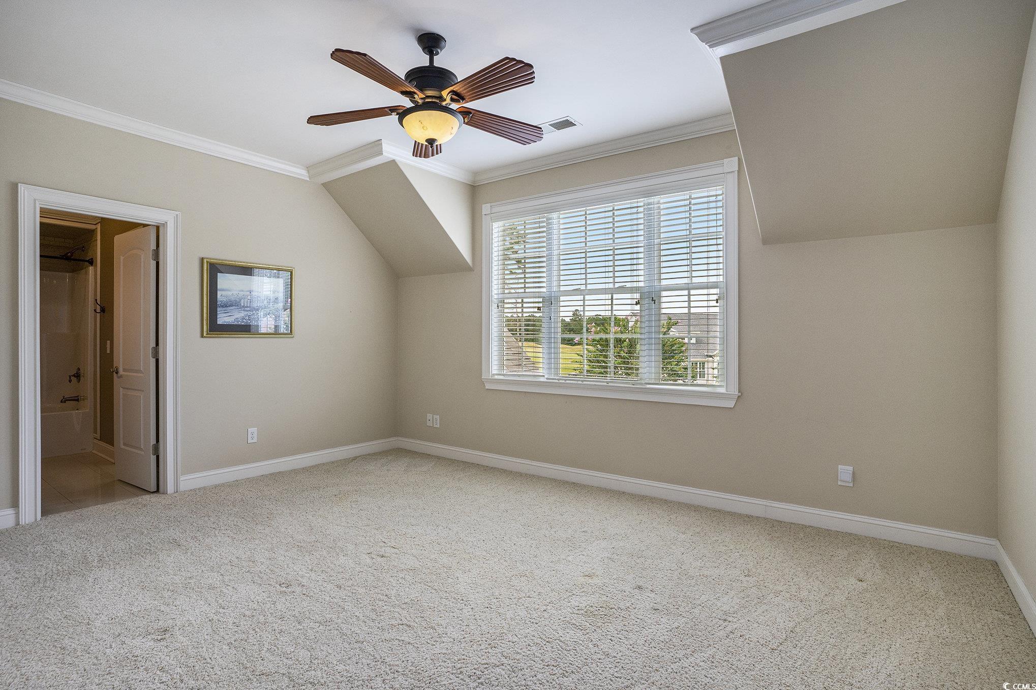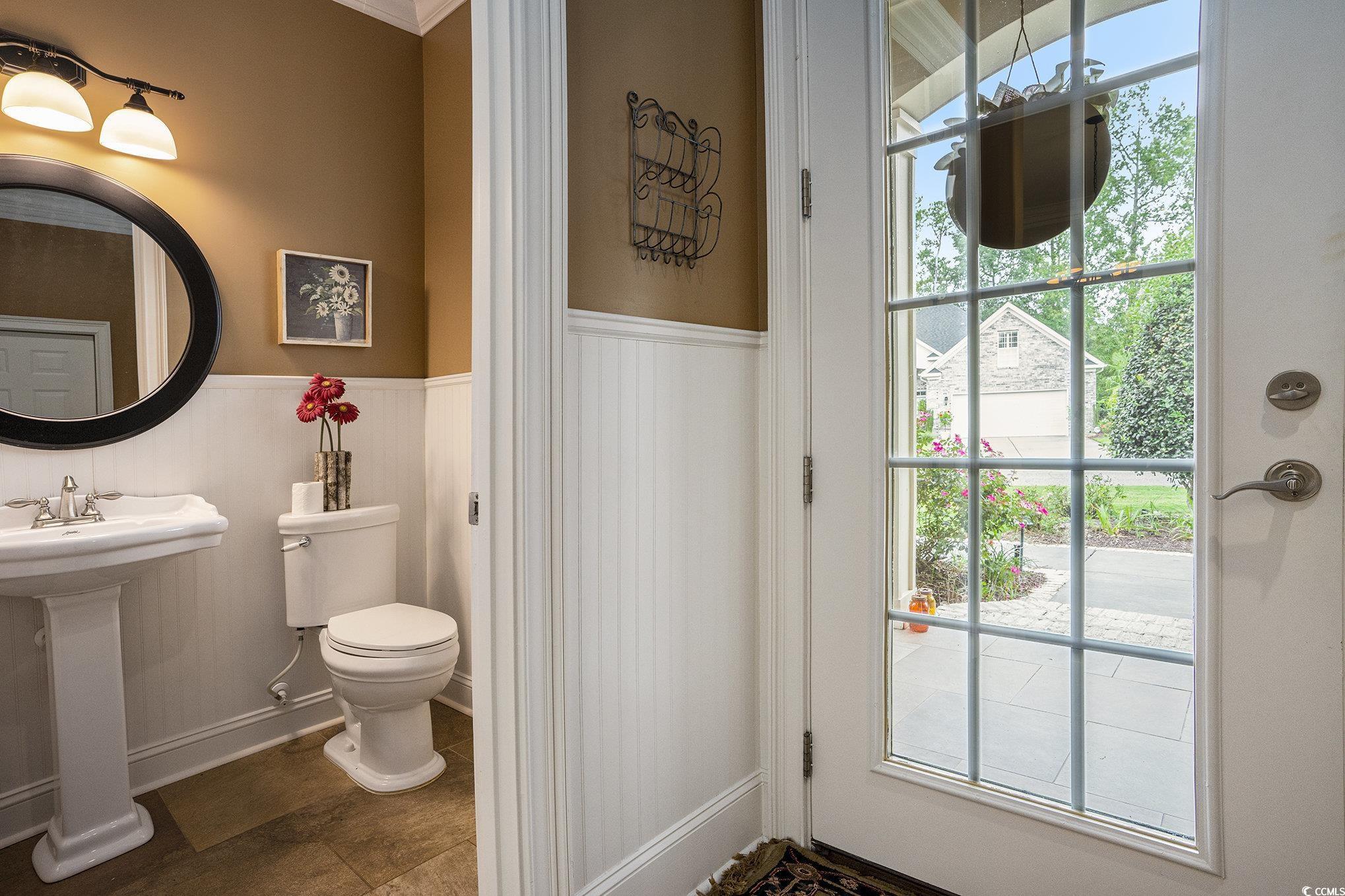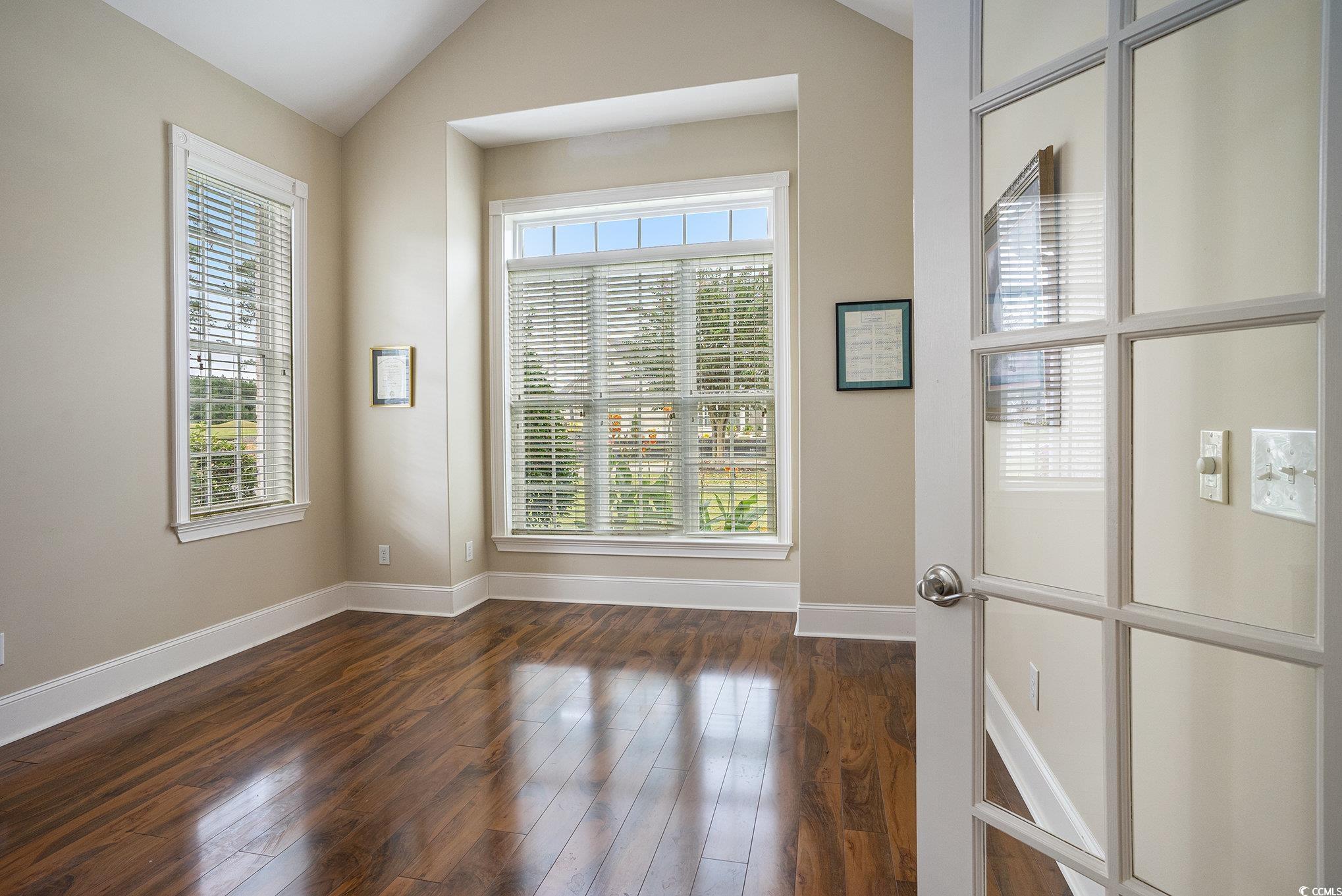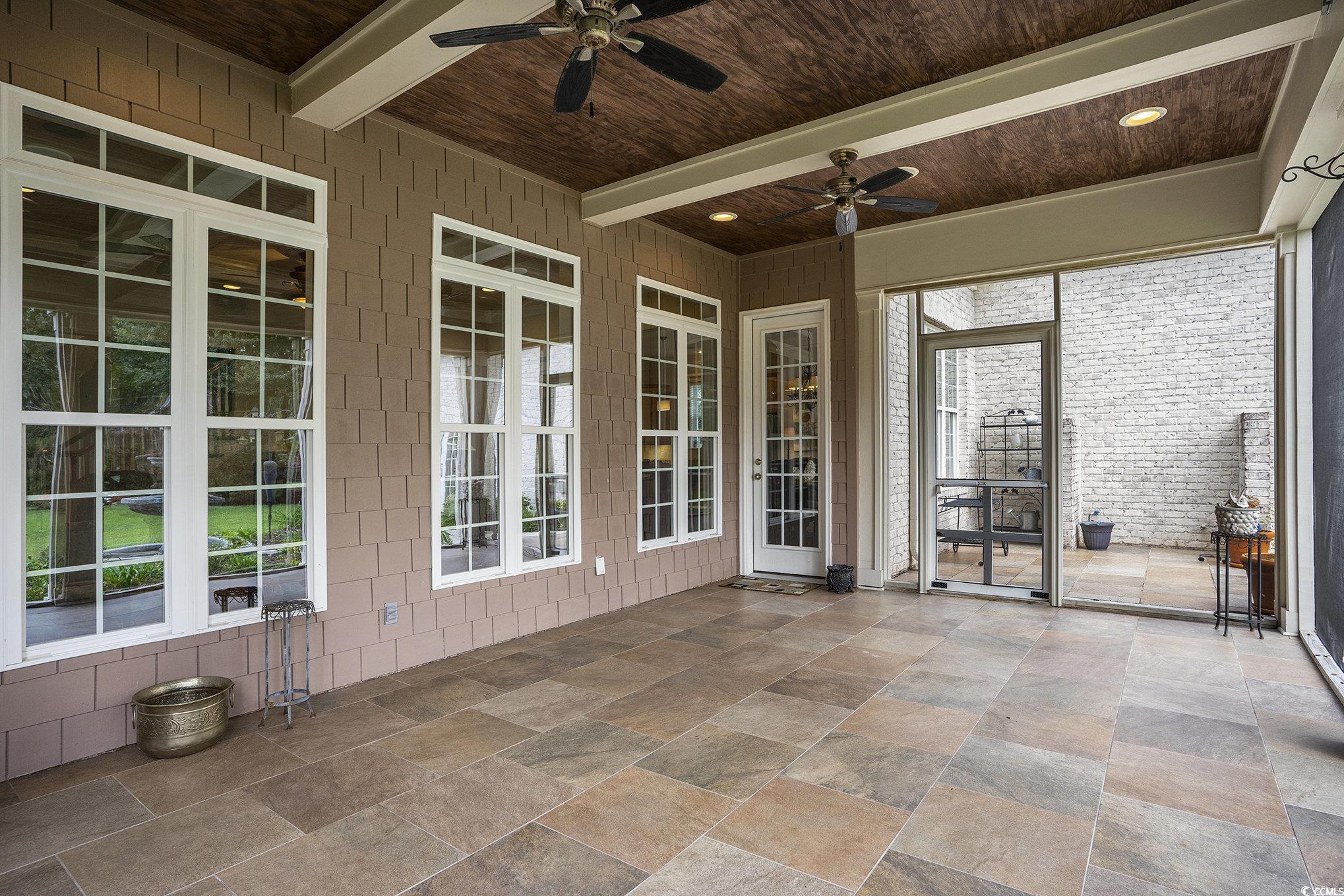 This custom-built 4-bedroom, 4.5-bathroom home sits on a corner lot in the desirable Long Bay golf community. It features a 2+ car garage with golf cart storage and a finished living space above. Inside, you'll find coffered and tray ceilings, hardwood floors, and high-end custom finishes throughout. The gourmet kitchen includes an island and handcrafted cabinetry, complemented by a formal dining room, home office, and a main-level primary suite with dual vanities and his-and-hers walk-in closets. Enjoy outdoor living with a charming front porch, two spacious driveways, a large screened-in patio, and a beautifully landscaped backyard with a fountain. This property is ideal as a primary residence, vacation home, or investment opportunity. Located just 20 minutes from the beach, Long Bay is a quiet, established golf community with low HOA fees, a clubhouse, and a community pool. Conveniently accessible via Highways 9 and 31, it's close to North Myrtle Beach and all the attractions of the Grand Strand.