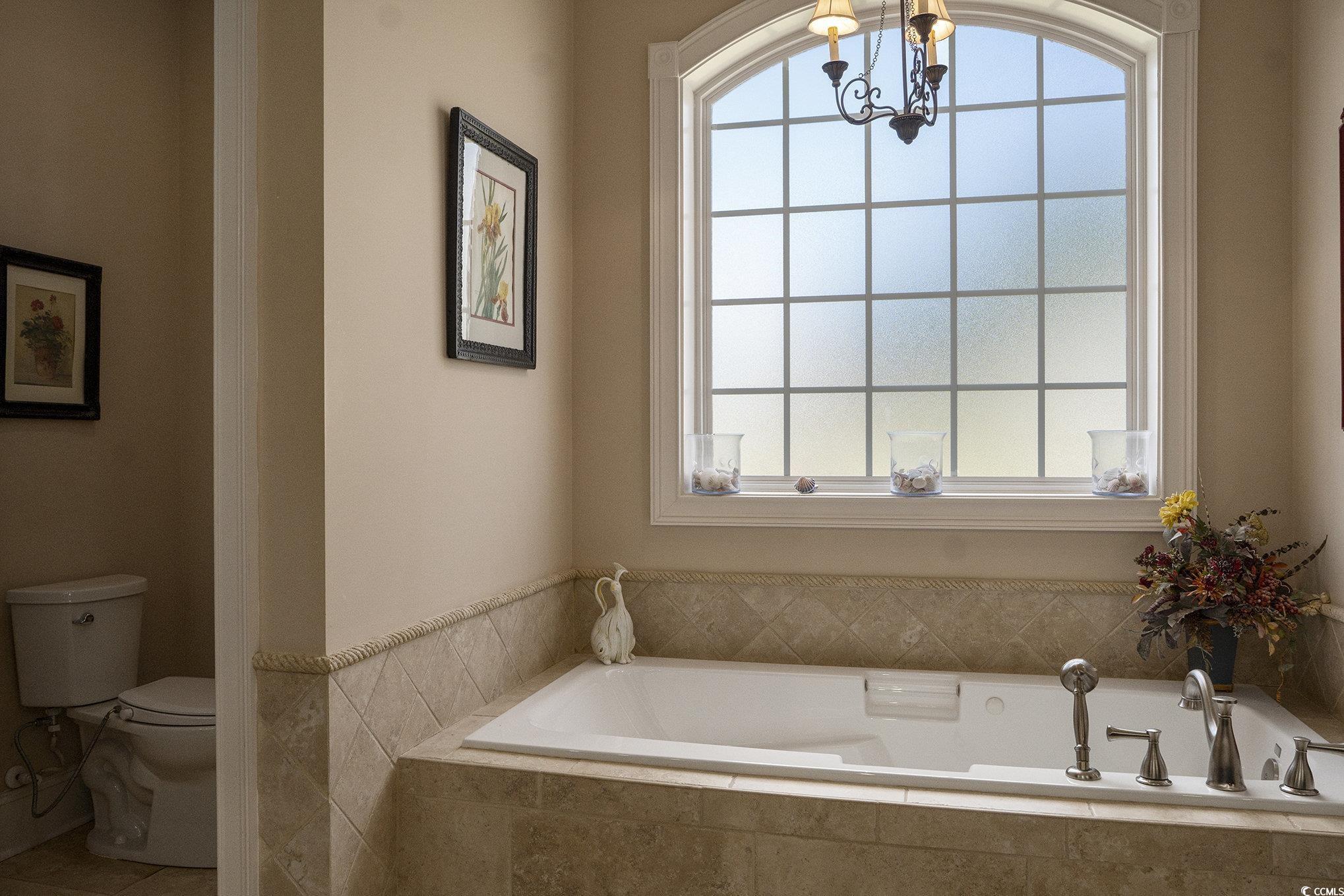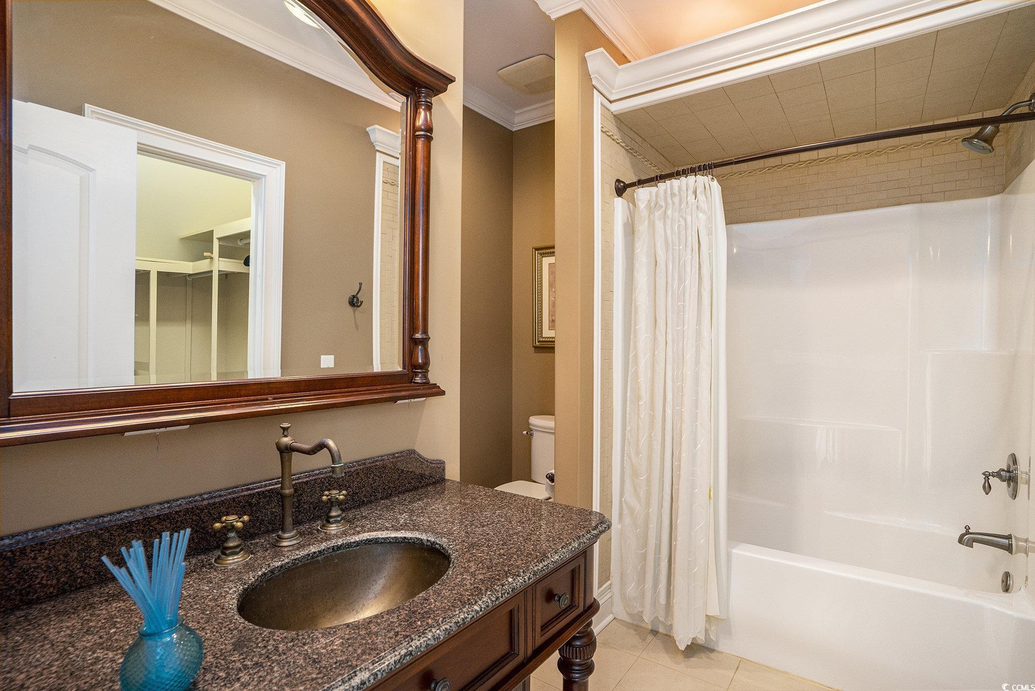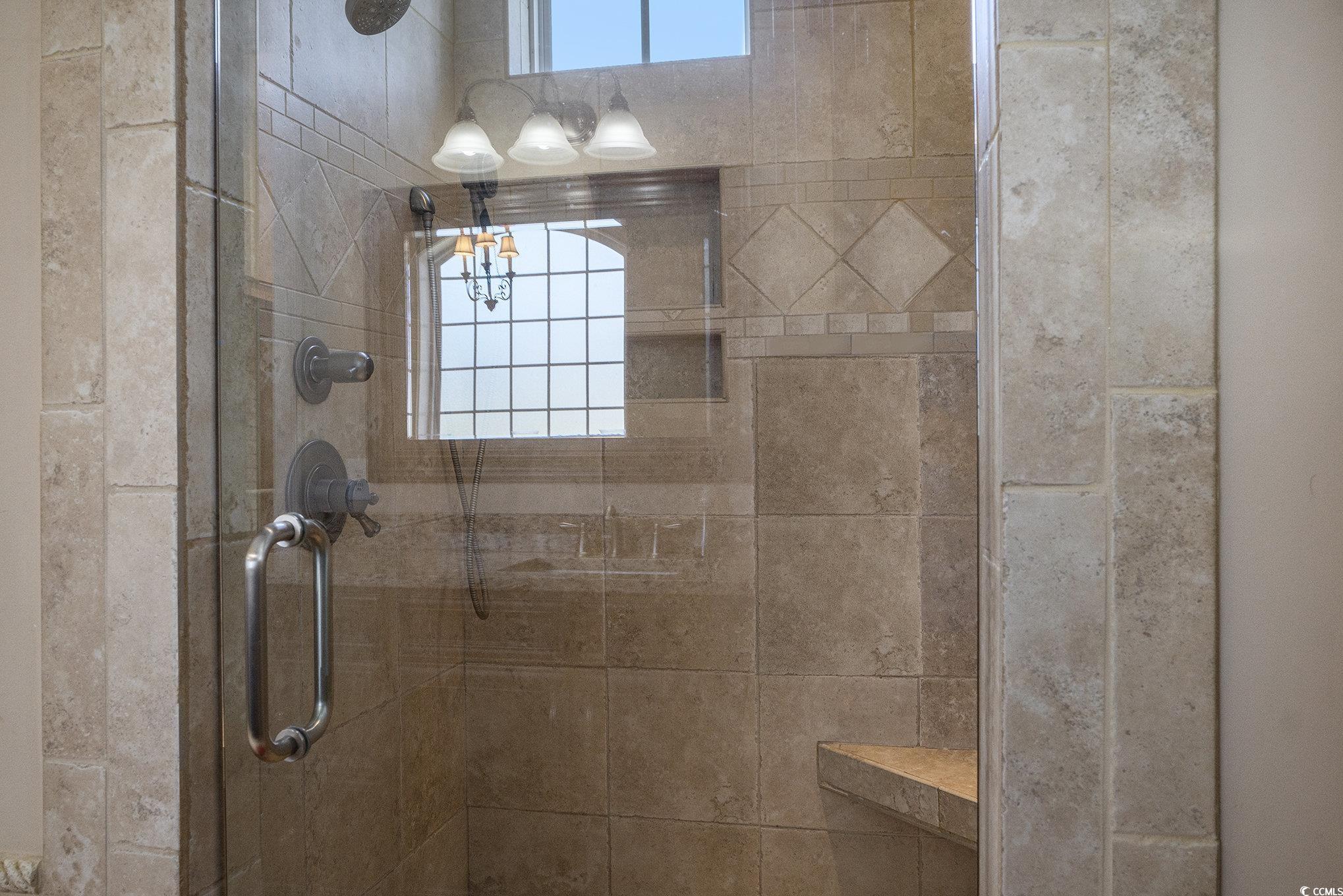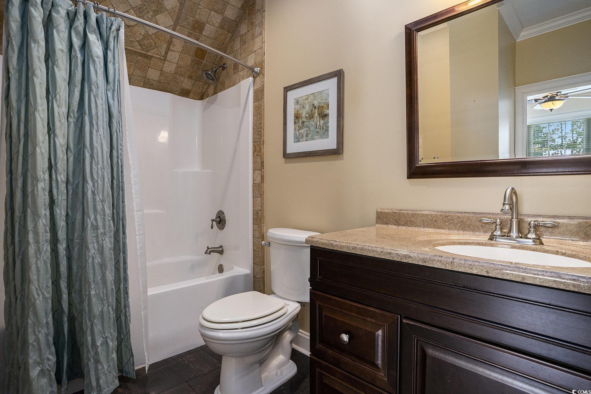 This custom-built 4-bedroom, 4.5-bathroom home sits on a corner lot in the desirable Long Bay golf community. It features a 2+ car garage with golf cart storage and a finished living space above. Inside, you'll find coffered and tray ceilings, hardwood floors, and high-end custom finishes throughout. The gourmet kitchen includes an island and handcrafted cabinetry, complemented by a formal dining room, home office, and a main-level primary suite with dual vanities and his-and-hers walk-in closets. Enjoy outdoor living with a charming front porch, two spacious driveways, a large screened-in patio, and a beautifully landscaped backyard with a fountain. This property is ideal as a primary residence, vacation home, or investment opportunity. Located just 20 minutes from the beach, Long Bay is a quiet, established golf community with low HOA fees, a clubhouse, and a community pool. Conveniently accessible via Highways 9 and 31, it's close to North Myrtle Beach and all the attractions of the Grand Strand.