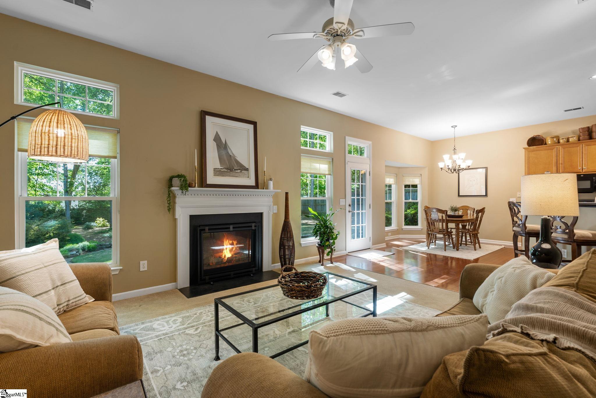 Why go to the park when you can have a park in your own backyard?! Welcome to 107 Moncton Place in the desirable Windsor Forest community in Simpsonville. This meticulously maintained brick one level+bonus home sits on a gorgeous lot with an incredibly designed backyard. Inside, you’ll find a beautiful living area with 10 ft ceilings, a wall of windows crowned with additional transom lighting, gas vented fireplace, and hardwood floors. There’s a large formal dining area with a lovely chandelier, chair rail, and crown molding, and a cozy breakfast nook that overlooks the yard through a canted bay window. The kitchen features granite countertops, maple cabinetry, stainless steel appliances (2025), and stool seating. The kitchen sits with an open view of the surrounding living areas, perfect for hosting, or quiet weekends together at home. There are three bedrooms on the main floor. The spacious primary suite is tucked away and feels like the respite it should be, with a wonderful view of the backyard, garden tub and shower, and sizable walk-in closet. The other two bedrooms have well apportioned closet spaces, and are conveniently located beside the full hall bathroom. Upstairs is a fantastic bonus that would function well as a bedroom, guest room, media space, or take advantage of the built-in recessed desk for your office. The attic space is extensive, with large amounts of shelving and storage, that continues over the garage, with easy access to the tankless gas water heater and furnace. The laundry room has upper cabinets and comes furnished with the washer and dryer. If you aren’t swooning already, you will be when you step onto the patio. The backyard is a stunning retreat, brimming with native plants, boulders, hard-scapes, and blooms. It really is a gardener’s dream and will make those without a ‘green thumb’ reconsider their position on the matter. Fully-fenced, thoughtfully designed, and matured to perfection, this outdoor space has plenty of lawn for playing and a commercial grade swing set that will delight the child in all of us. There’s plenty of room for parking on the concrete driveway (2018) or in the 2 car garage (with workbench!) Seller has made consistent upgrades from windows to HVAC, making this a wonderful opportunity to live with: award-winning schools, convenience to downtown Simpsonville and Five Forks amenities, neighborhood pool, and community recreation trails. Life is for living, and 107 Moncton is an invitation to live well!