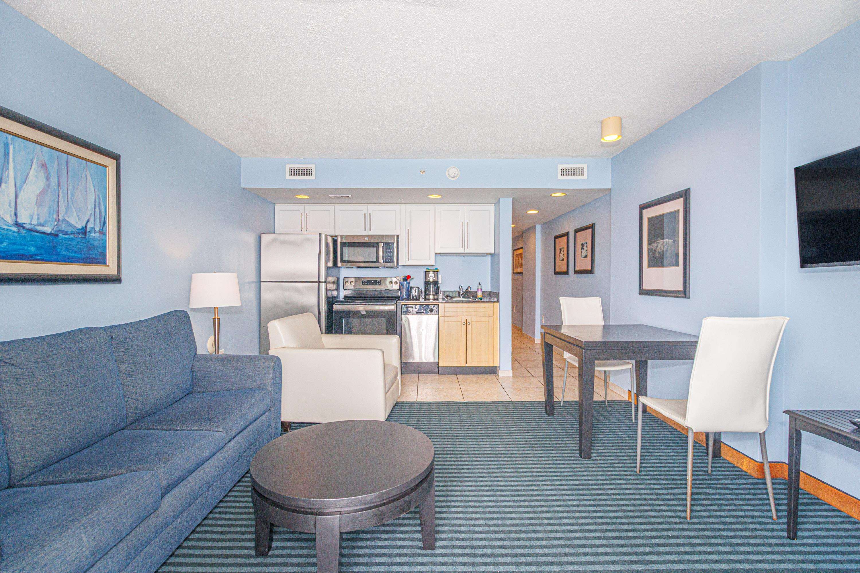 Highly desirable true, direct oceanfront 1BR in the modern Oceans One Resort. This popular layout features a private bedroom, full kitchen, and an open living area that opens to a spacious oceanfront balcony with stunning views. Interior highlights include granite countertops in both the kitchen and bath, stainless steel appliances, a tiled shower, and—rare for a 1BR—a private washer and dryer. Oceans One is a beautifully designed oceanfront resort with sleek glass accents, interior corridors, and an excellent mix of indoor and outdoor pools and water amenities. Perfectly located just steps from the 2nd Ave Pier and the start of the Myrtle Beach Boardwalk. An excellent option as a primary residence, second home, or vacation rental—ready to capitalize on strong spring and summer income.