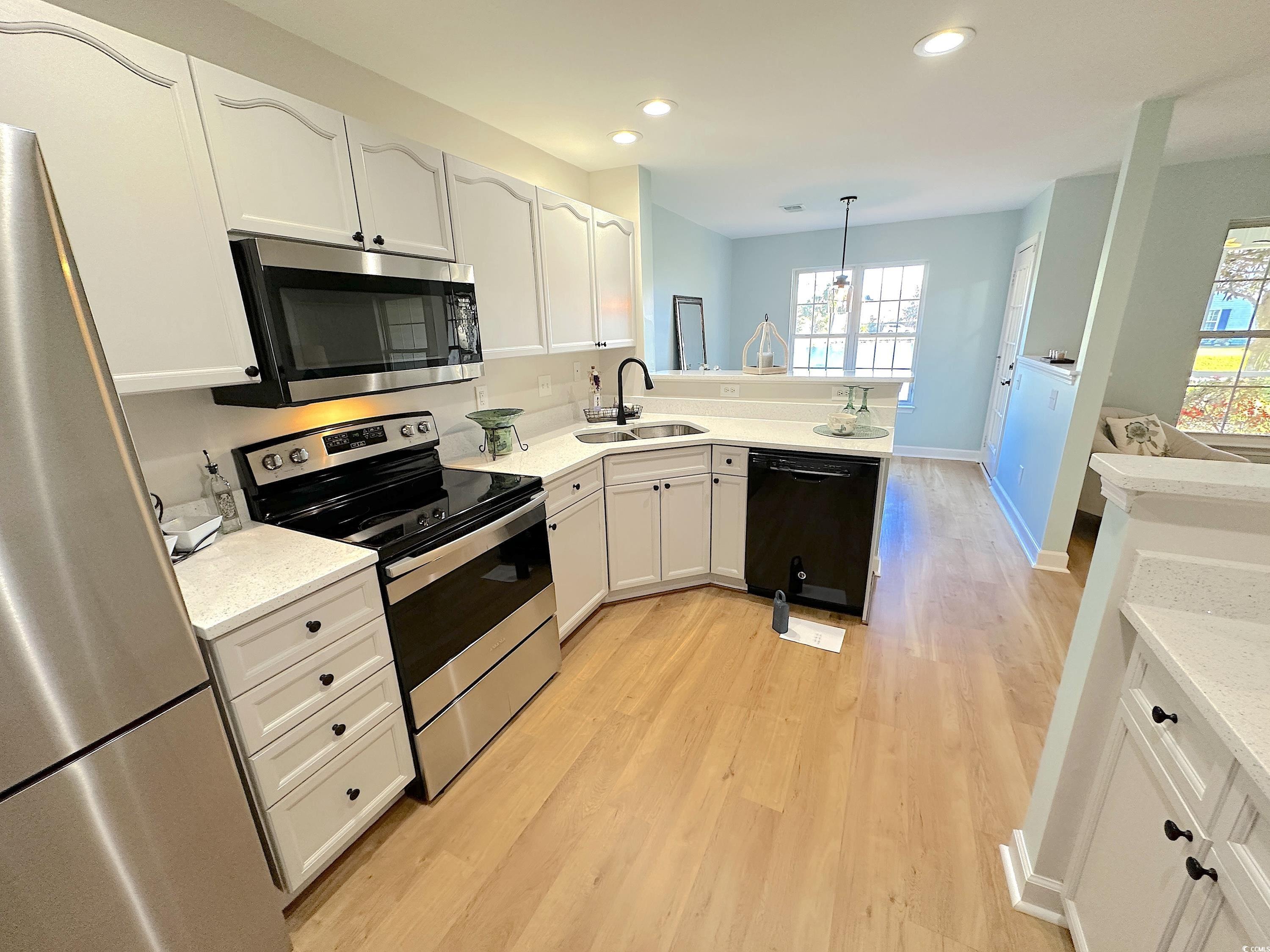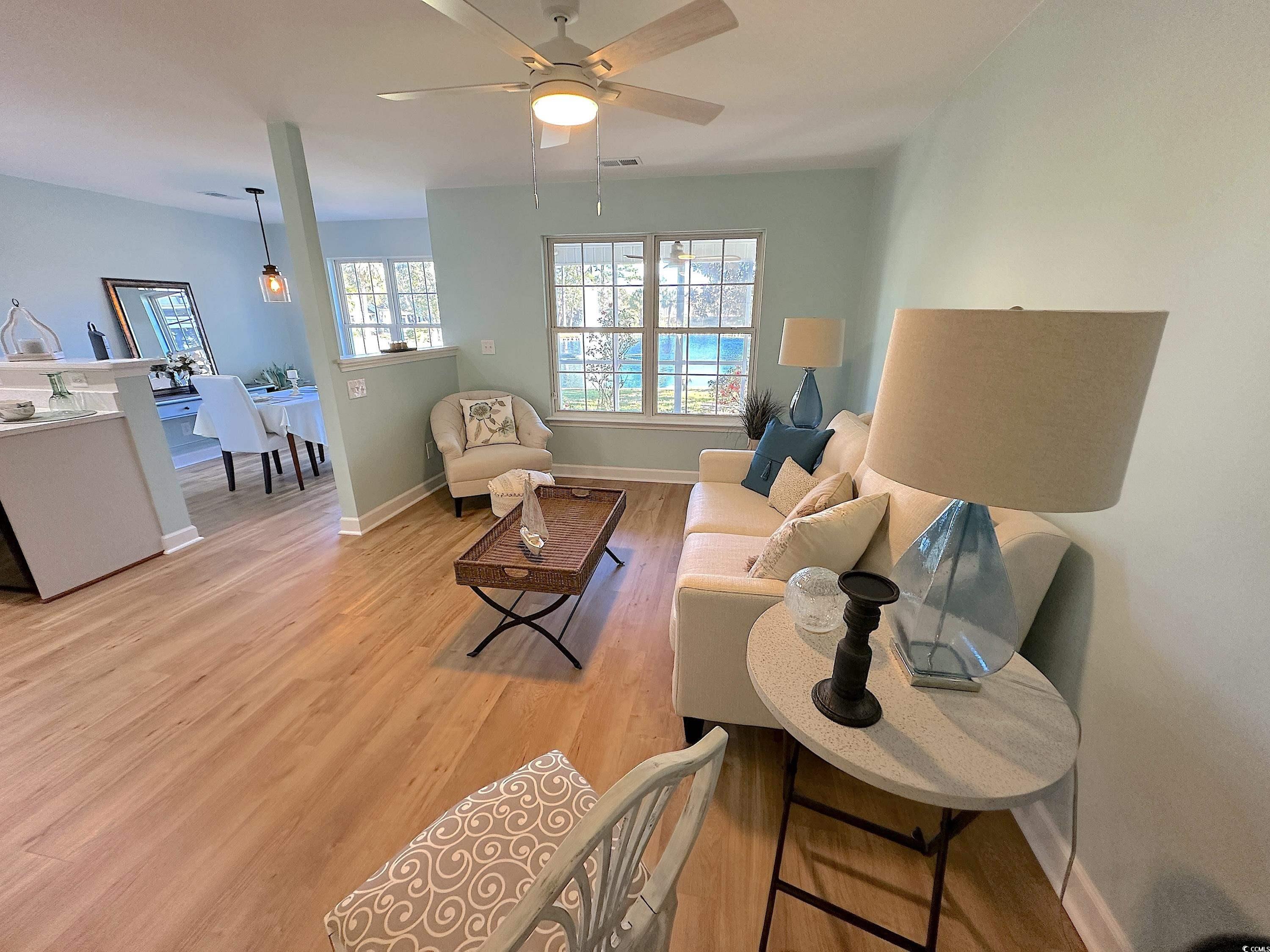 Just reduced and ask your agent about a new a new seller closing credit. Your new move-in ready home is here, in the heart of Pawleys Island! Act quickly to schedule your tour. This home won’t last at this price point! This beautifully upgraded 2BR, 2 ½ Bath Townhome is your next perfect home. Each bedroom has its own full ensuite bath! Tour the home in person to see the exquisite detail and meticulous finishes that photography doesn’t capture. Listen to the peaceful quiet of the interior of this home, then step outside to enjoy the tranquility of the fountained pond and well-maintained tropical landscaping surrounding your covered screened porch. The 1st floor showcases an open floorplan layout with upgraded flooring, trim, fresh paint, and lovely light fixtures in the living, dining, and kitchen areas. Enjoy natural light and fountain views from the large windows! The kitchen’s NEW features include a refrigerator, lovely quartz countertops, lighting, and upgraded cabinets with new hardware. The staircase to the 2nd floor features a large storage space underneath. As you progress upstairs, enjoy the light, freshly painted walls and railings, as well as new lighting and new plush carpeting that extends through to two large ensuite bedrooms. Your NEW washer & dryer are conveniently located upstairs and housed within a large closet. Find excellent storage space in the light-filled bedrooms with large windows, ceiling fans, fresh paint, and luxurious carpet. In each full bath, enjoy the updated cabinetry and NEW flooring, lighting, quartz vanity tops, and beautiful faucets. Back outside, a built-in garage and ample additional parking directly across from the garage offer the high-convenience features of this home and community! The paved walking paths and pool are steps away from your door. Fresh Market and high-end shopping, and restaurants are a 3-minute walk from the back door, and the beach, just a 3-min. drive! Perfect for a Permanent Residence or a Second Home. ASK your agent for the list of ALL improvements made in this lovely 1600 sf home and schedule your visit before it’s gone!