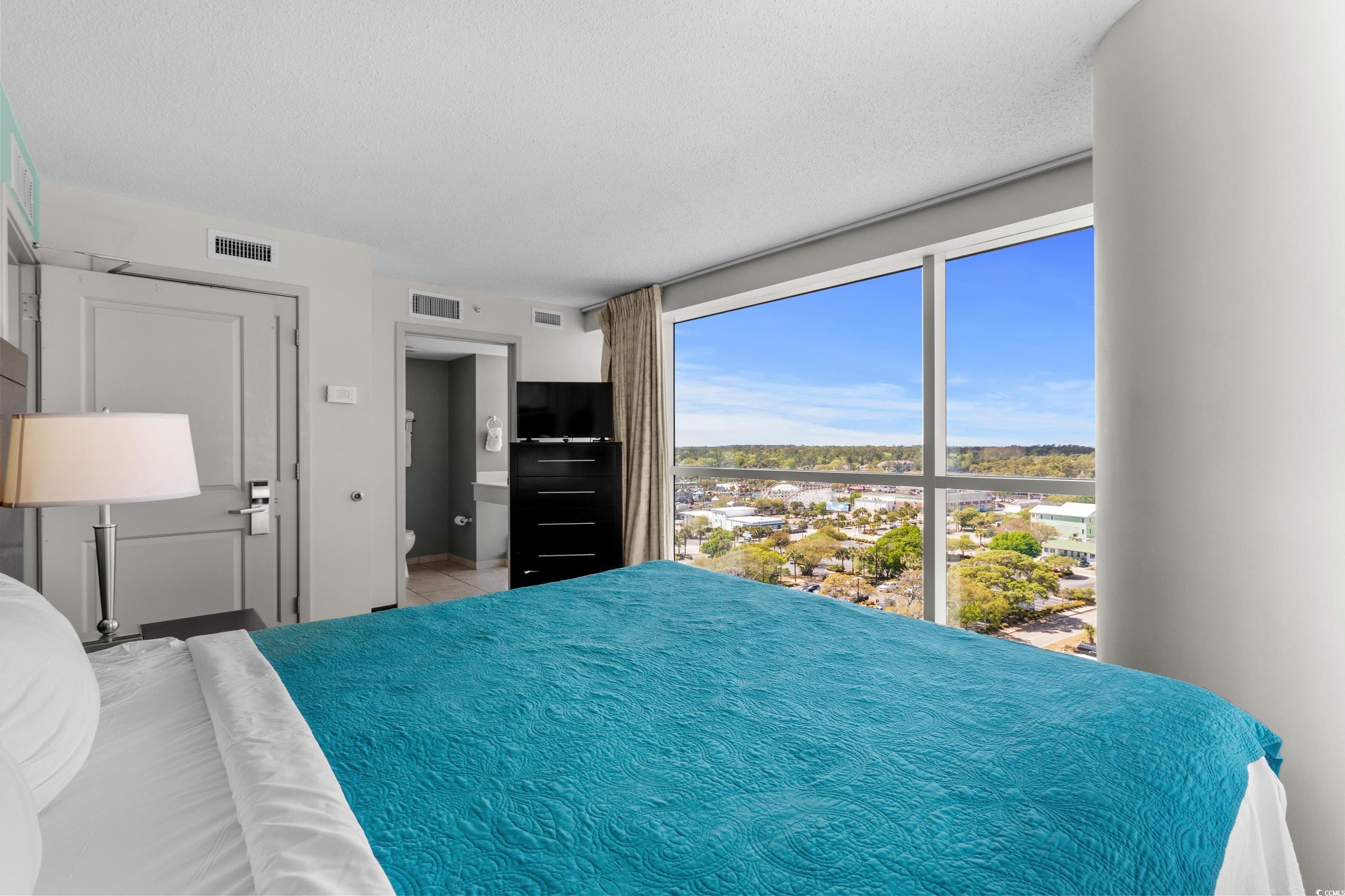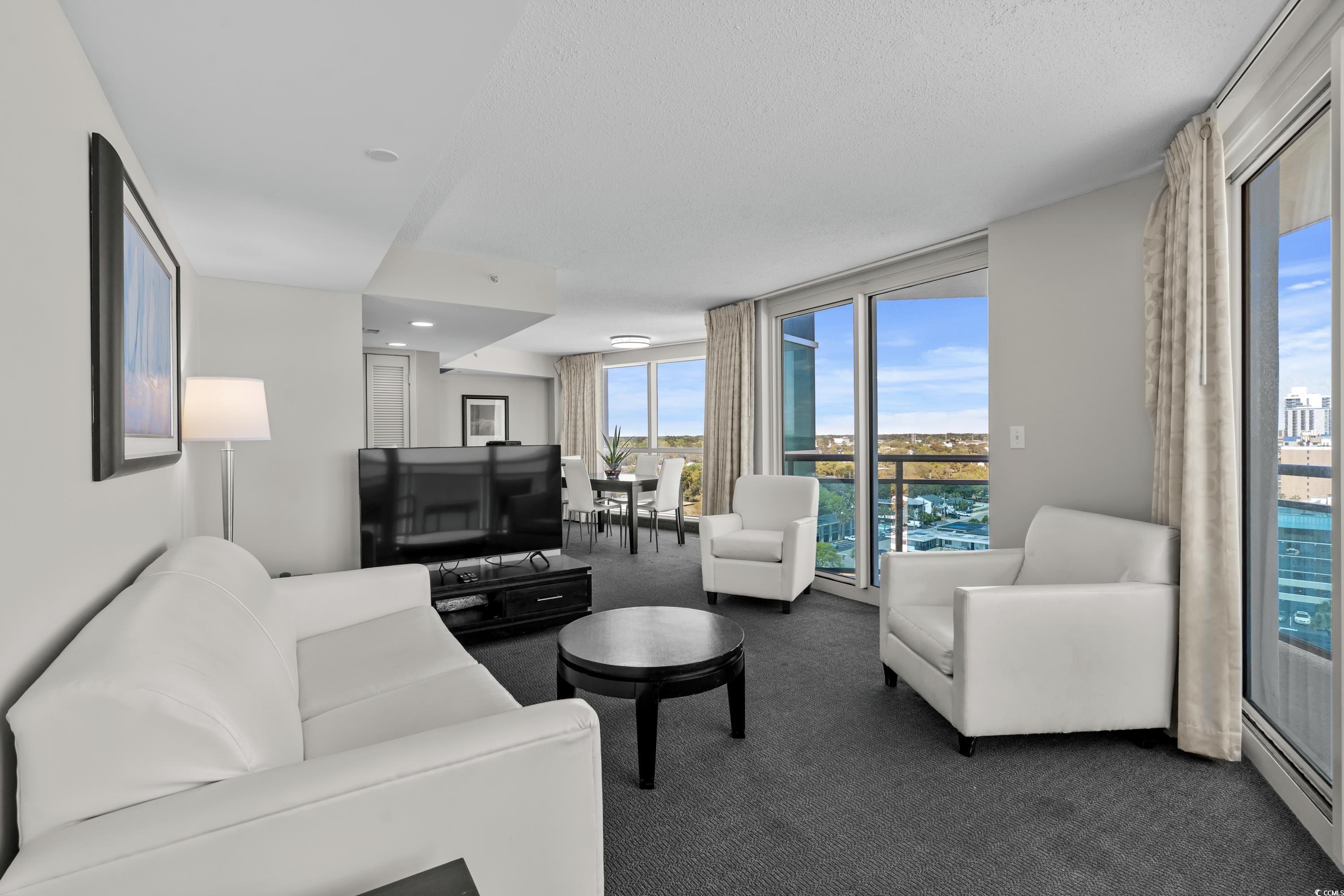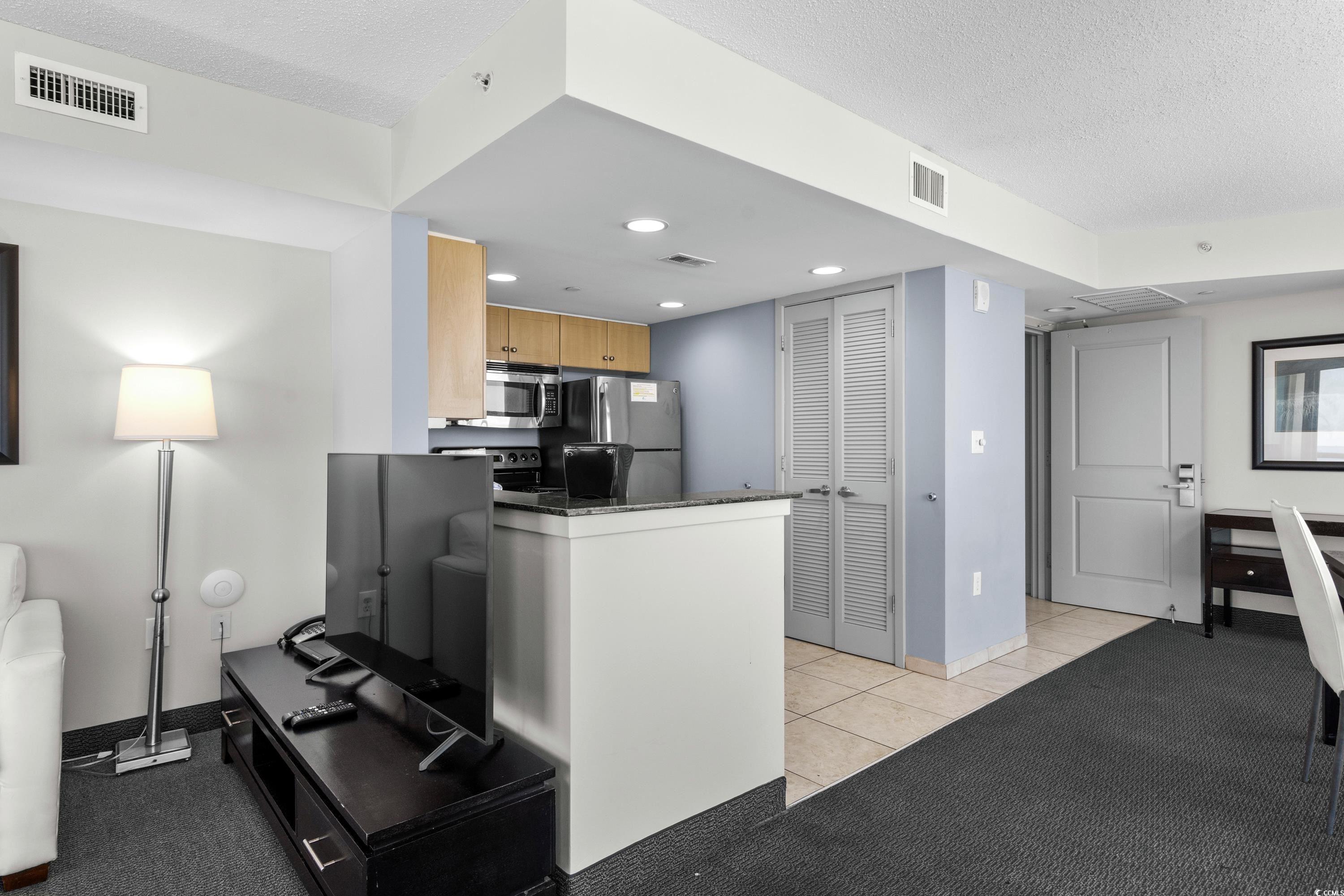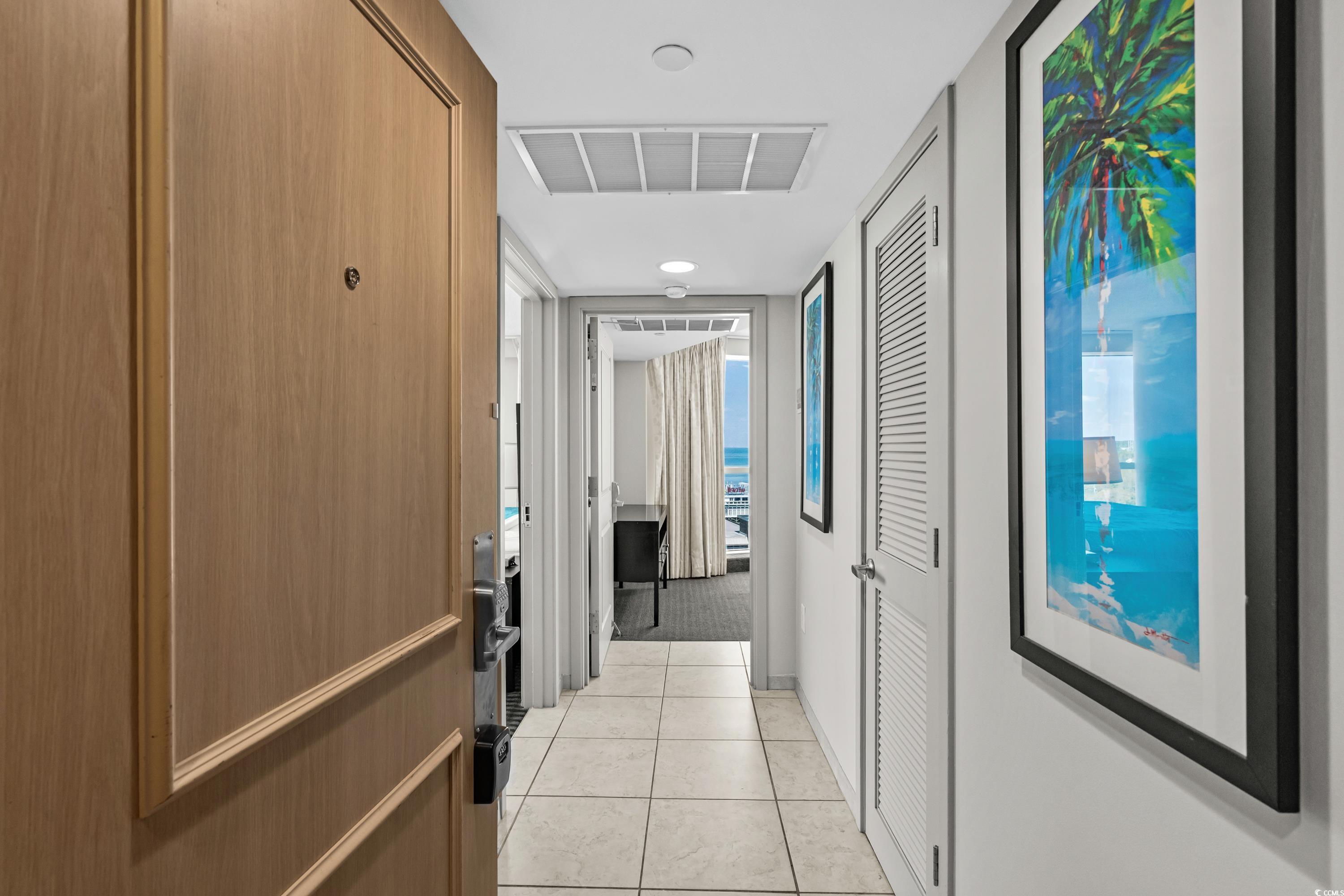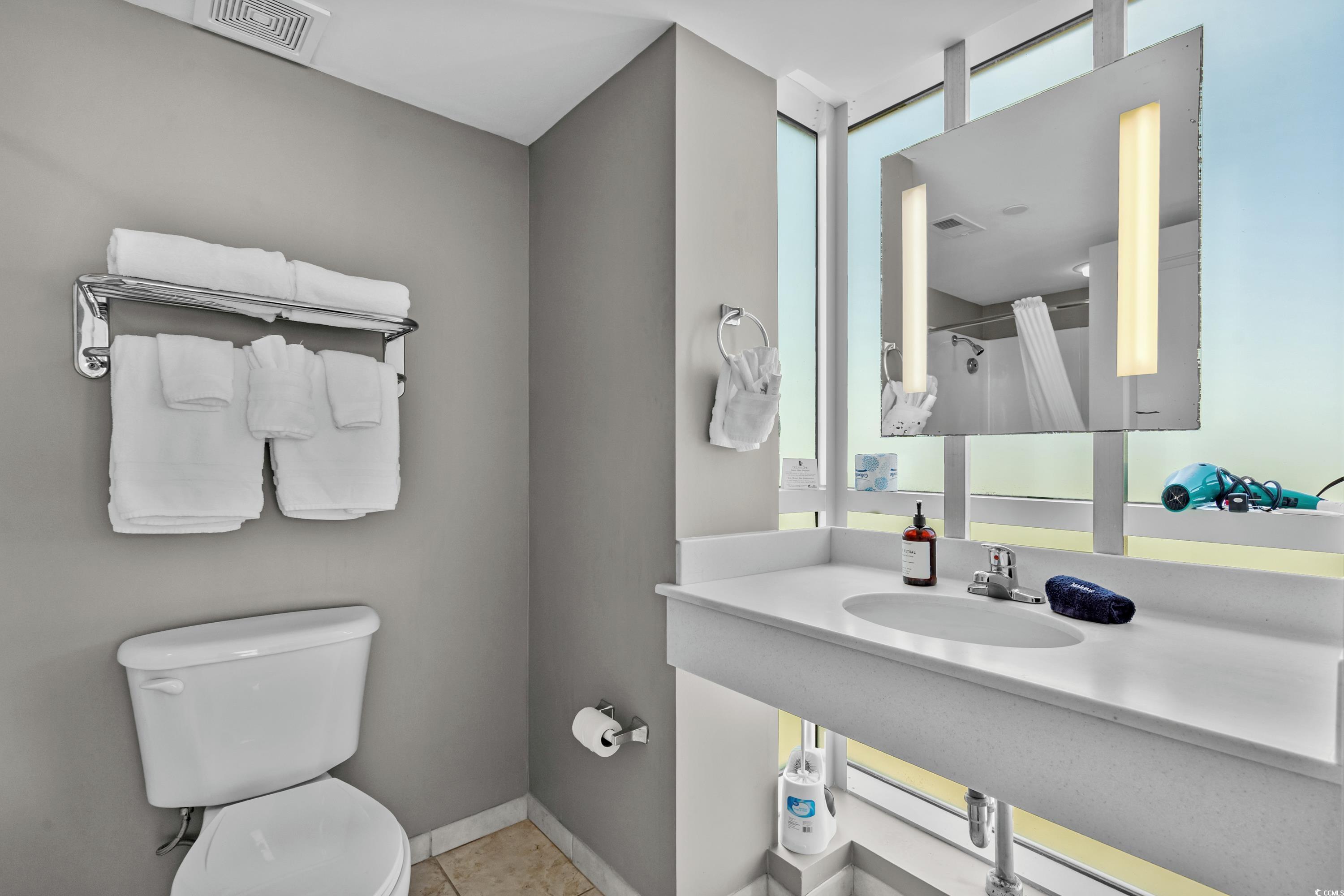 Welcome to this luxurious and versatile 2-bedroom, 2-bathroom oceanfront lockout condo located in the heart of Myrtle Beach. Situated on a prime end unit, this stunning property boasts floor-to-ceiling windows offering uninterrupted panoramic views of the Atlantic Ocean, coastline, and cityscape — truly a front-row seat to some of the most breathtaking sunrises on the East Coast. This thoughtfully designed condo can be used as a spacious 2-bedroom unit or locked out into two separate accommodations: a 1-bedroom, 1-bathroom condo with a full kitchen and living area, and a private studio with its own bathroom as well. Whether you're seeking a personal retreat, vacation home, or a high-performing investment property with flexible rental options, this unit delivers exceptional value and appeal. The interiors feature a sleek, contemporary aesthetic with clean lines, soft coastal hues, and upscale furnishings. The main living space opens to a private balcony through sliding glass doors, offering expansive views that stretch up and down the coast. Natural light floods the space, creating a bright and airy ambiance that perfectly complements the oceanfront setting. The fully equipped kitchen is outfitted with stainless steel appliances, wood cabinetry, and plenty of counter space ideal for entertaining or preparing meals after a day on the beach. The adjacent dining area is framed by wraparound windows, allowing you to dine with an unforgettable backdrop of sea and sky. The primary bedroom features its own sweeping ocean views. A private en-suite bathroom offers ample storage, and a shower/tub combo. The second bedroom — part of the lockout studio — also features ocean views, its own sitting area, and a bathroom, making it ideal for guests or potential rental clients seeking privacy and comfort. Oceans One Resort offers access to a wide array of resort-style amenities that cater to all ages. Enjoy an outdoor pool, an indoor pool, a relaxing hot tub, and a lazy river that winds through a beautifully landscaped sun deck. Little ones will love the outdoor kiddie pool and splash features, while adults can unwind with a drink in hand as they lounge by the water, all with the sounds of the surf as a backdrop. Located just minutes from Myrtle Beach’s most iconic attractions, including the Boardwalk, SkyWheel, Market Common, and a variety of golf courses, dining, and entertainment options, this unit offers the perfect blend of convenience and coastal luxury. Whether you're looking for a second home, a beachfront getaway, or an income-producing property this location is hard to beat. Don’t miss this rare opportunity to own a modern, oceanfront condo in one of Myrtle Beach’s most sought-after high-rise resorts. Buyer is responsible for verification.