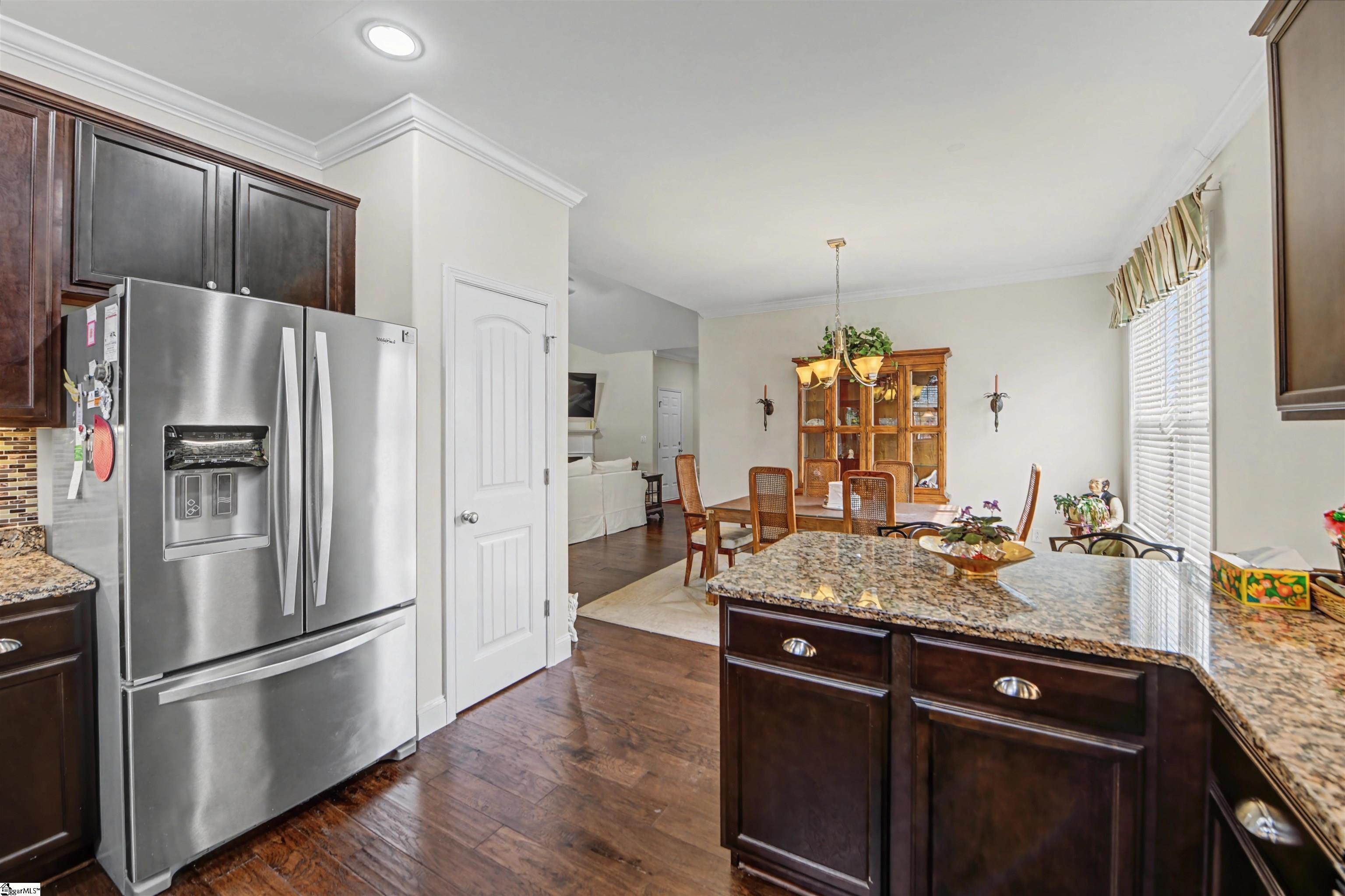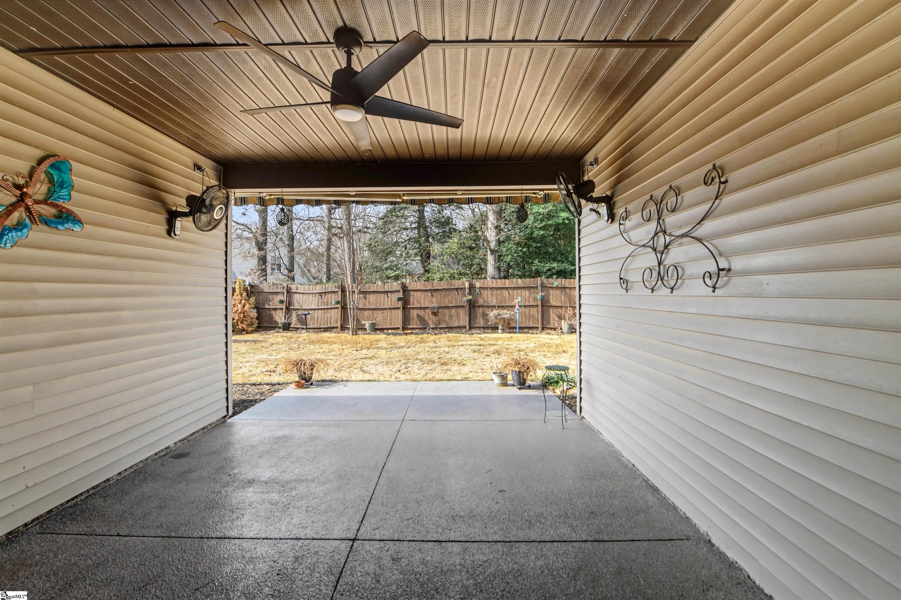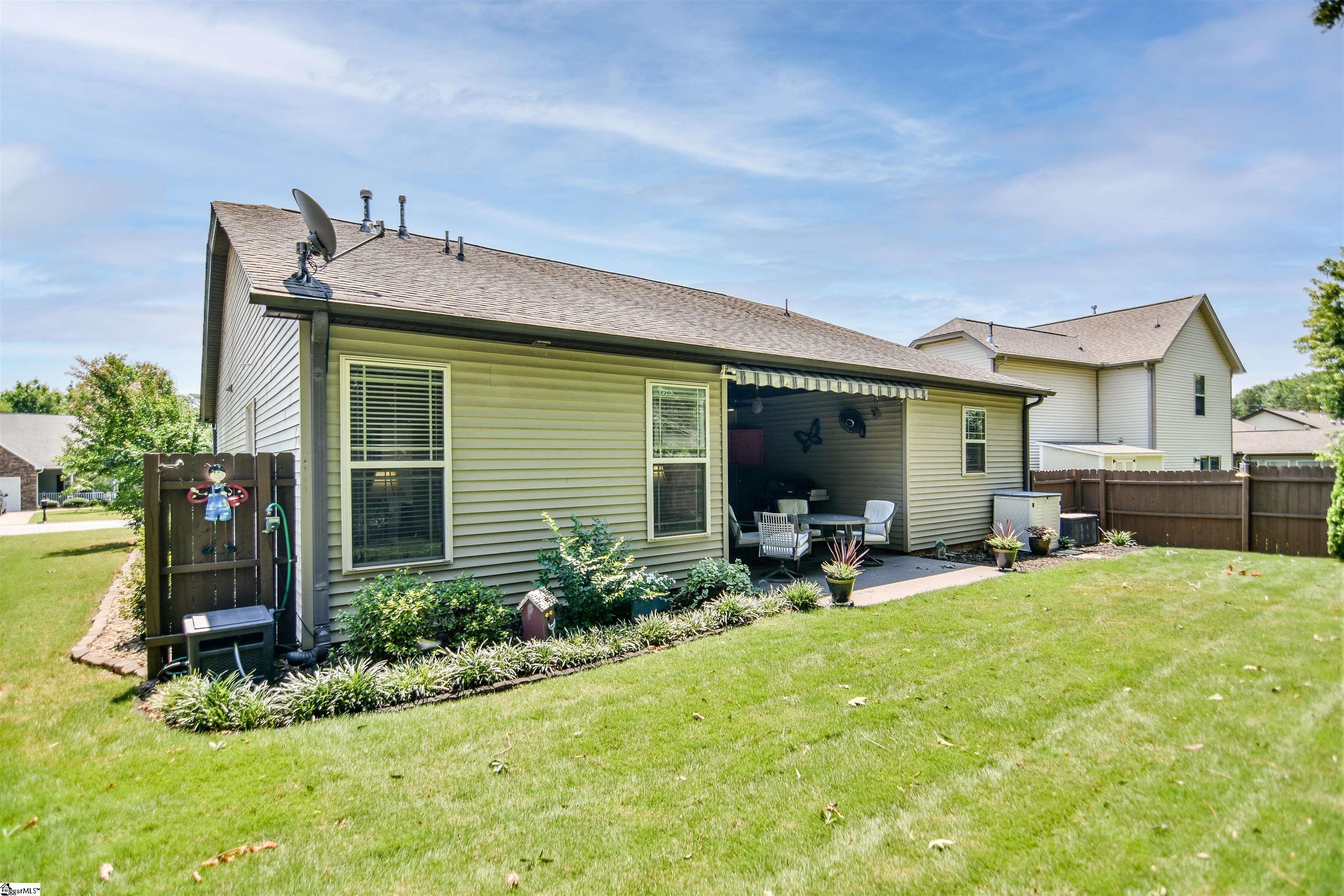 Welcome to 107 Sedgebrook Drive in Simpsonville, SC 29681! This lovely 3BR/2BA ranch home features wonderful one-level living! Through the gorgeous wooden front door, enter onto beautiful handscraped hardwoods that span the open floor plan and even into all the bedrooms! From the foyer, move forward into a spacious great room area with vaulted ceiling and gas log fireplace. You will quickly appreciate the fact that this home has been recently repainted throughout. The dining area flows into the large kitchen with an eat-at bar, granite countertops, an ample supply of cabinetry, a pantry, and ALL the SS appliances included. Entertaining is so easy here! The split bedroom floor plan allows for two secondary bedrooms and full bath on the left with the primary bedroom on the back right. This primary bedroom boasts a trey ceiling and adjoining private bath with dual sinks, garden tub, separate shower, plus a large walk-in closet! Conveniently located to the primary, the walk-in laundry room comes complete with washer and dryer. Another key feature of this lovely home is found when you step out back to the covered porch with remote controlled awning, extra added fans, and a fenced, private backyard oasis offering lovely established landscaping with irrigation! Imagine happy hour here all day! All of this located in the convenient and highly desired community of Shadow Creek just minutes to shopping and restaurants including downtown Simpsonville OR Greenville with easy interstate access! PLUS, yard decor, covered porch fans, and mounted TVs convey with the property! Do not miss this opportunity!! Come home to 107 Sedgebrook Drive TODAY!