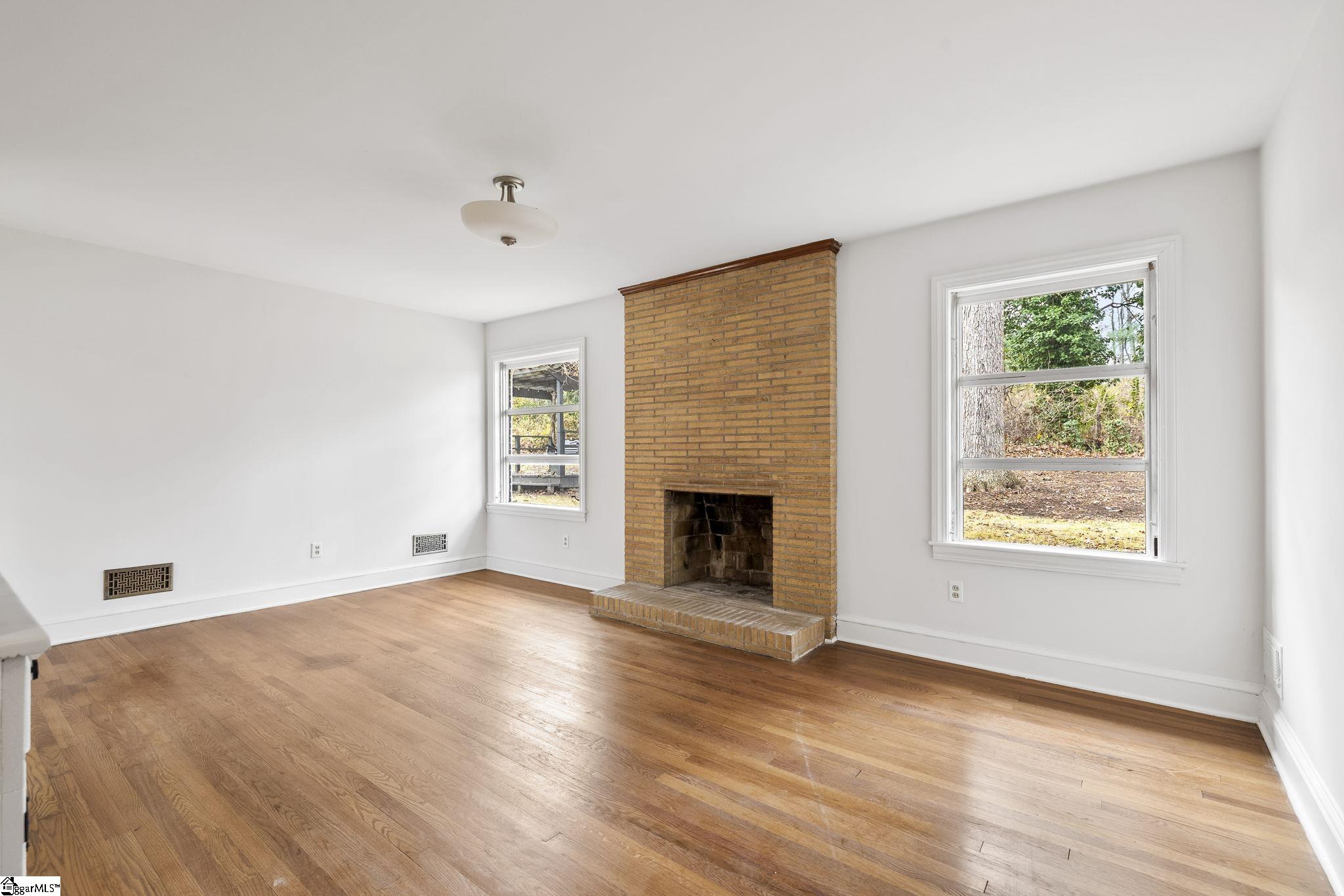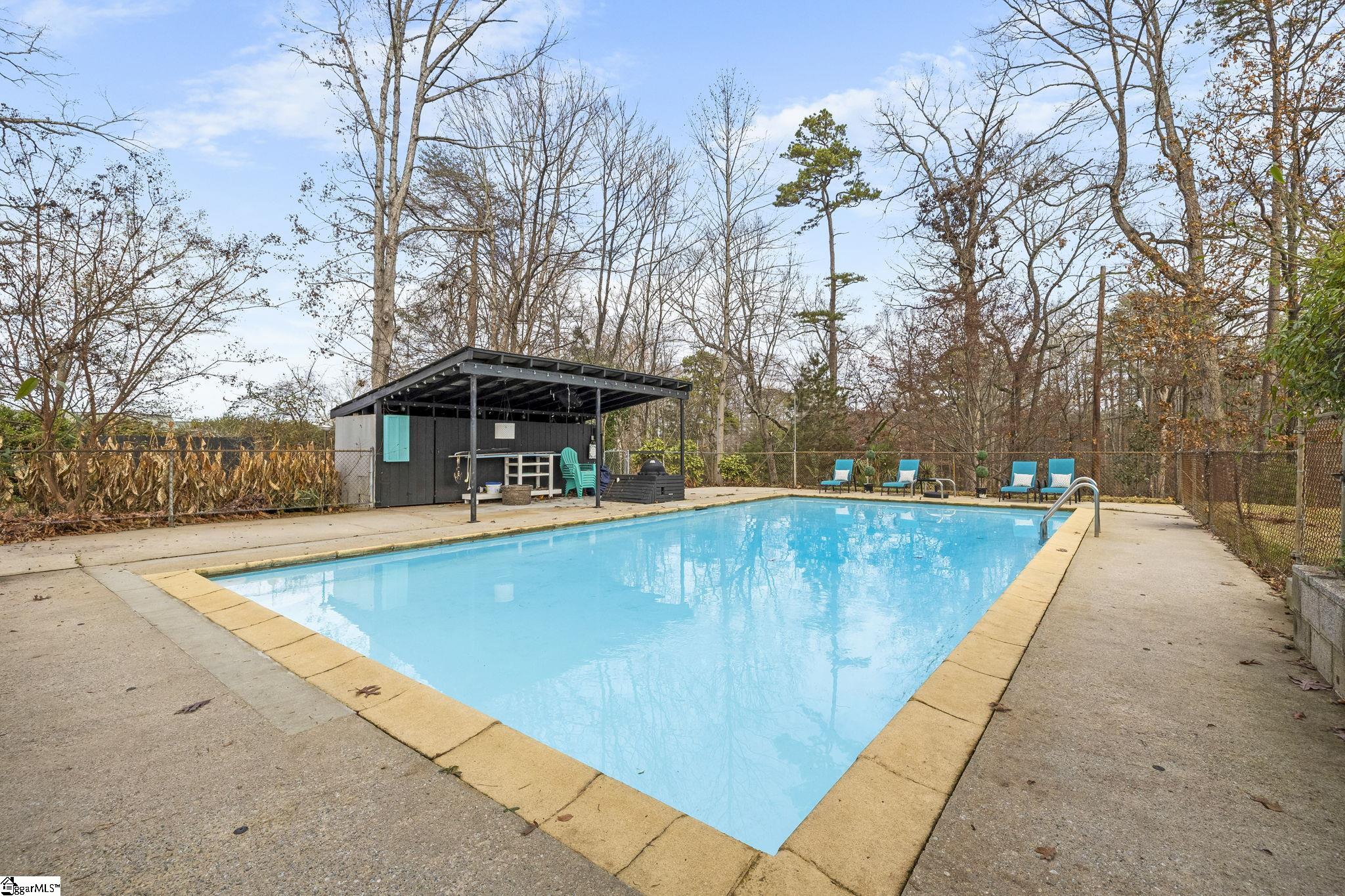 Private, one-level living at its finest! This all-brick ranch sits on 2.2 private acres and features an inviting inground pool, plenty of outdoor living space, and a flexible one-level floor plan. Inside, you'll find an expansive open-concept great room with a charming brick accent wall, wood-burning stove, and built-in bookcases—the perfect backdrop for everyday living or hosting gatherings. The sunny breakfast area with a bay window and window seat flows into the renovated kitchen, complete with quartz countertops, tile backsplash, bar seating, a deep sink, and a full stainless-steel appliance package, including a range hood. Off the kitchen is a versatile flex room ideal for a formal dining room, cozy den, or home office. A second wood-burning fireplace and a wall of built-ins add warmth and character. Two secondary bedrooms share a hall bath, while the primary suite offers a private renovated bath featuring oversized tile flooring, furniture-style vanity, and a tub/shower combo. The large laundry room provides easy access to both the carport and the backyard and features a built in bench with storage for backpacks, umbrellas and shoes. Outdoor living shines with privacy, space, and multiple entertaining areas. Parking is abundant with a one-car attached carport, extra parking pads, and a detached two-car garage with yard door—also perfect for a workshop. Enjoy evenings under the pergola with swing, ideal for after-dinner drinks, quiet date nights, or time with the kids. The inground pool includes ample patio space and a pool house with half bath, changing rooms, and storage. Located within walking distance to Mitchell Road Elementary and less than 10 minutes to interstate access, shopping, dining, and top-tier medical facilities. Welcome Home!