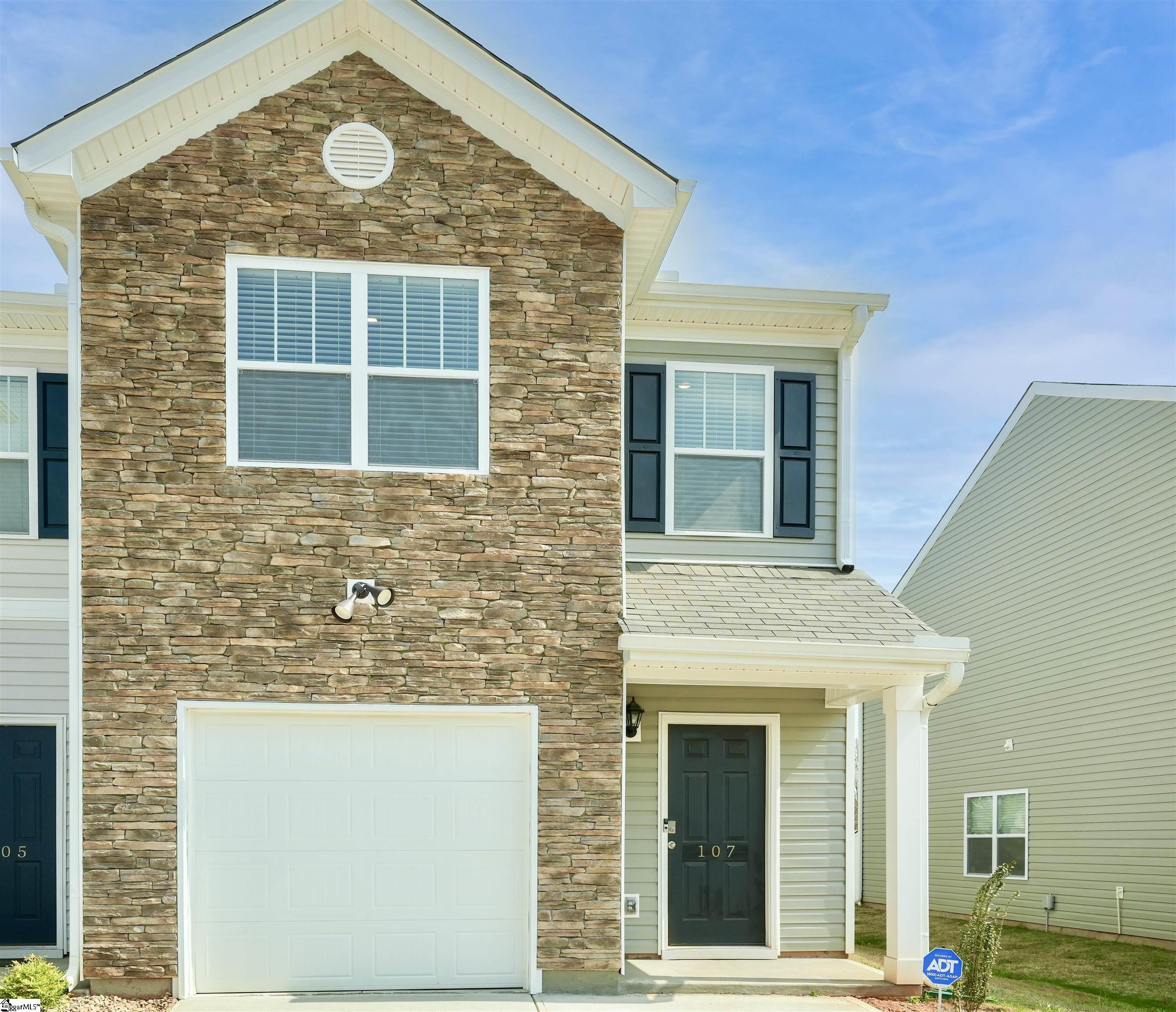MOVE IN READY! MOUNTAIN VIEWS! ALL APPLIANCES AND BLINDS INCLUDED! NO HOMES BEHIND! WALKING TRAILS! Located in the highly sought after Brookside Ridge walking distance from award-winning Greer High and Middle Schools! 107 Sunriff is an END UNIT that has a grassy common area to the side and an expansive backyard area with one side already FENCED! Popular MAYWOOD floorplan - Granite countertops, a massive center island, stainless steel appliances – ALL APPLIANCES CONVEY, including refrigerator, washer and dryer! Surprisingly large half bath and LVP FLOORS and 9 ft ceilings throughout the main level. Upstairs boasts VAULTED CEILINGS in the primary suite, walk-in closet, two linen closets, double quartz vanity, and walk-in shower. SMART HOME WIRED with Honeywell touchscreen thermostat, Kwikset Smartcode deadbolt, Skybell video doorbell. Quick access to downtown Greer (approx 10 min) and downtown Greenville (approx 25 min). Two minute drive to Greer Golf and Country Club, that includes an 18-hole golf course, driving range, golf shop, golf cart rentals, a restaurant and more! RESORT STYLE AMENITIES – including a double POOL, CLUBHOUSE, PLAYGROUND, WALKING TRAILS, pickleball and bocce ball courts, BLUE RIDGE MOUNTAIN VIEWS! For the most accurate information and to schedule your private showing, contact the listing agent directly.