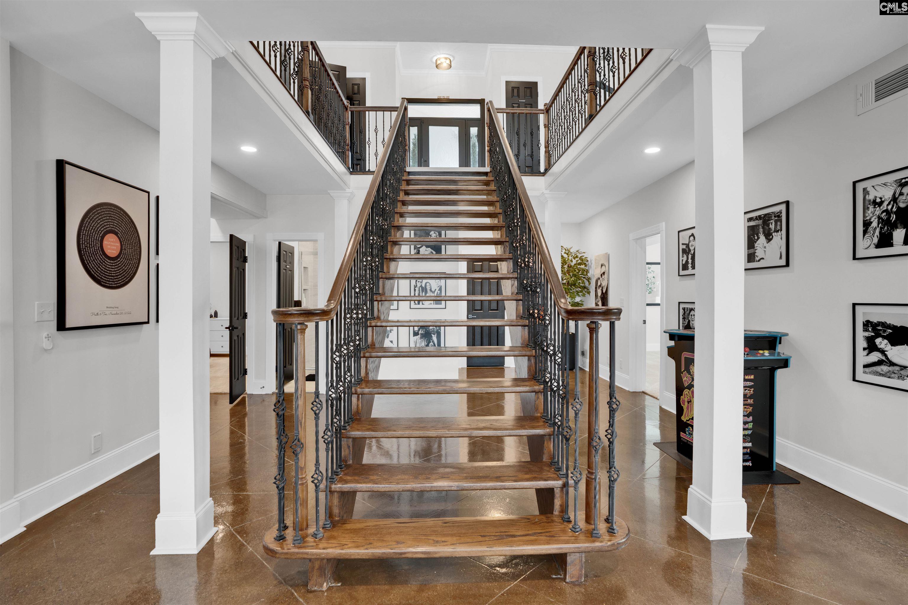 An ultimate- modern contemporary lakefront estate where every evening concludes with show-stopping sunsets over Lake Murray & a glistening, resort-style pool. This fully updated 5-bedroom, 4 bath retreat is perfectly positioned along 103 feet of pristine shoreline in sought after Lake Point; offering just under 4,700 square feet of thoughtfully designed living space. The open-concept main living area is framed by expansive windows that flood the home with natural light and capture breathtaking panoramic lake views from nearly every angle—creating an inviting atmosphere for both everyday living and entertaining. At the heart of the home is the ultimate chef’s kitchen, meticulously updated with every luxury component in mind, making it ideal for hosting family and guests alike. Adjacent to the kitchen, an enclosed porch provides a peaceful setting for morning coffee while overlooking the tranquil water. The main-level owner’s suite is a private sanctuary featuring sweeping lake scenery, direct access to a private terrace, and a spa-inspired bath complete with dual custom stone vanities, an oversized walk-in shower, oversized sauna and expansive his-and-her closets. The main level also includes a private office, a custom dog suite with its own shower/tub, and a magnificent dining room large enough to accommodate a Grand 12-person table—perfect for memorable gatherings.The lower level offers 4 massive guest bedrooms, 2 custom bathrooms, a gigantic great room; anchored by an elaborate bar and billiards area. Step out onto the lower terrace to soak in unforgettable sunsets; Sellers have perfectly placed a relaxing hot-tub for ultimate viewing. Outdoors, the backyard oasis features a deep swimming pool, expansive patio, epic fire-pit, custom dog run and a private dock with deck space, ideal for watercraft or simply enjoying the serenity of lakeside living. With miles of big-water views visible from the living room, great room, kitchen, owner’s suite, and every terrace; Lake Life is experienced at every glance... Designed for comfort, luxury, and entertainment, this exceptional property transforms daily living into a forever resort-like lake paradise. Disclaimer: