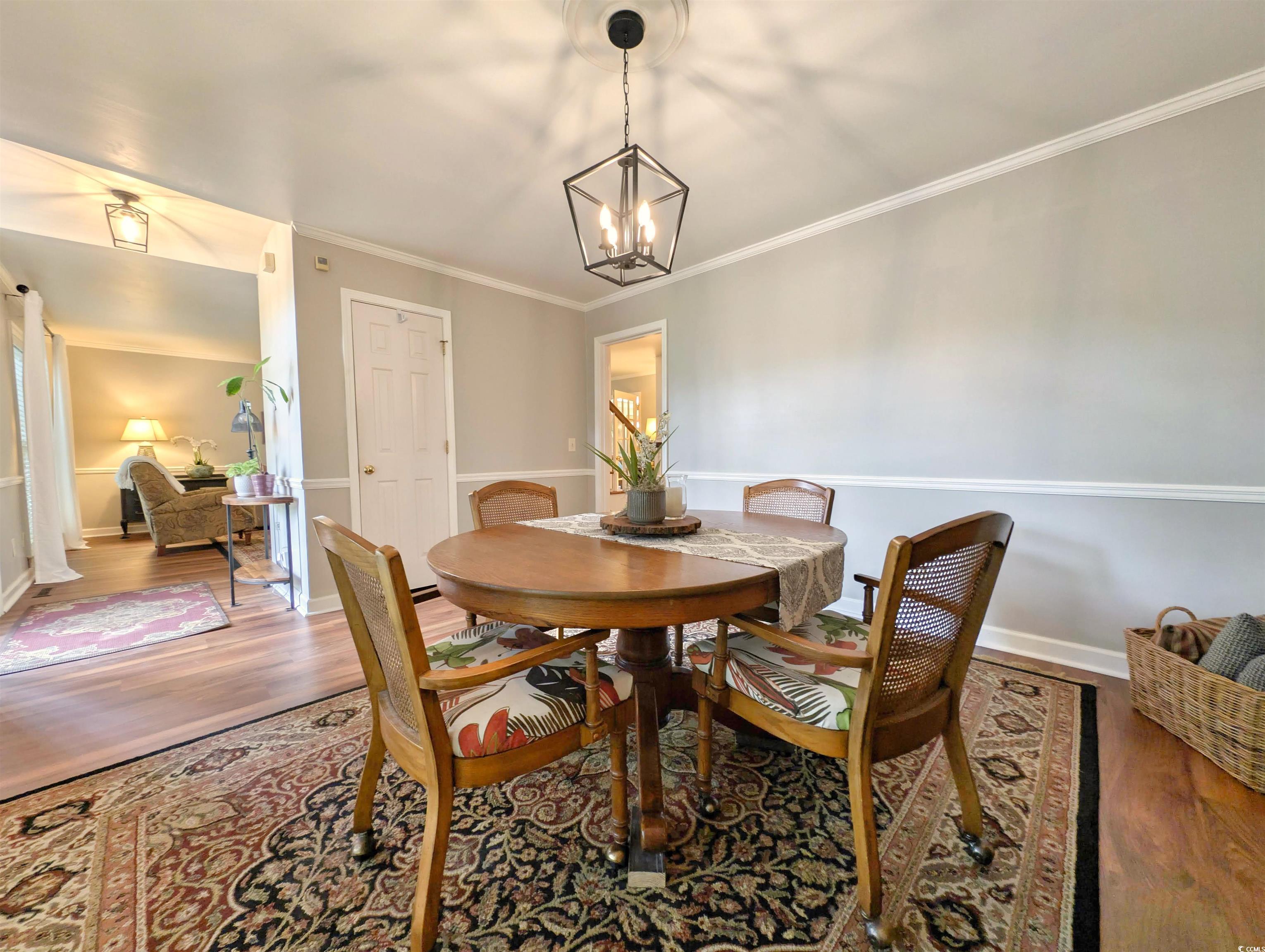 Nestled in the heart of the sought-after Litchfield Country Club community in Pawleys Island, this spacious 3-bedroom, 2.5-bath home offers 2,806 heated square feet of classic Lowcountry charm. Situated on a private 0.35-acre lot overlooking the golf course, this home boasts exceptional curb appeal with a circular driveway, outdoor fireplace, and inviting decks on both levels—perfect for entertaining or relaxing in the coastal breeze. Step inside to discover a thoughtful floor plan that blends comfort and elegance. The main level features multiple living spaces, including a formal dining room, a cozy living room, and a bright Carolina Room filled with natural light. Custom built-ins add character and function throughout. The primary suite is conveniently located on the first floor and includes a spacious bathroom with double vanities, a garden tub, and a walk-in shower. Upstairs, you'll find two generously sized bedrooms—one with a versatile flex space ideal for an office, playroom, or studio. Ample attic storage is easily accessible from both sides of the upper level. With a two-car garage, classic architectural details, and a serene golf course setting, this home offers both everyday comfort and timeless appeal. Don’t miss the opportunity to enjoy life in one of Pawleys Island’s most established and scenic neighborhoods.