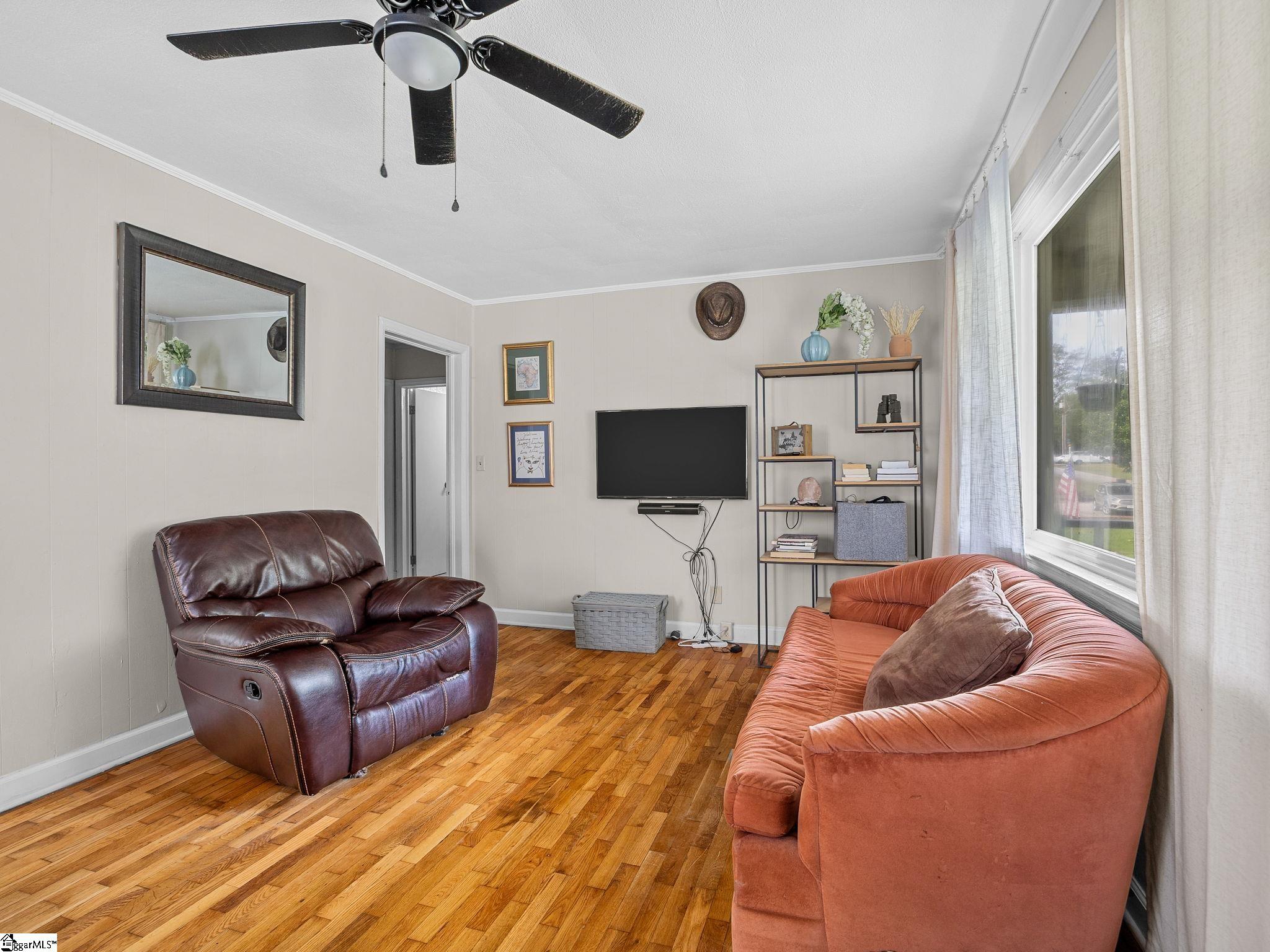 Welcome to this charming 3-bedroom, 1-bathroom home nestled in the desirable Mayfair Estates neighborhood! This move-in-ready gem sits on a level corner lot with a fenced front yard and inviting covered front porch – perfect for watching the world go by with your morning coffee. Step inside to discover beautifully refinished hardwood floors that flow throughout the home, complemented by fresh paint that makes every room feel bright and welcoming. The renovated kitchen steals the show with soft-close cabinets, granite countertops, and stainless steel appliances that stay with the home, including the refrigerator and microwave. Talk about convenience! The updated bathroom features a new vanity and toilet, while practical touches like the included washer and dryer make daily life a breeze. With a roof that's only three years old and a vapor barrier installed in the crawlspace, you can rest easy knowing the major systems are well-maintained. Location enthusiasts will appreciate the proximity to interstates, highways, downtown Spartanburg, shopping, dining, entertainment venues, healthcare facilities, and colleges. This well-positioned home offers exceptional value in Spartanburg's thriving market, representing a fantastic opportunity for buyers seeking quality and affordability in one appealing package.