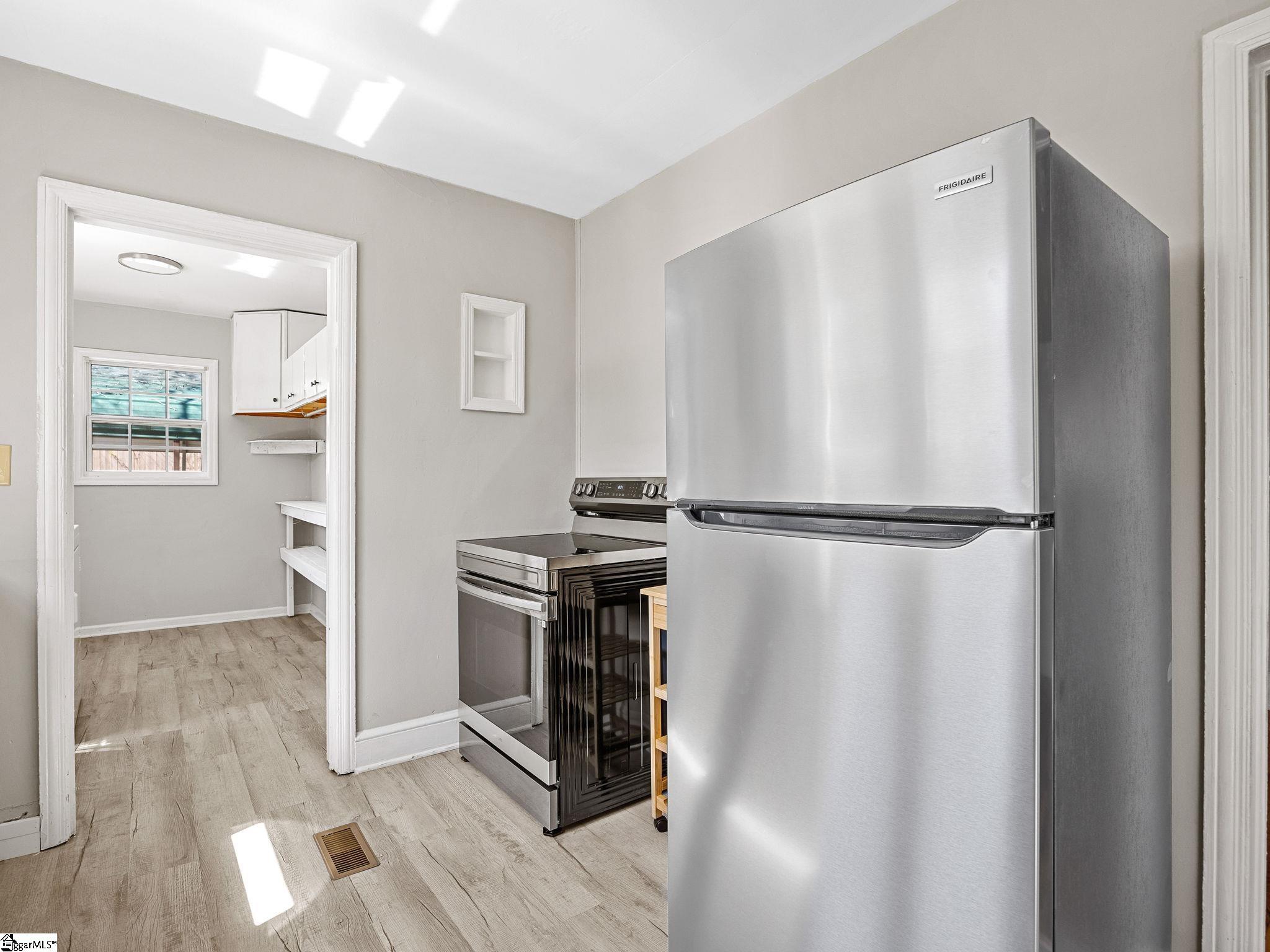 Welcome to this charming 3-bedroom, 1-bathroom home nestled in the desirable Mayfair Estates neighborhood! This move-in-ready gem sits on a level corner lot with a fenced front yard and inviting covered front porch – perfect for watching the world go by with your morning coffee. Step inside to discover beautifully refinished hardwood floors that flow throughout the home, complemented by fresh paint that makes every room feel bright and welcoming. The renovated kitchen steals the show with soft-close cabinets, granite countertops, and stainless steel appliances that stay with the home, including the refrigerator and microwave. Talk about convenience! The updated bathroom features a new vanity and toilet, while practical touches like the included washer and dryer make daily life a breeze. With a roof that's only three years old and a vapor barrier installed in the crawlspace, you can rest easy knowing the major systems are well-maintained. Location enthusiasts will appreciate the proximity to interstates, highways, downtown Spartanburg, shopping, dining, entertainment venues, healthcare facilities, and colleges. This well-positioned home offers exceptional value in Spartanburg's thriving market, representing a fantastic opportunity for buyers seeking quality and affordability in one appealing package.