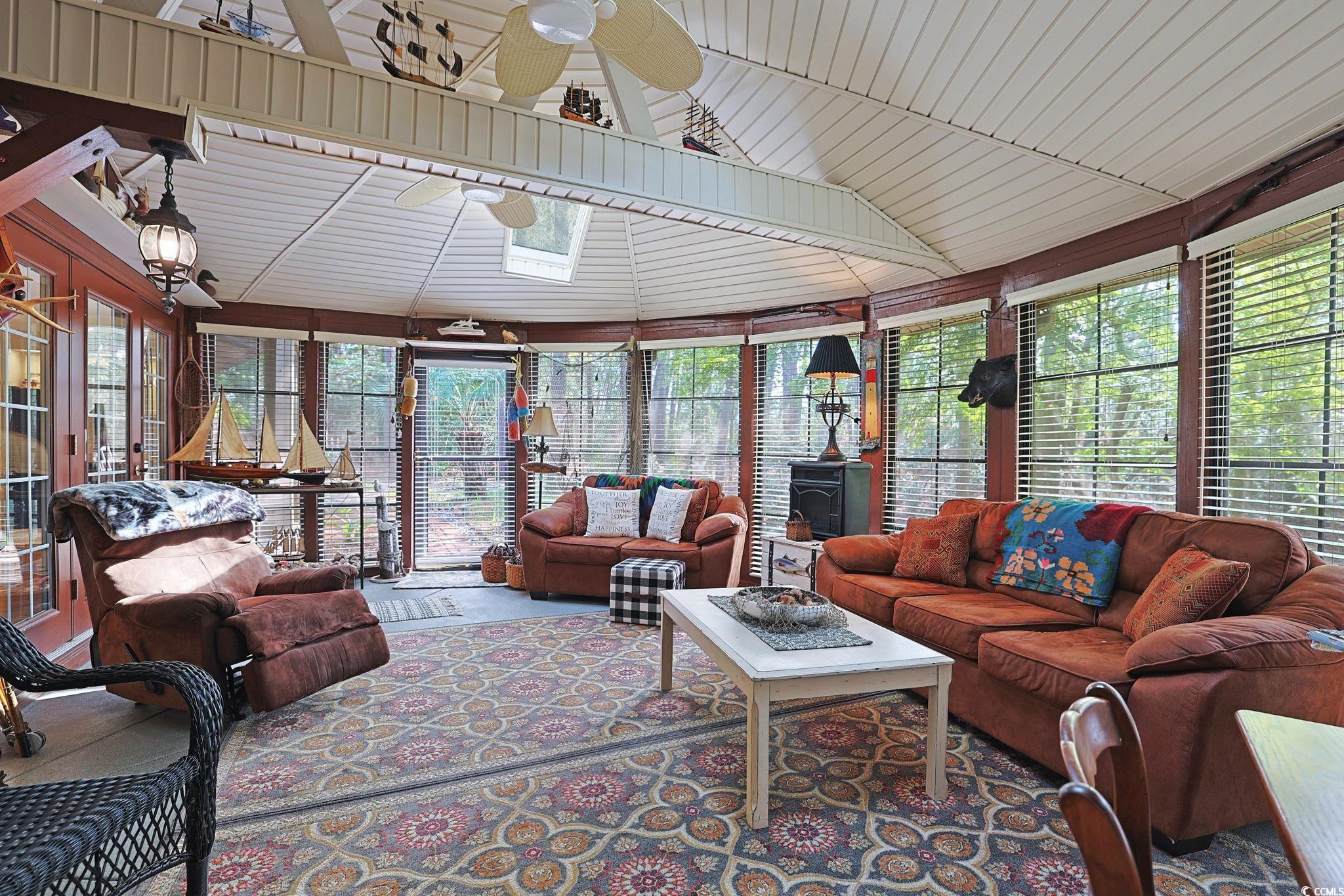 Presenting this charming 2 bedroom 2 bath home located in the exciting 55+ Myrtle Trace gated golf community. This graceful home has hardwood, tile, & carpet flooring, crown moulding, ceilings fans, an abundance of natural lighting, a spacious living room gives way to a delightful retreat area with a cozy fireplace, and showcases a 3 panel patio door that opens up to the relaxing sunroom. The formal dining room boasts shadow box chair railing, a ceiling medallion with a chandelier, and a sun drenched solar tube. The family friendly kitchen is equipped with a range, built-in microwave, dishwasher, side by side refrigerator with ice & water door dispenser, ample counter & cabinet spaces, tile back splash, a practical pantry, and a memorable bay window breakfast nook. The primary suite offers a ceiling fan, a large walk-in closet, access to a private office or 3rd bedroom, private access to the primary bath that hosts a vanity with a single sink, a comfort station, and a deluxe step-in shower. This captivating home is completed with an addition bedroom, a full guest bath that includes a laundry closet, and a single car attached garage. Myrtle Trace features cultivated landscaping, an inviting clubhouse, a sparkling outdoor saltwater pool, an exciting bocce ball court, and a horse shoe pit. This home affords you easy access to the beach and golfing along with all of the other activities and happenings in Myrtle Beach & Conway including fun eateries, award winning off-Broadway shows, public fishing piers, Conway’s historic riverwalk, and intriguing shopping adventures along the Grand Strand.Conveniently located to your everyday needs, including grocery stores, banks, post offices, medical centers, doctors’ offices, and pharmacies. Check out our state of the art 3-D VirtualTour.