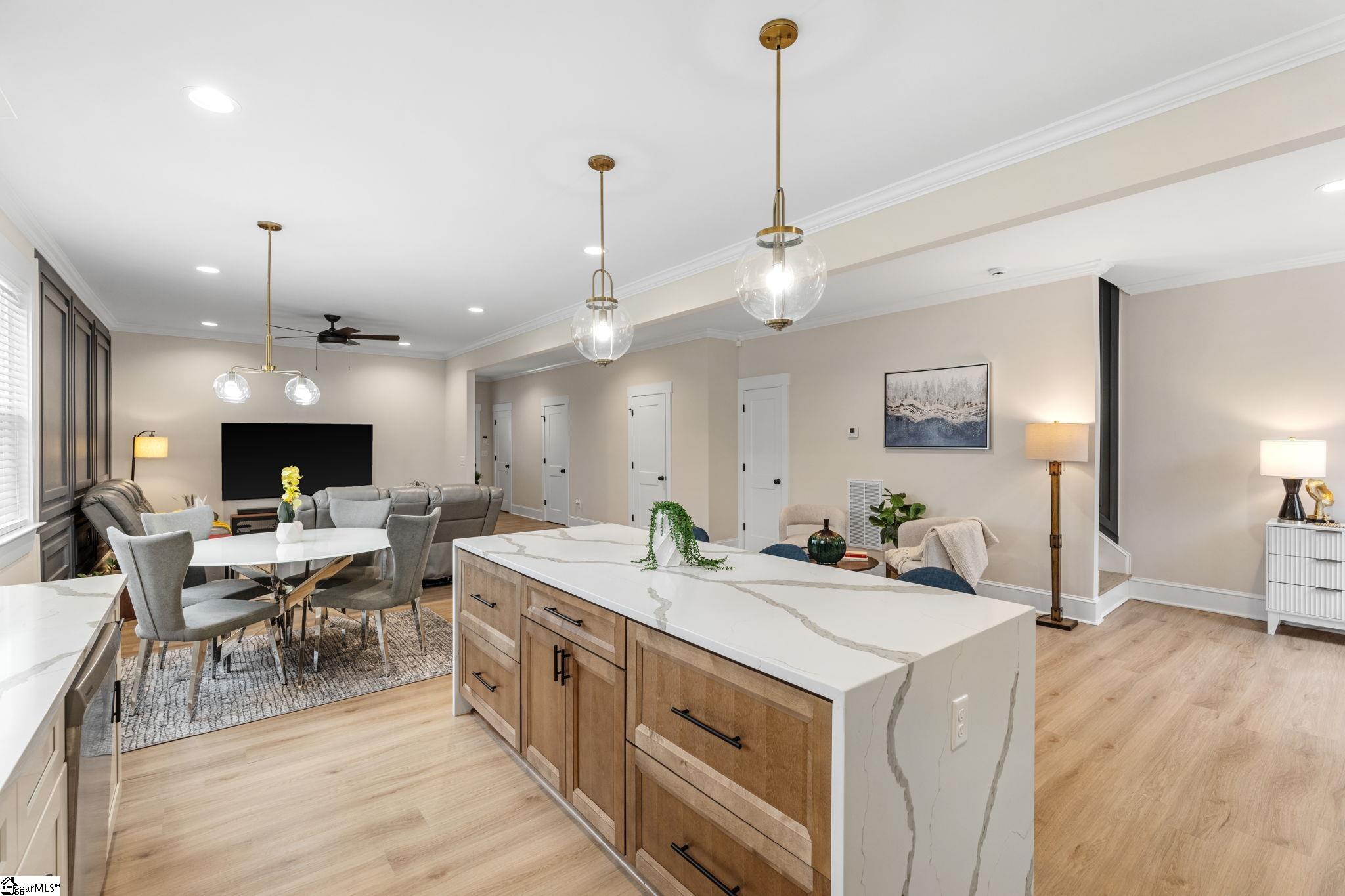 So… what if you could skip the “new construction wait,” avoid builder-basic finishes, and be close to downtown Greenville? This 2025 build has been barely lived in and already dialed in with the upgrades you actually want. Let’s talk about the kitchen—because isn’t that where everyone ends up anyway? A huge waterfall-trimmed island with warm accent cabinetry anchors the space, paired with quartz countertops, tile backsplash, and quartz tile floors. Clean, neutral tones keep things fresh, while subtle pops of color add just enough warmth so it doesn’t feel like a showroom. Need a main-level bedroom and full bath? Working from home? Hosting guests? Or just not feeling stairs every single day? Covered. Upstairs, the primary suite brings boutique hotel vibes with a barn door entry, dual sinks, frameless glass shower, private commode, walk-in closet, and his-and-hers wall-switch-controlled suspended bedside lighting—because why should turning off the lights require getting out of bed? Outside perks? Covered front porch for morning coffee, raised rear deck for evenings, a walk-in laundry room with added shelving (because organization feels good), storage attic with pull-down access, and a driveway that fits up to six cars—friends welcome. And the location? Fifteen minute wall to Fluor Field then just 5 more to downtown GVL, a short walk to the upcoming County Square dining and shopping district expected to open in 2026, and easy access to one of the most walkable, food-forward, trail-filled downtowns you can find. In 2025 Greenville was ranked #4 as a top place to live for a reason— come see why!