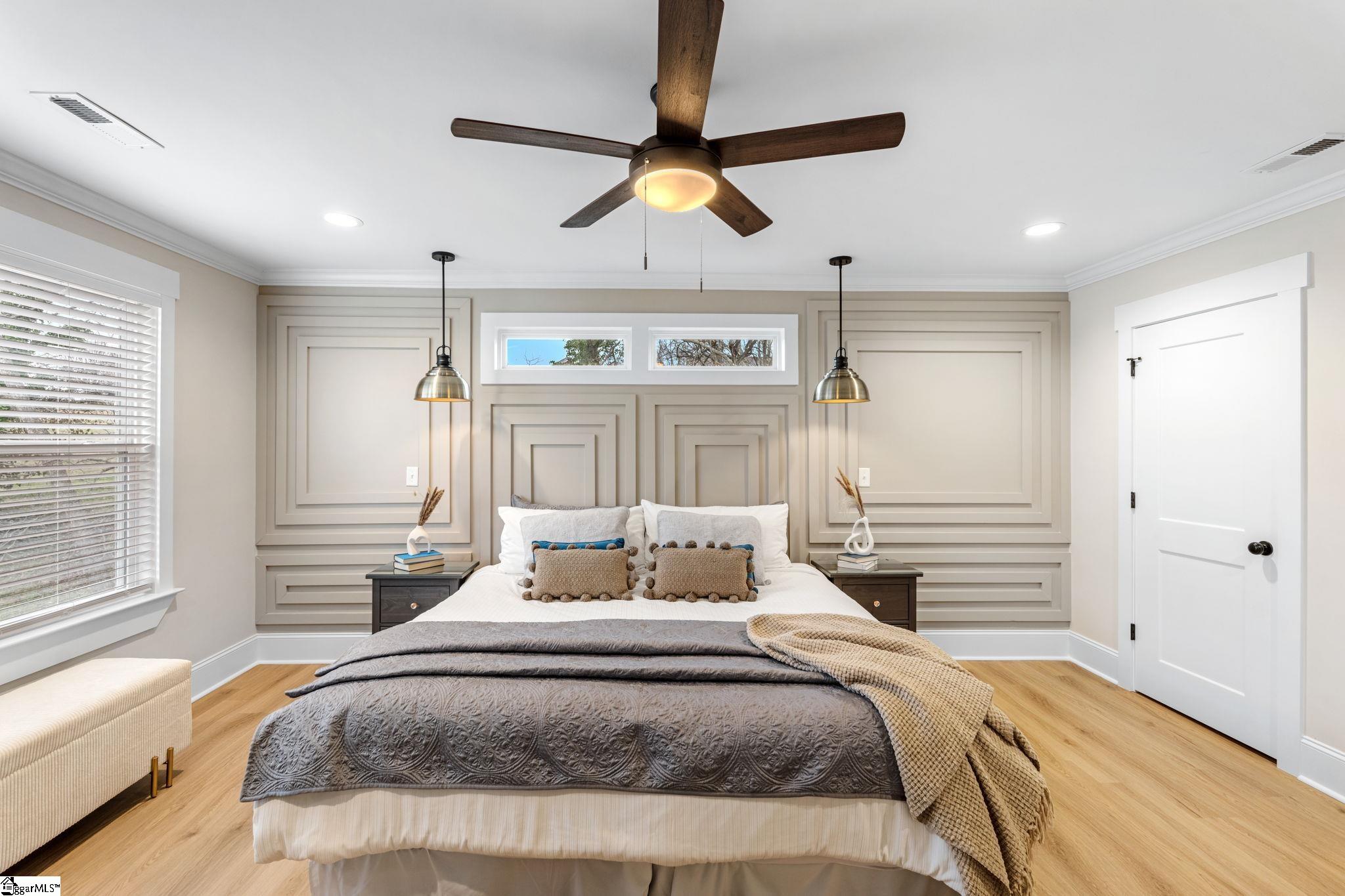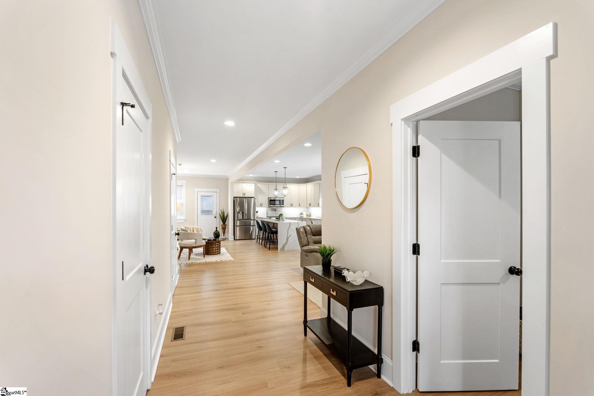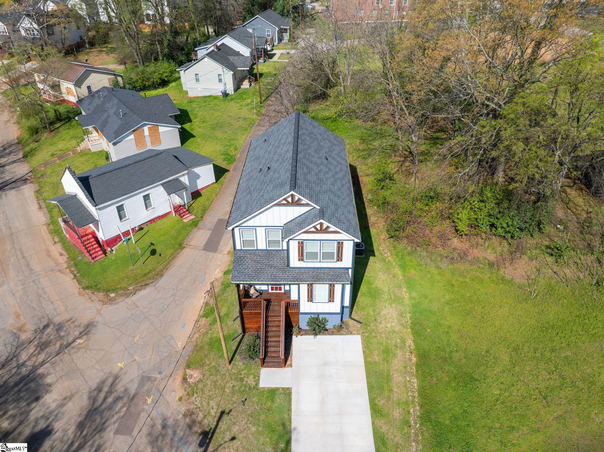 Ready when you are… why wait on new construction when you can move right into a nearly new 2025 home that already has the upgrades dialed in? This home was lightly lived in and thoughtfully finished beyond builder-basic. The kitchen is the natural gathering spot, anchored by a large waterfall island with warm accent cabinetry, quartz countertops, tile backsplash, and sleek quartz tile floors. Neutral tones keep things crisp, with just enough warmth to feel like home—not a showroom. Need flexibility? The main-level bedroom and full bath offer options for guests, a home office, or easy everyday living without the stairs. Upstairs, the primary suite feels like a boutique retreat with a barn door entry, dual sinks, frameless glass shower, private water closet, walk-in closet, and wall-switch-controlled suspended bedside lighting for added convenience. Outdoor spaces include a welcoming covered front porch and a raised rear deck—perfect for relaxing or entertaining. You’ll also appreciate the walk-in laundry room with added shelving, pull-down attic storage, and a driveway with room for up to six cars. Location-wise, this one truly stands out—approximately a 15-minute walk to Fluor Field and an easy stroll into downtown Greenville, with a short walk to the future County Square development bringing dining and shopping close to home. Walkability like this is hard to find. Come see how comfortably this home fits your lifestyle—schedule your showing today.