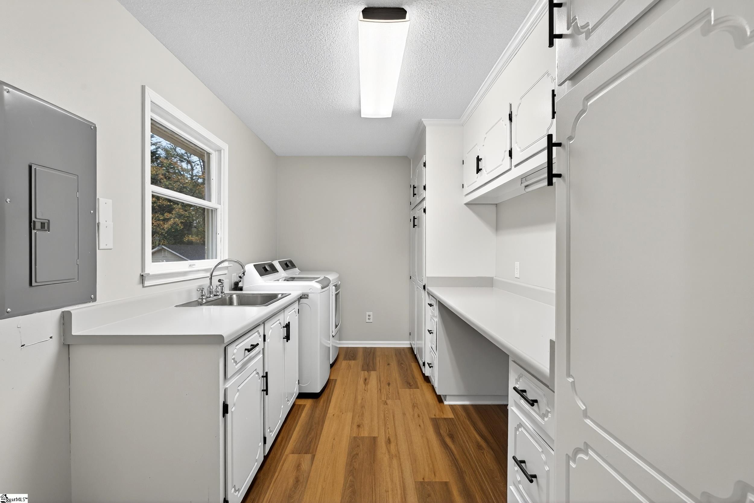 Discover wide-open space right in the city! This rare 3-acre LEVEL property features a charming one-story ranch home with no HOA—a truly hard-to-find combination. Enjoy a spacious covered front porch and a large back deck overlooking beautiful mature trees and meadow-like grounds. Inside, the home offers 3 generous bedrooms and 3 full baths, plus an office/dining room, and an oversized family room. The owner-builder has lovingly maintained this home, and it shows. Recent updates include brand-new luxury vinyl plank flooring throughout and fresh neutral paint on all walls, trim, and cabinetry. A stunning stone fireplace adds warmth and character to the living area. Additional features include: -16x20 powered workshop and separate storage shed -Recently sealed asphalt driveway in excellent condition -Two-car garage with large storage closet -Spacious bedroom closets and a huge laundry room with built-in cabinets, sink, pantry space, and folding area and washer and dryer convey Conveniently located between Greenville and Spartanburg with quick access to all major highways, this home offers the perfect blend of privacy, convenience, and beautifully maintained living space.