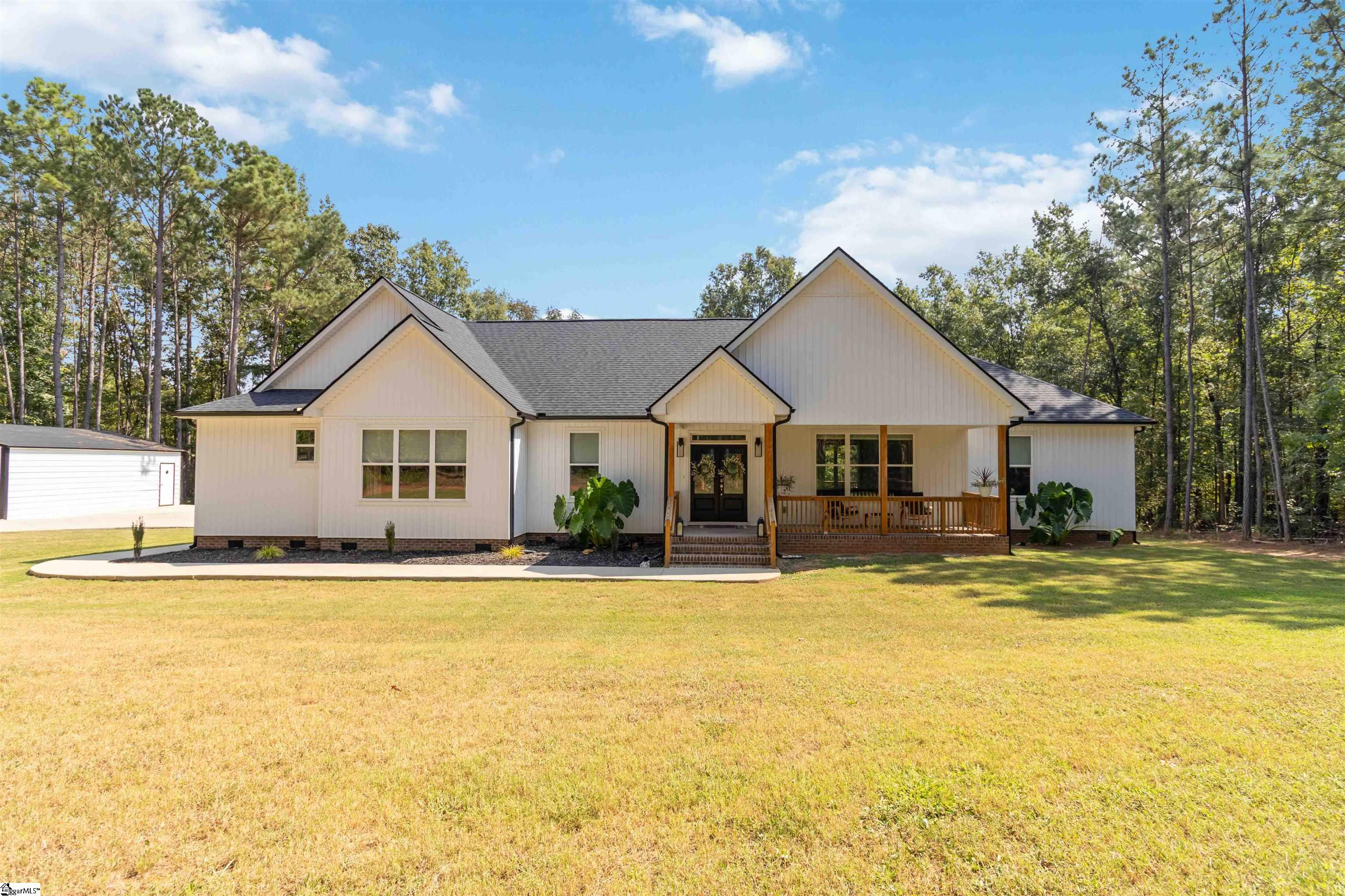 Welcome to 108 Cricket Ridge Court—a stunning custom craftsman-style retreat nestled on 4 private acres in the heart of beautiful Greenwood, South Carolina. If you’ve been dreaming of peaceful country living without sacrificing modern luxury, curated design, and proximity to town amenities, this rare offering is the one you cannot miss. Set back on a long, welcoming driveway, this immaculate single-level residence makes an incredible first impression. The expansive homesite offers a serene buffer of mature trees, an oversized detached garage/workshop, and picturesque natural surroundings—ideal for anyone seeking privacy, recreation, or space to expand. Step inside and be greeted by an open-concept layout bathed in natural light, highlighted by rich custom features throughout. The soaring living room boasts designer lighting, large windows overlooking the wooded backyard, warm wood-tone flooring, and an effortless flow into the chef-inspired kitchen. Whether entertaining or enjoying cozy evenings at home, this space is perfectly designed for comfort and connection. The gourmet kitchen features: • Rich two-tone cabinetry • Striking quartz countertops • Oversized island with seating • Custom vent hood • Herringbone tile backsplash • Stainless-steel appliances • Sliding barn-door entry to the walk-in pantry with coffee/utility station and custom shelving Just steps away, the laundry room offers additional storage, folding station, built-ins, and utility sink. The luxury continues in the primary suite, privately positioned and generously sized with serene nature views. Relax in a spa-like bathroom showcasing: • Dual vanities • Gold accents & designer lighting • Large, glass-enclosed tiled shower • Generous walk-in closet with custom shelving Two additional bedrooms are located nearby, offering ample comfort for family, guests, or a home office. Outdoor living is a showpiece here. The charming front porch stretches across the home, perfect for morning coffee or evenings spent unwinding. The expansive property provides endless potential—garden, pool, hobby farm, outdoor recreation, RV space—you name it. The detached 2-bay garage is perfect as a workshop, storage building, or car enthusiast’s dream. Tucked away in an intimate rural setting yet conveniently located, this home provides the best of both worlds. Enjoy the peace of country living while being just a short drive from historic Uptown Greenwood, offering locally loved restaurants, boutiques, medical care, and year-round events. Outdoor enthusiasts will appreciate proximity to Lake Greenwood, a treasured destination for boating, fishing, and scenic sunset views. Closer to home, you’ll discover an abundance of parks, nature trails, and recreational experiences throughout this welcoming region. Whether you’re searching for a full-time residence or a weekend getaway, 108 Cricket Ridge Court offers unmatched style, livability, and acreage rarely found at this level of craftsmanship. ? Highlights Include: • 4 private acres • Custom craftsman design • Spacious single-level floorplan • Designer lighting & finishes • Chef’s kitchen w/ enormous island • Walk-in pantry w/ coffee station • Spa-inspired primary suite • Oversized detached garage/workshop • Long private driveway • Wide front porch & beautiful landscaping • Minutes to Lake Greenwood, shops, dining, healthcare & more This home is more than a place to live—it's a lifestyle. Every detail has been thoughtfully crafted to provide comfort, elegance, and tranquility. Don’t miss the opportunity to experience this extraordinary property for yourself. Homes of this caliber and acreage do not become available often—schedule your private showing today!