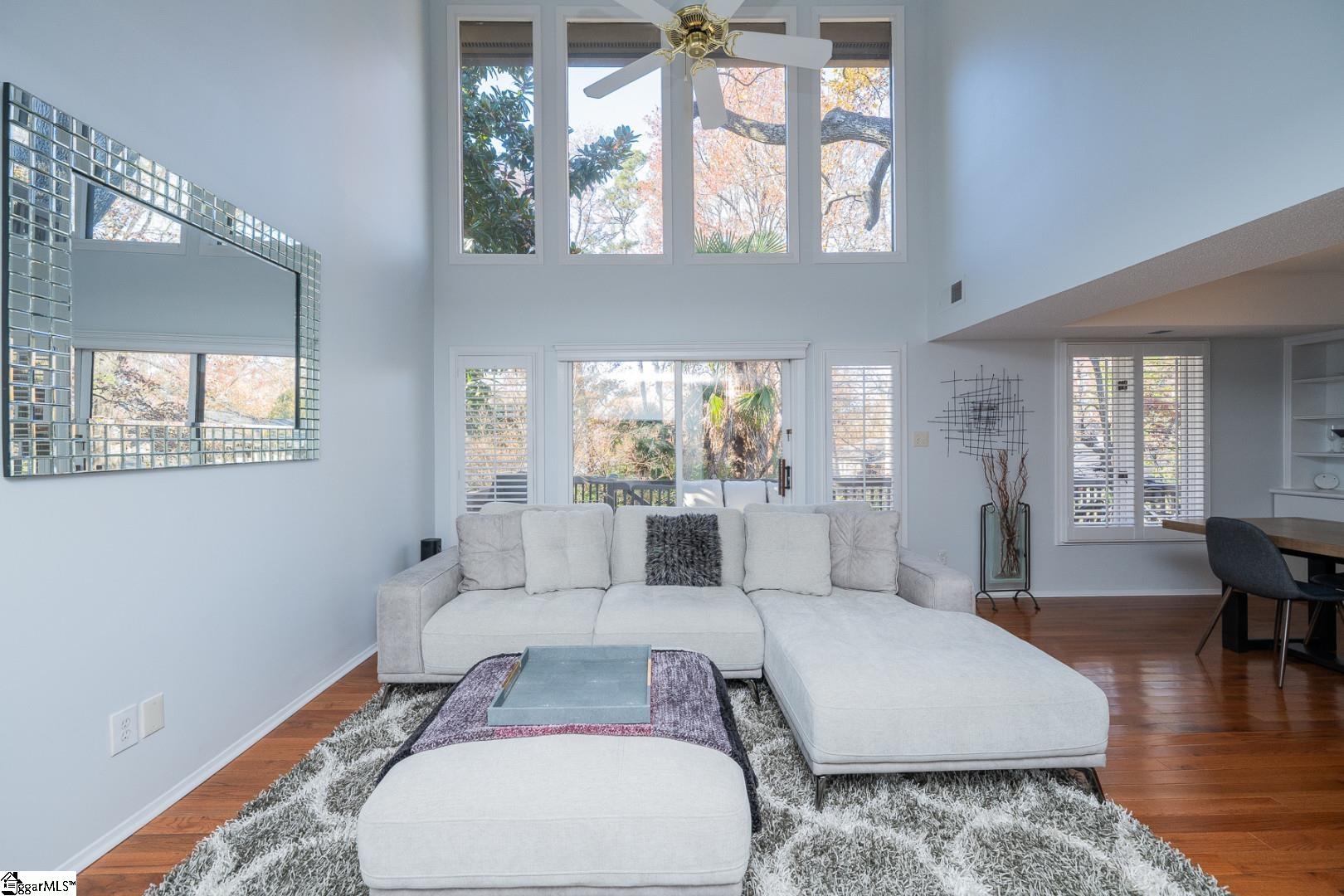 This 3/3, upgraded townhouse, has a lot to offer. Stunning, floor to cathedral ceiling windows, bringing an airy, and light, atmosphere, which overlooks a beautiful, private park-like setting. A very large deck and the ability to enjoying bar-bqueing, or just relaxing in your own staycation environment. New hardwood flooring on the first floor, and luxury, neutral, vinyl, in the bedrooms on the upper floor. The kitchen offers newly installed granite counters, with a new oven and microwave. There is an oversized laundry room for your convenience . All the bedrooms are of generous size with ample closets and storage. Below the townhouse is your aprox,, 25x25, private, lockable, storage space. The home recently, had a total paint makeover. The location is hard to beat, close to major highways, the mall, with Publix, walking distance, down the street. The HOA, takes care of the exterior and roof, as well as maintaining the large beautiful pool and its amenities. Trash and lawn maintenance are Two animals are allowed. Greenville's largest Medical complex minutes away This townhouse offers a fantastic opportunity to own a piece of Greenville's vibrant real estate market, within a very, friendly community, of old and young alike. ez show, tenants work days, property will be vacant Jan 7 2026