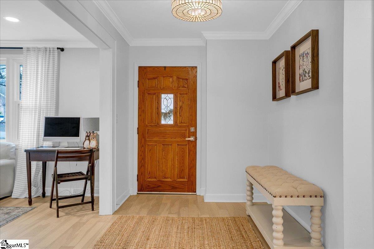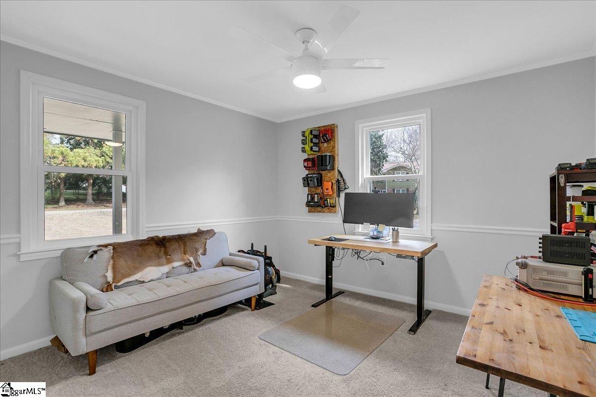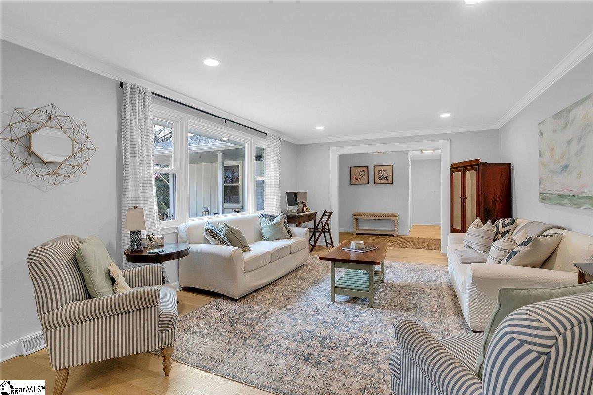Welcome to 108 Kingsley Drive perfectly positioned on a level landscaped lot that backs to a serene wooded area where you will experience exceptional privacy and an inviting outdoor retreat. Enjoy relaxing or entertaining on the spacious patio, watching little imaginations soar in the treehouse, or take advantage of the 10x12 shed for all your extra storage needs. A long concrete driveway offers ample parking for family and guests and leads to a generous 14x24 carport. Inside, this thoughtfully updated one-level home features five bedrooms and three full baths, offering flexible space for growing families, guests, or even a home office setup. Beautiful wood flooring flows throughout most of the living areas, complemented by smooth ceilings and abundant natural light streaming in through new vinyl thermal windows. Secondary bedrooms feature neutral carpeting, while all bathrooms are finished with tile flooring and stylishly updated vanities and lighting. The traditional layout offers both elegance and functionality, with a formal living room and adjacent dining room perfect for gatherings and special occasions. The heart of the home opens up into a seamless kitchen, breakfast area, and den—ideal for everyday living and entertaining alike. The kitchen is truly a chef’s delight, boasting an abundance of marble counter space, stainless steel appliances, ample white cabinetry, and a pantry for added storage. The spacious primary suite is a private retreat, complete with a walk-in closet and a luxurious bath featuring a dual sink granite vanity, an oversized tile shower, and a standalone soaking tub designed for relaxation. Additional highlights include a well-appointed laundry room with a convenient drop zone and extra storage. Major system updates provide peace of mind, including a newer Trane HVAC system with updated ductwork, architectural shingle roof, gas water heater, encapsulated crawlspace with dehumidifier and sump pump, and a new 200 AMP electrical panel just to name a few. A full list available upon request. This exceptional Knollwood Heights home combines timeless design, modern updates, and a prime location—ready to welcome its next owners home. Community pool memberships are available for those who want to take advantage of it— it’s completely OPTIONAL. Don’t delay homes like this don’t last long! A true treasure!