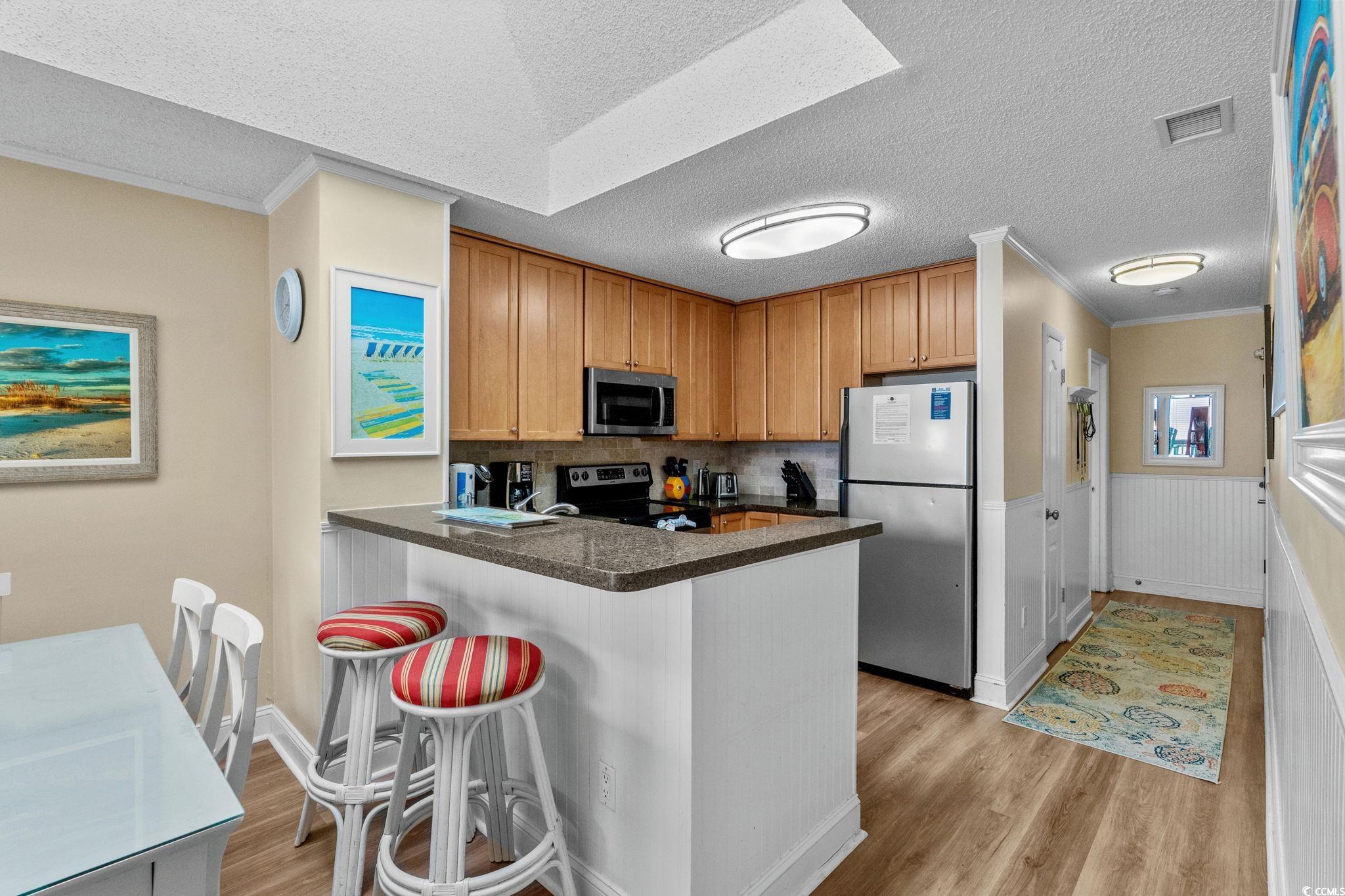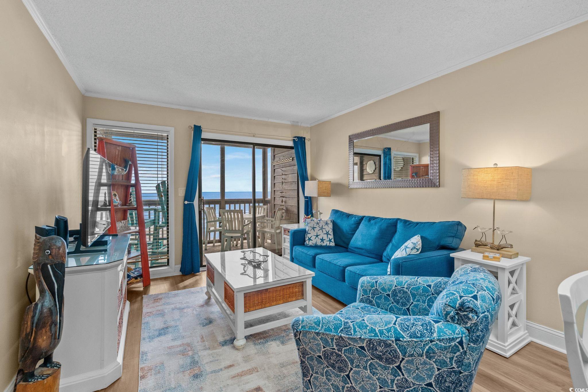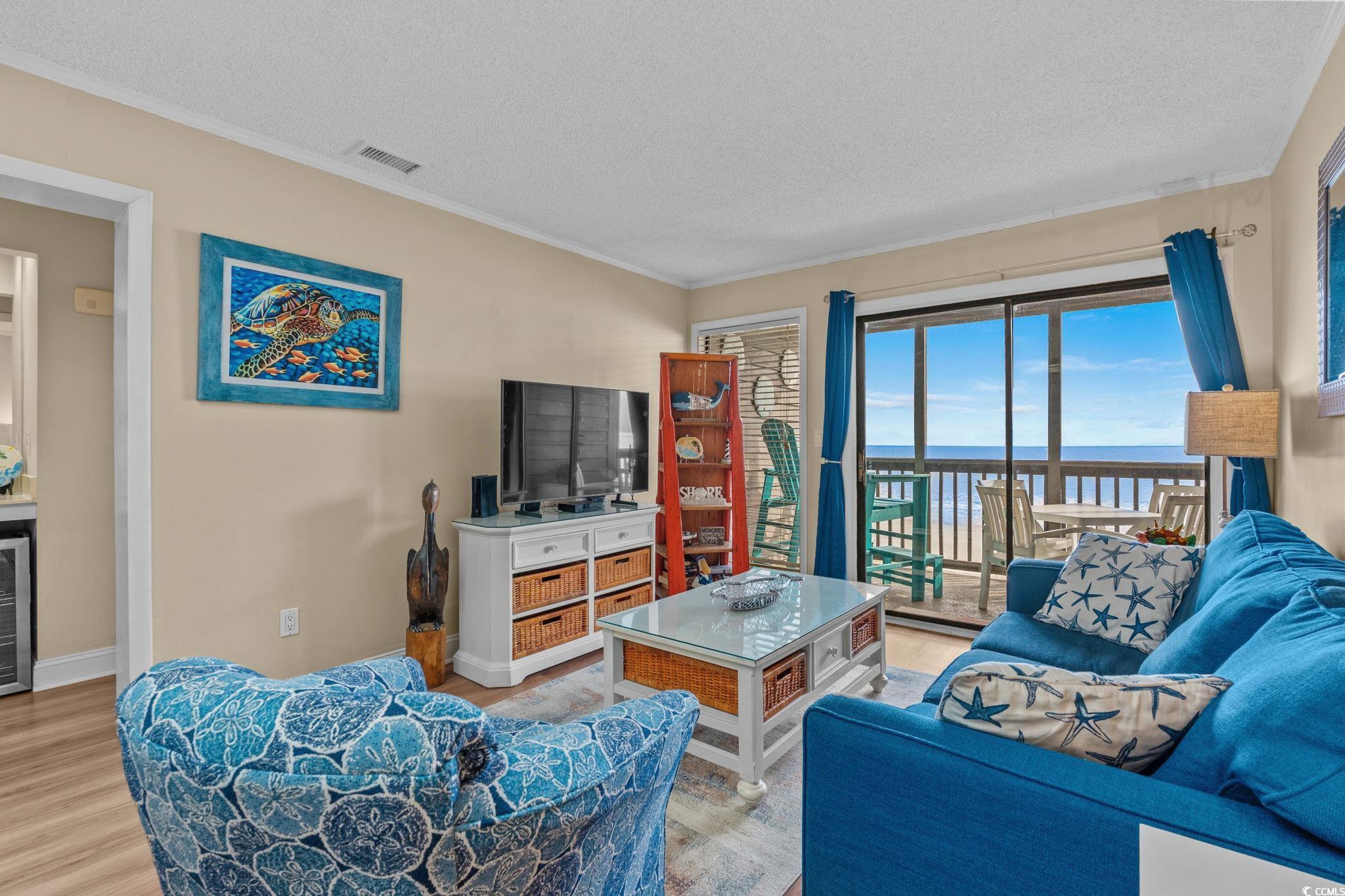 A Must See! Third floor 3 bedroom 2 ½ bath oceanfront, fully furnished condo in the Tilghman Beach & Racquet Club. Located in the heart of the Ocean Drive section of North Myrtle Beach, this condo is in an elevator building for convenient access to this top floor unit. Great income generating condo with many special features and recent renovations that include new luxury vinyl plank flooring throughout the living, kitchen and bedrooms (tile in the bathrooms); new hurricane resistant sliding glass door in the primary oceanfront bedroom; new heating and cooling ductwork throughout condo; new washer & dryer; new dishwasher; and new wet bar refrigerator. In the kitchen, updates include the beautiful granite countertops with undermount sink and tile backsplash, tall wood kitchen cabinets, and stainless-steel appliances. Lighting and plumbing fixtures have been updated throughout. Condo has beachy yet tastefully updated furniture in all rooms and includes TV’s in all bedrooms and a new Samsung Smart TV in the family room. Primary bathroom has an updated tile shower with a frameless glass door. After a fun day on the beach, enjoy a challenging game of tennis…or just sit and relax on one of two oceanfront balconies: one 7’2x11’3 screened balcony off the family room and a 3’8” x 11’10” balcony off the primary bedroom! Your family and guests will truly appreciate the awesome, unobstructed views and sounds of the blue Atlantic Ocean. Amenities include 2 hard tennis courts, 2 large swimming pools (one oceanfront and one on 2nd row), 2 hot tubs, picnic and grilling areas. Owners are allowed pets (up to 2), golf carts and motorcycles. Tilghman Beach & Racquet is close walking distance to several shops, restaurants, dance clubs and all that Main Street has to offer. If golf is your game, there are many nationally recognized courses close by or take some time to fish or cruise in the famous Intracoastal Waterway. With its strong rental history, this stunning condo would be a nice financial investment…or keep it for a primary or secondary home. This will be a great place for family and friend gatherings, both big and small! Tilghman Beach & Racquet Club has been a time-tested favorite of vacationers and owners for decades. Come see this beautiful oceanfront condo with amazing ocean views that is centrally located and close to everything North Myrtle Beach has to offer…and just steps away from the sandy beaches of the Atlantic Ocean!