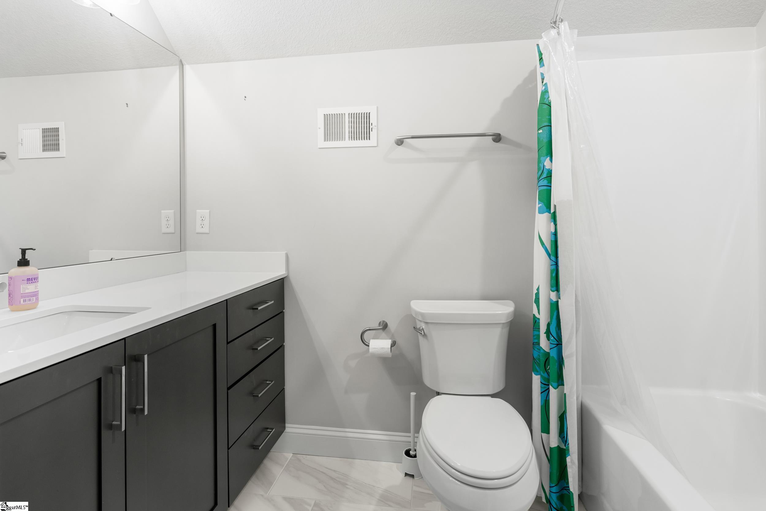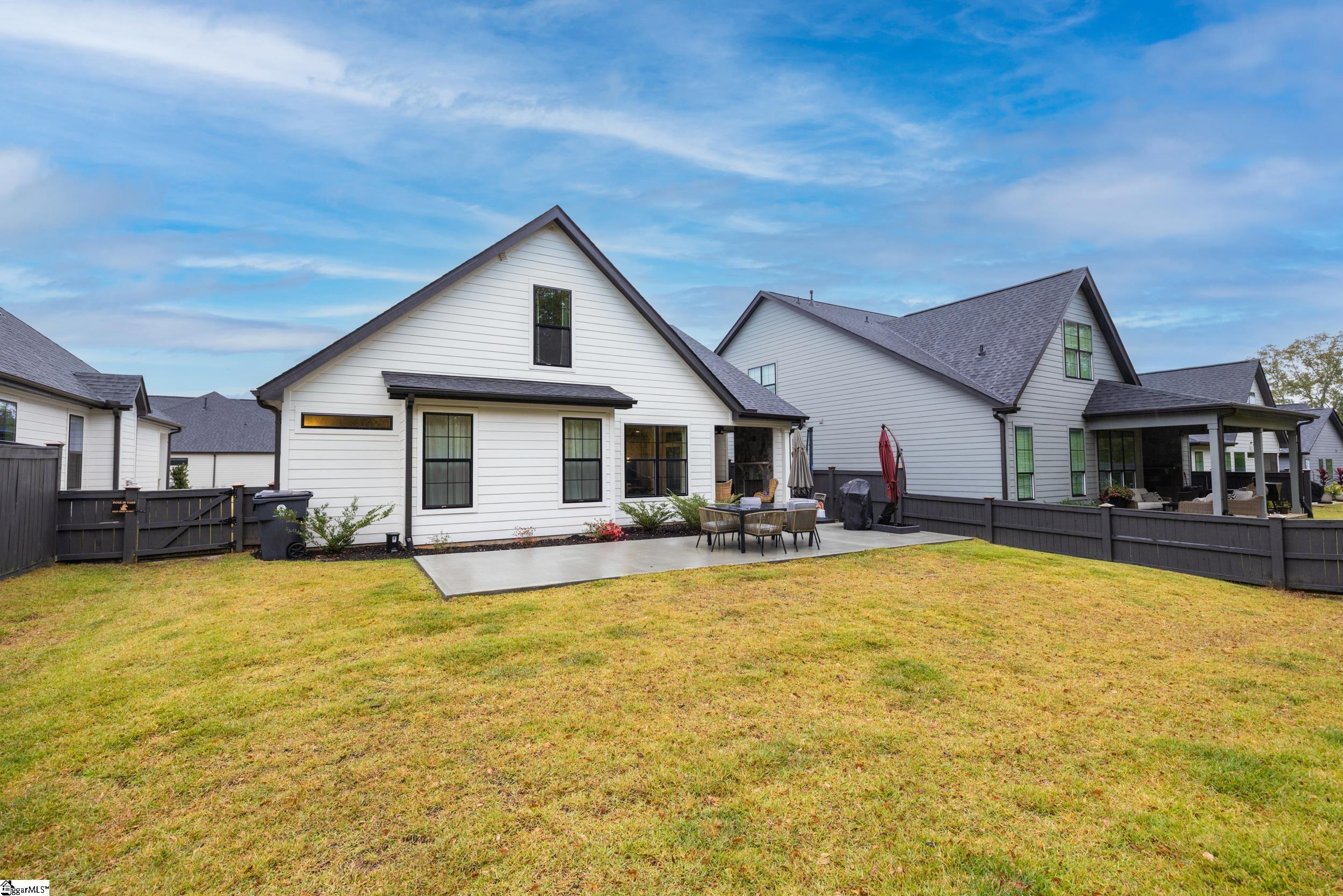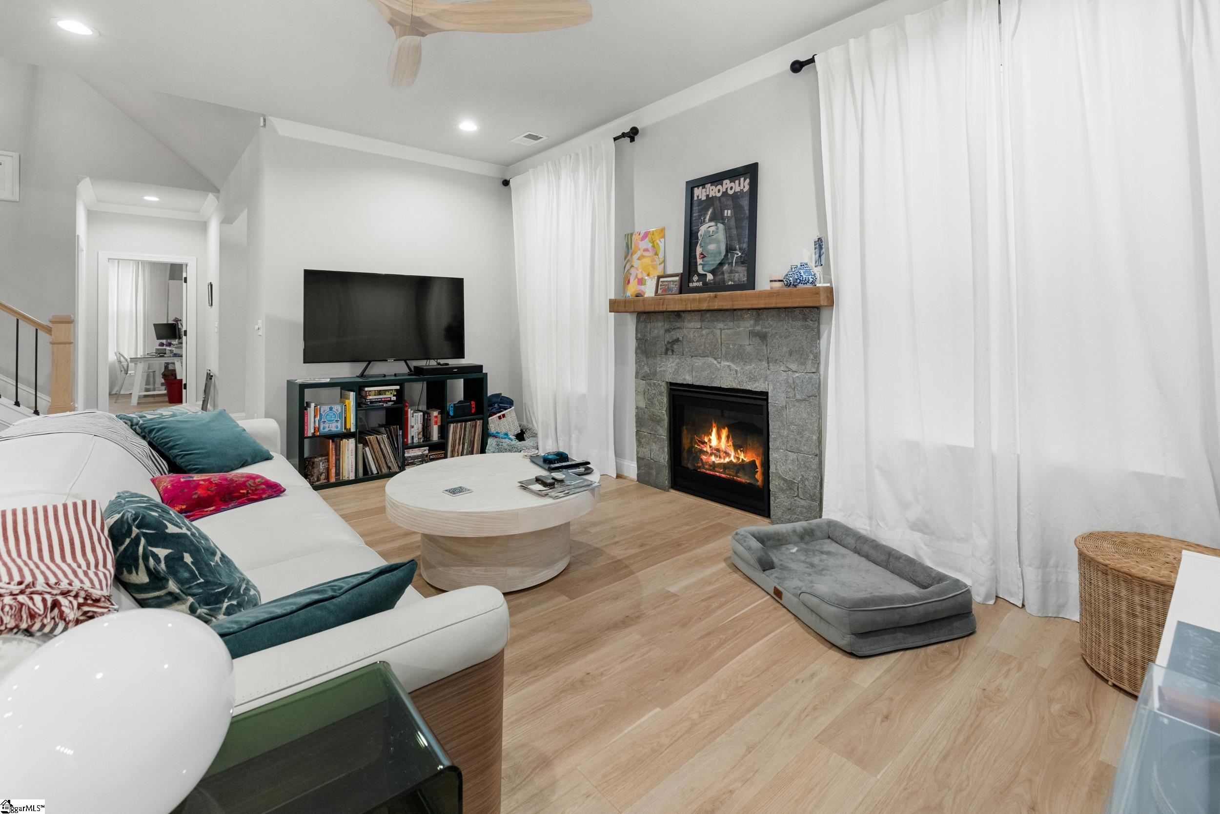Modern style meets everyday comfort in this beautifully new and improved 3-bedroom, 2.5-bath home in one of Simpsonville’s most convenient locations. From the moment you step inside, you’ll notice the open flow, vaulted ceilings, and natural light that give the home a bright, inviting feel. The owners replaced every bit of carpet with matching wide-plank flooring, creating a seamless, upscale look throughout. The living room centers around a striking stone fireplace, while the kitchen impresses with quartz countertops, high-end appliances, and a spacious walk-in pantry. The laundry room is oversized and close to both the primary bedroom and the kitchen. The ease this home offers makes it wonderful place to call home. Enjoy effortless indoor-outdoor living—the dining area opens to a covered porch with a massive outdoor fireplace and a fenced backyard designed for entertaining. An oversized concrete pad is already in place for your new hot tub or future outdoor kitchen setup. The primary suite offers a relaxing escape with a spa-inspired bath, dual vanities, and a large walk-in closet. Upstairs, two additional bedrooms and a flexible bonus area provide space for guests, a home office, playroom, or music studio—whatever suits your lifestyle. Additional highlights include energy-efficient windows and HVAC, a two-car garage with built-in storage, and a peaceful neighborhood with walking trails and parks nearby. All just minutes from downtown Simpsonville, I-385, and a short drive to downtown Greenville.