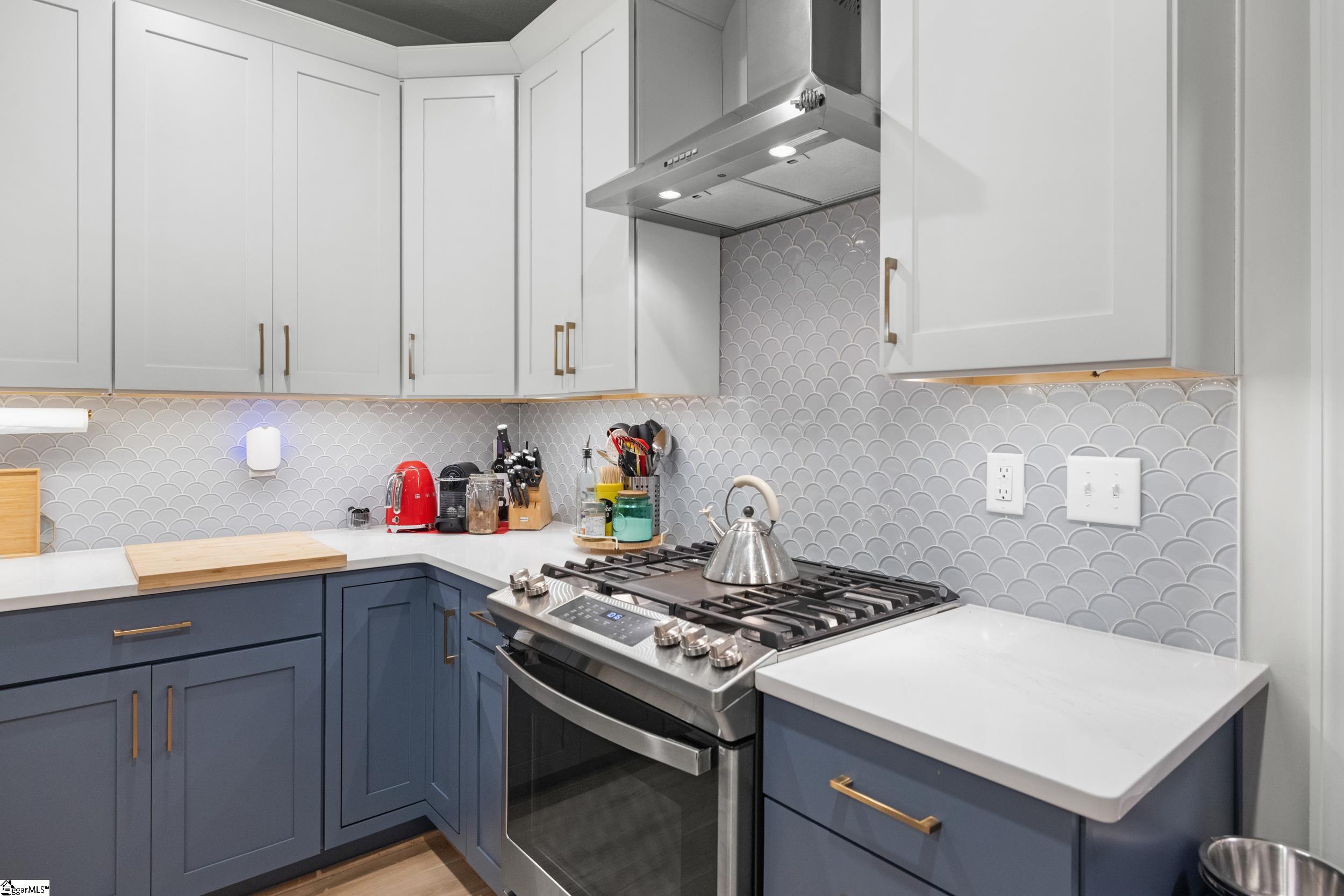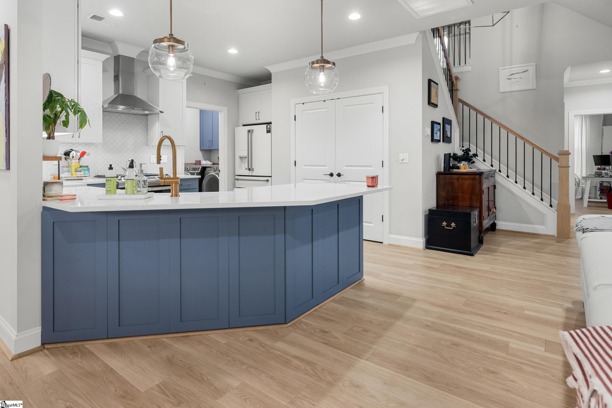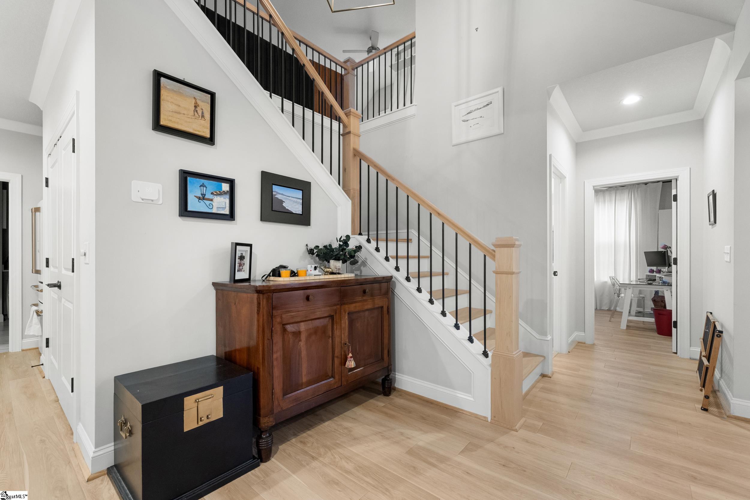 Modern style meets everyday comfort in this beautifully new and improved 3-bedroom, 2.5-bath home in one of Simpsonville’s most convenient locations. From the moment you step inside, you’ll notice the open flow, vaulted ceilings, and natural light that give the home a bright, inviting feel. The owners replaced every bit of carpet with matching wide-plank flooring, creating a seamless, upscale look throughout. The living room centers around a striking stone fireplace, while the kitchen impresses with quartz countertops, high-end appliances, and a spacious walk-in pantry. The laundry room is oversized and close to both the primary bedroom and the kitchen. The ease this home offers makes it wonderful place to call home. Enjoy effortless indoor-outdoor living—the dining area opens to a covered porch with a massive outdoor fireplace and a fenced backyard designed for entertaining. An oversized concrete pad is already in place for your new hot tub or future outdoor kitchen setup. The primary suite offers a relaxing escape with a spa-inspired bath, dual vanities, and a large walk-in closet. Upstairs, two additional bedrooms and a flexible bonus area provide space for guests, a home office, playroom, or music studio—whatever suits your lifestyle. Additional highlights include energy-efficient windows and HVAC, a two-car garage with built-in storage, and a peaceful neighborhood with walking trails and parks nearby. All just minutes from downtown Simpsonville, I-385, and a short drive to downtown Greenville.
