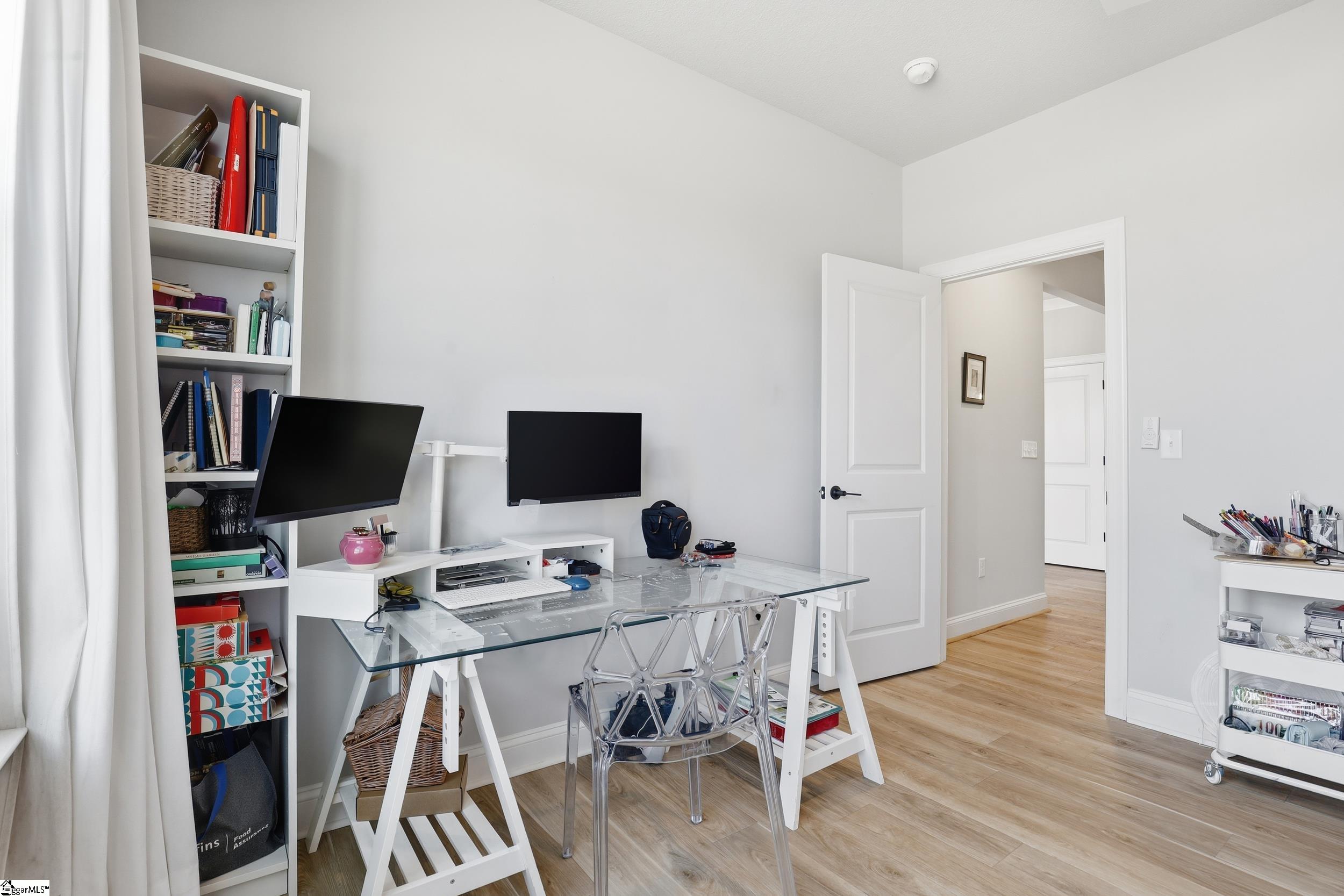 New Pictures, and new virtual tour!! Modern style meets everyday comfort in this beautifully new and improved 3-bedroom, 2.5-bath home in one of Simpsonville’s most convenient locations. From the moment you step inside, you’ll notice the open flow, vaulted ceilings, and natural light that give the home a bright, inviting feel. The owners replaced every bit of carpet with matching wide-plank flooring, creating a seamless, upscale look throughout. The living room centers around a striking stone fireplace, while the kitchen impresses with quartz countertops, high-end appliances, and a spacious walk-in pantry. The laundry room is oversized and close to both the primary bedroom and the kitchen. The ease this home offers makes it wonderful place to call home. Enjoy effortless indoor-outdoor living—the dining area opens to a covered porch with a massive outdoor fireplace and a fenced backyard designed for entertaining. An oversized concrete pad is already in place for your new hot tub or future outdoor kitchen setup. The primary suite offers a relaxing escape with a spa-inspired bath, dual vanities, and a large walk-in closet. Upstairs, two additional bedrooms and a flexible bonus area provide space for guests, a home office, playroom, or music studio—whatever suits your lifestyle. Additional highlights include energy-efficient windows and HVAC, a two-car garage with built-in storage, and a peaceful neighborhood with walking trails and parks nearby. All just minutes from downtown Simpsonville, I-385, and a short drive to downtown Greenville.