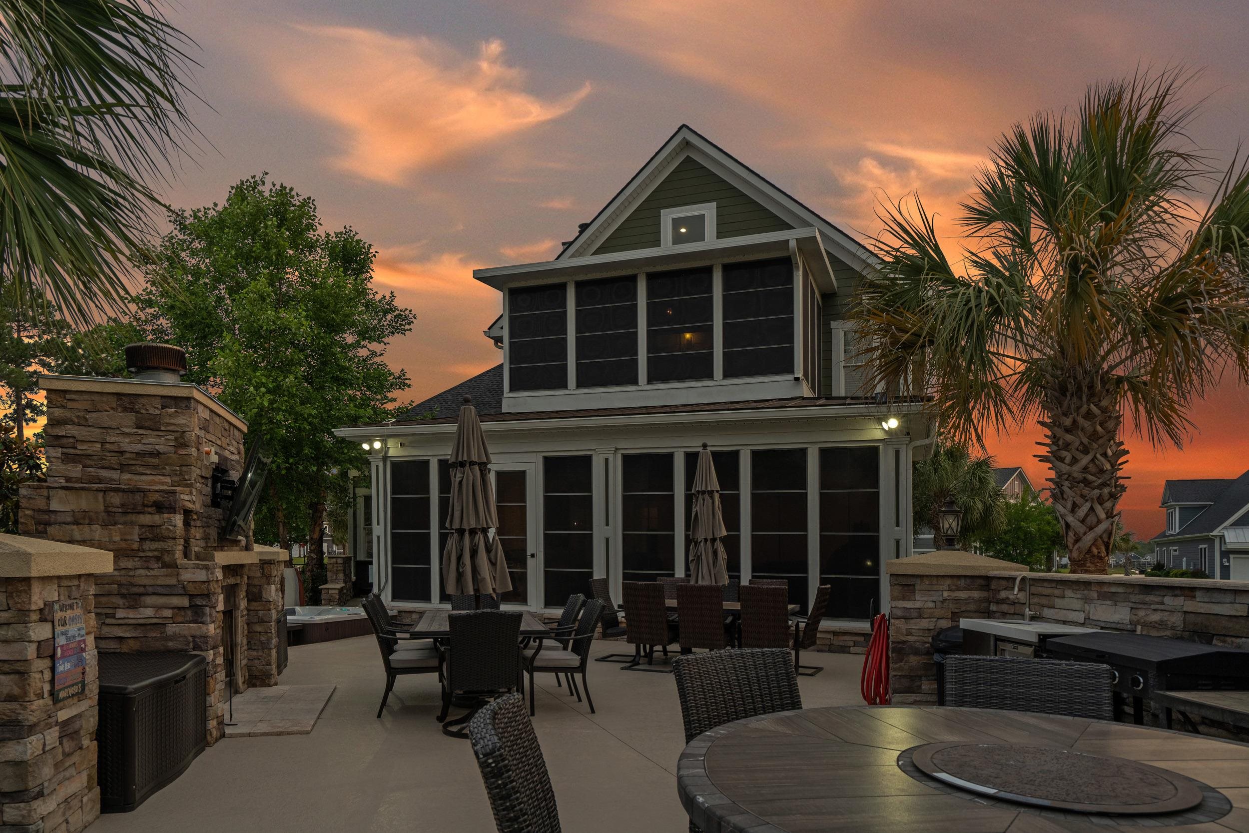 Welcome to a truly rare offering in the prestigious gated community of Waterbridge—where timeless craftsmanship, thoughtful upgrades, and an unforgettable lifestyle come together at 1080 Fiddlehead Way. Built as the personal residence of a respected custom home builder who has crafted numerous homes throughout the community, this exceptional 5-bedroom, 4-bath home with a private in-law suite and separate entrance showcases intentional design, quality fully insulated stick-frame construction, solid-core 8-foot doors, and exquisite ornate crown molding carried throughout—evidence of true pride in craftsmanship at every turn. The story unfolds with travertine stone floors across the main level, a beautifully remodeled 2023 kitchen featuring upgraded quartz countertops, and a warm wood-burning fireplace enhanced by custom built-ins and shiplap detail, while extensive recent improvements—including a new roof (2025), upgraded 17-SEER HVAC units, renovated front porch and pillars, refreshed in-law suite with new LVP flooring and paint, chandelier lift installation—provide both elegance and peace of mind. A third-floor game room creates the perfect retreat, and outdoors the experience becomes extraordinary with a heated and cooled saltwater pool, paver patio, built-in fireplace, basketball court, gazebo, and mosquito spray system designed for effortless year-round entertaining. All of this is set within Waterbridge, celebrated for its resort-style amenities, scenic surroundings, and the largest residential pool in South Carolina—offering not just a home, but a legacy property meant to be lived in, gathered in, and cherished every single day.